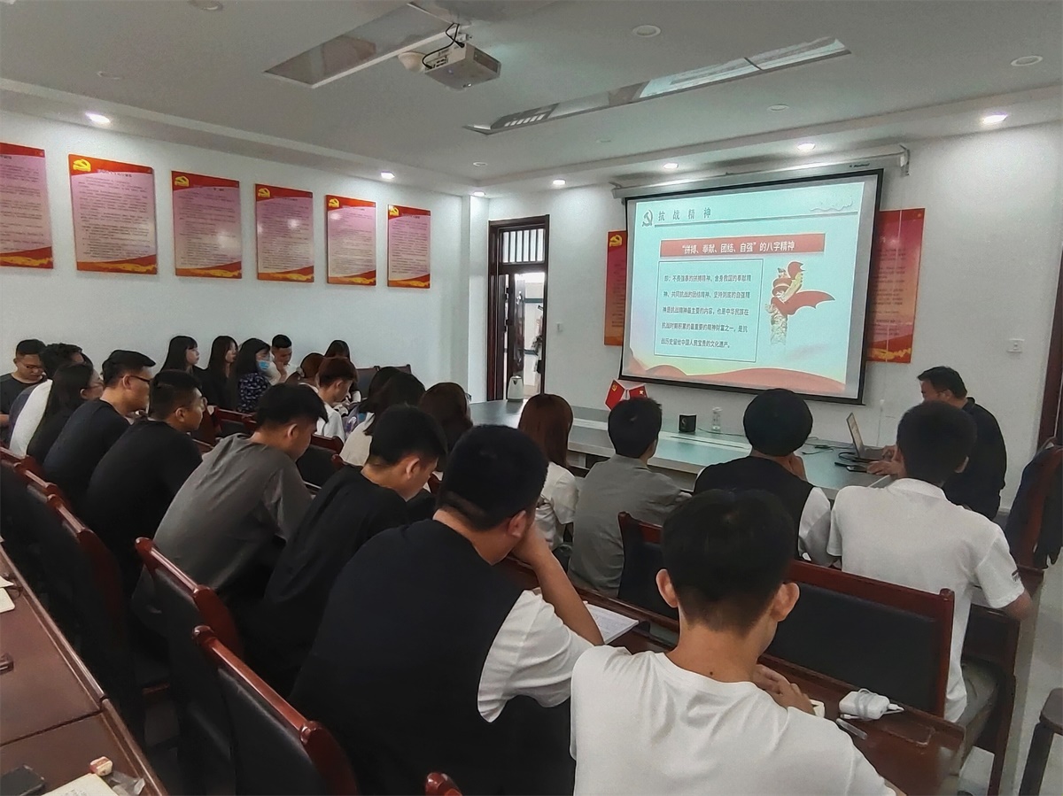 重温红色故事,弘扬革命精神。学习开始,全体学员佩戴党徽,在赵勇老师的带领下重温入党誓词。随后,赵勇老师给全体党员上了一场生动的主题党课,为学员们具体阐述了红色精神的含义以及核心。通过结合PPT,赵勇老师分别从意义、含义和精神概括等方面为学员们详细介绍了长征精神、抗战精神、大庆精神和抗洪精神等红色精神,并对每个红色精神时期的故事进行叙述,让全体党员对每个精神有了进一步的了解。赵勇老师通过“讲他和学他”的思想主线,透彻地诠释了焦裕禄同志的先进事迹和敬业精神,让全体党员从思想和行动上更真切地感悟焦裕禄“迎难而上,无私奉献”的炙热情怀和伟大志向。最后,赵勇老师勉励同学们要树立远大理想,加强品德修养,肩负起实现中华民族伟大复兴的历史重任和时代使命,做有理想追求、有知识本领、有健康身心的新时代青年大学生。活动在学员们热烈的掌声中圆满结束。