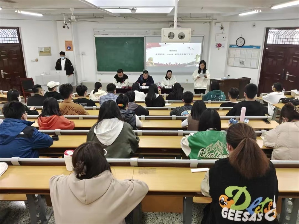 典礼进行第三项,2021级1班张翔宇作为学员代表进行发言,她提出作为入党积极分子要立鸿鹄志、做奋斗者,积极参与活动,不断提高自身能力,按照党员的标准严格要求自己。随后,孙元国对具体的培训课程安排进行解释说明,详细介绍了第二十八期入党积极分子整体课程计划、培训时间及后续活动,希望全体学员不忘初心、牢记使命,积极发挥作为入党积极分子的模范带头作用,贡献青年学生的智慧与力量。