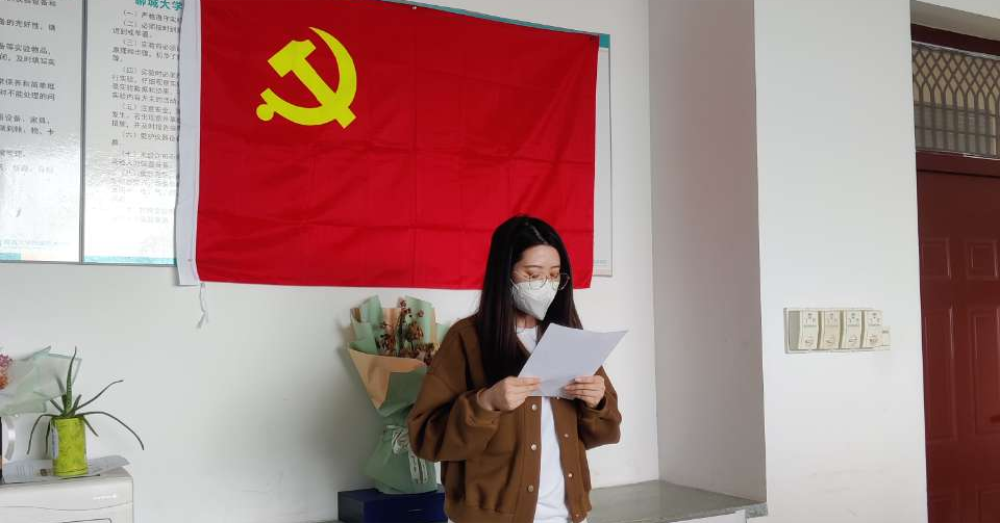 首先,党支部书记刘燕同志介绍了本次会议党员出席会议的情况及相关议程。随即会议开始,安然同志在党旗下宣读《入党申请书》,汇报自己对党的认识、入党动机、本人履历以及需要向党组织说明的问题。