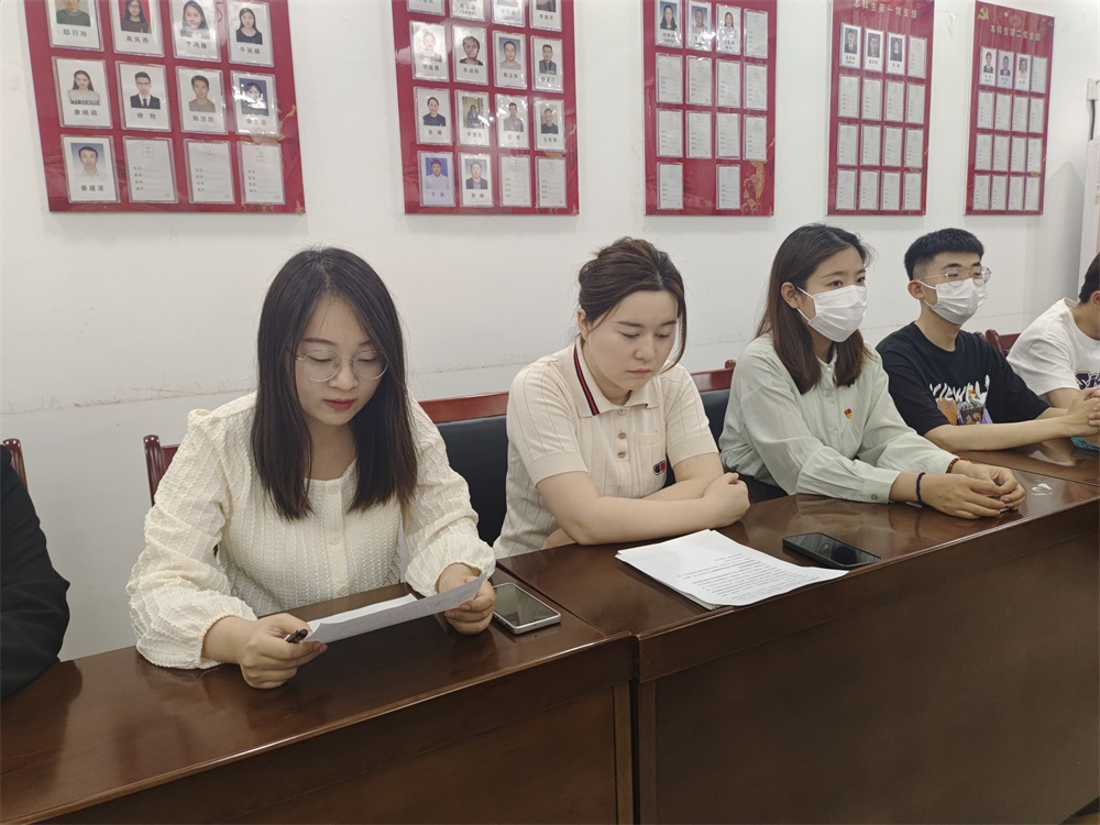 会议伊始,预备党员邹雪、夏彤、赵晓慧、冯新惠、张丹丹、王新蕊、刘文文依次宣读转正申请。汇报自己在预备期间的思想认识,表明自己对转正的态度以及今后的决心。他们阐述了这一年内自己在思想、学习、工作以及生活中的提升与不足,在思想上能够自觉拥护党的基本理论与方针政策,严格按照党员的标准要求自己;在学习上可以保持良好的学习态度;在工作上可以任劳任怨,以认真负责的态度对待每一项任务。