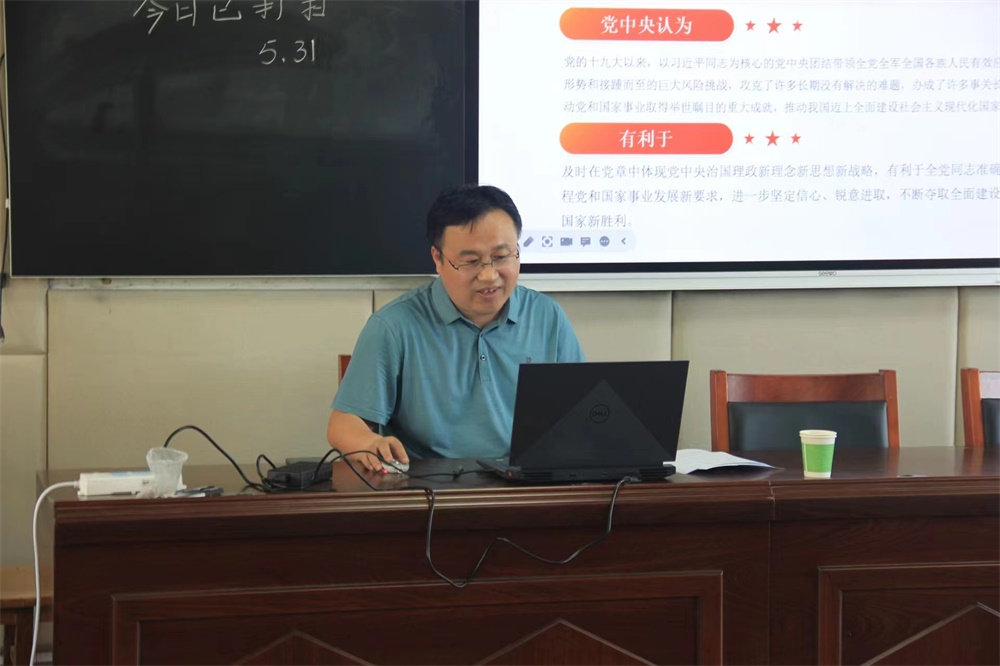 随后,赵勇以党的二十大修改党章的重大意义作为切入点,要求全体党员加强理论学习,发挥党员的先锋模范作用,加强自我管理,争做时代先锋。活动最后,赵勇勉励同学们要树立远大理想,做新时代的奋斗者,将青春的抱负融入到全面建设社会主义现代化国家、全面推进中华民族伟大复兴的伟大事业中去。活动在同学们热烈的掌声中圆满结束。