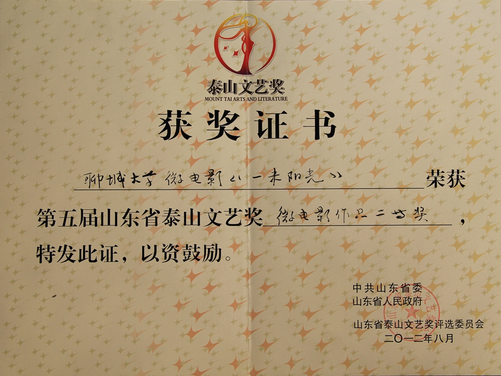 蜜桃直播 ,第五届山东省泰山文艺奖微电影作品二等奖