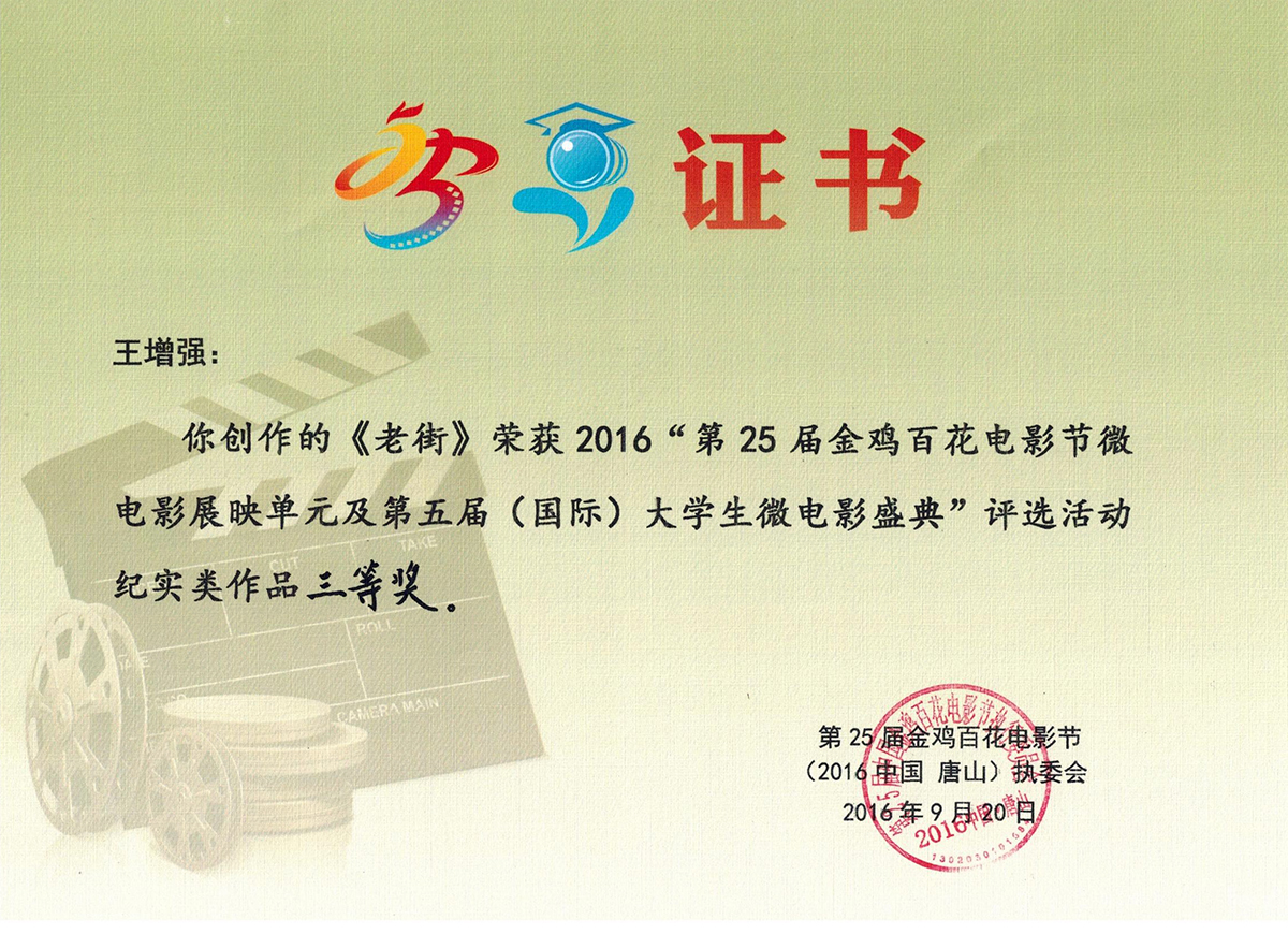 《奋进的生命》获得“高校影视作品交流展映”获得学校形象宣传类三类