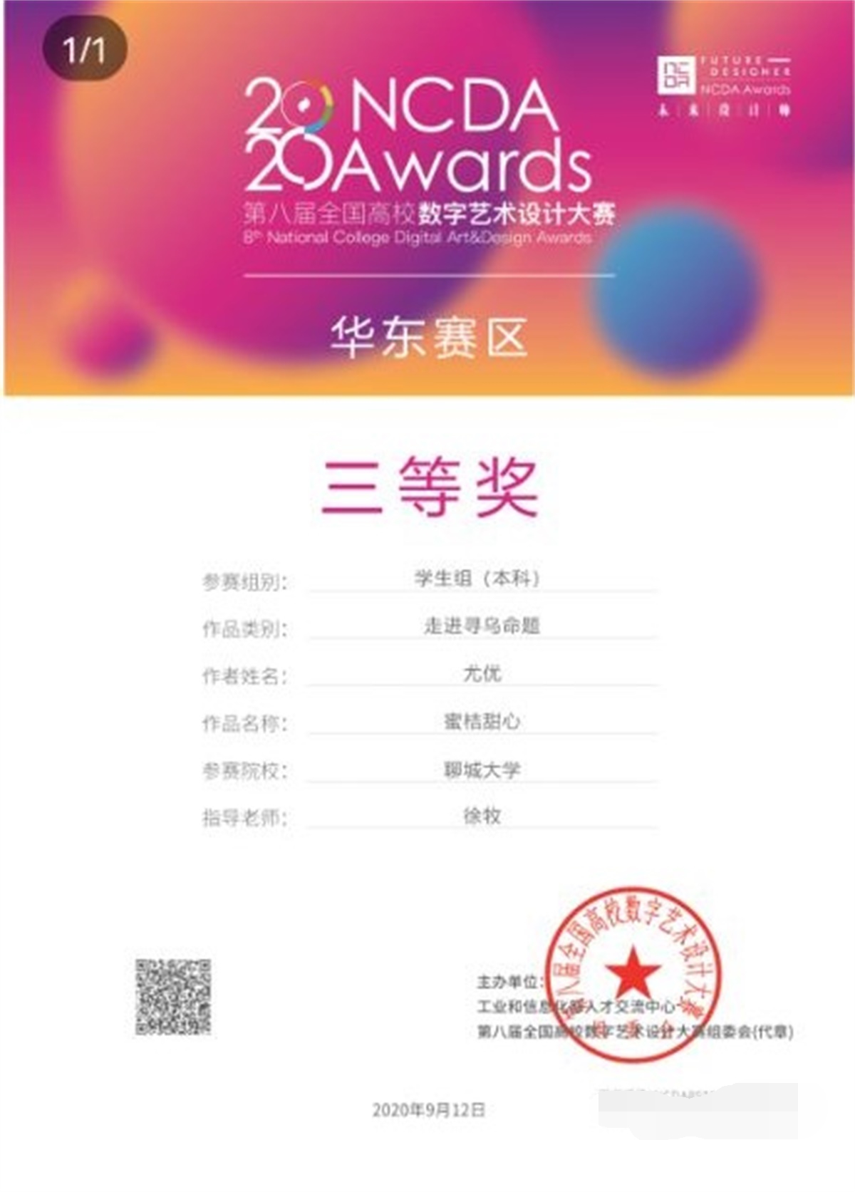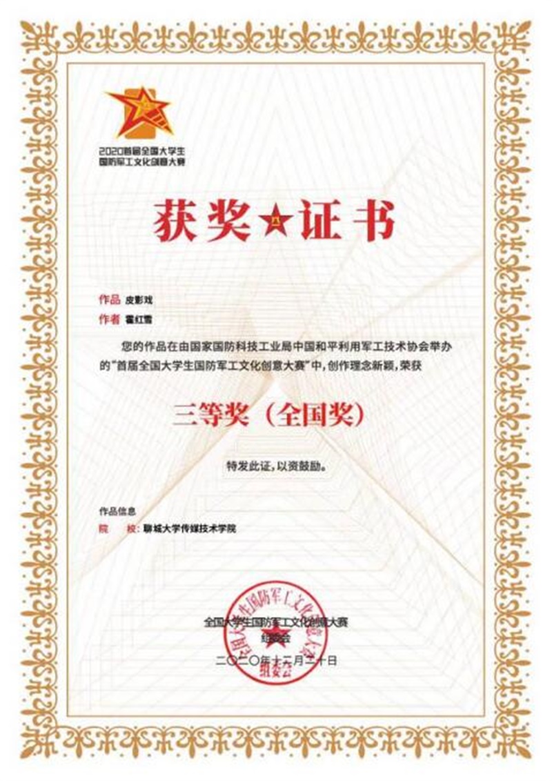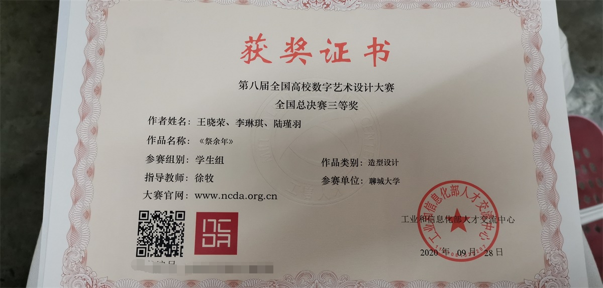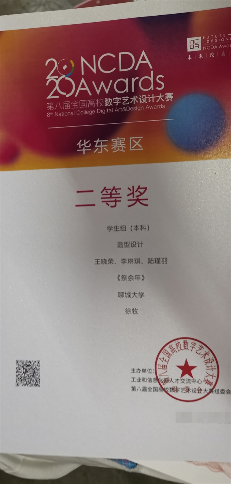 王晓荣 李琳琪 陆瑾羽的《祭余年》获得第八届全国高校数字艺术设计大赛全国总决赛三等奖