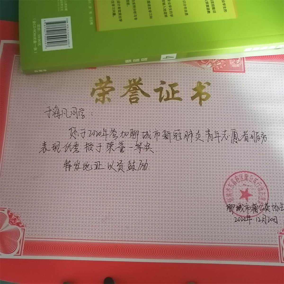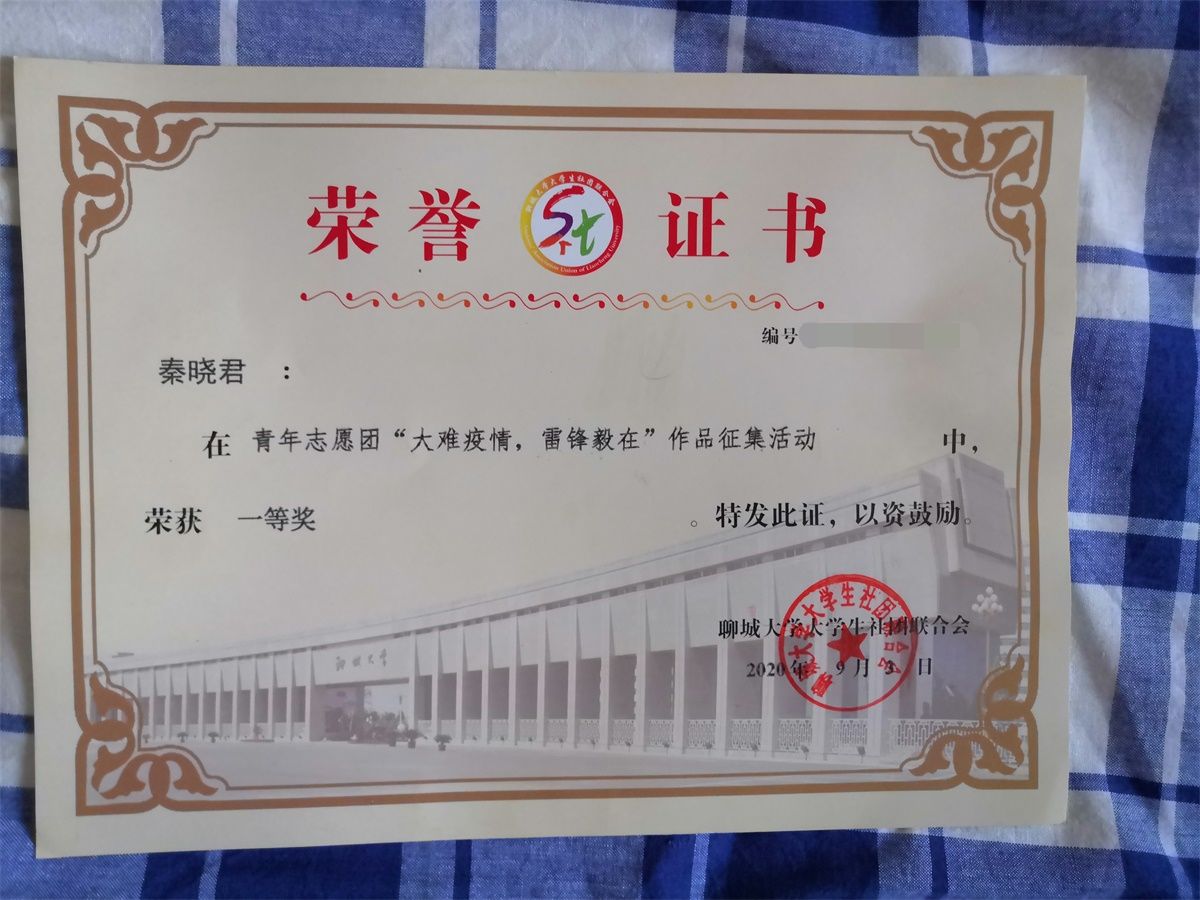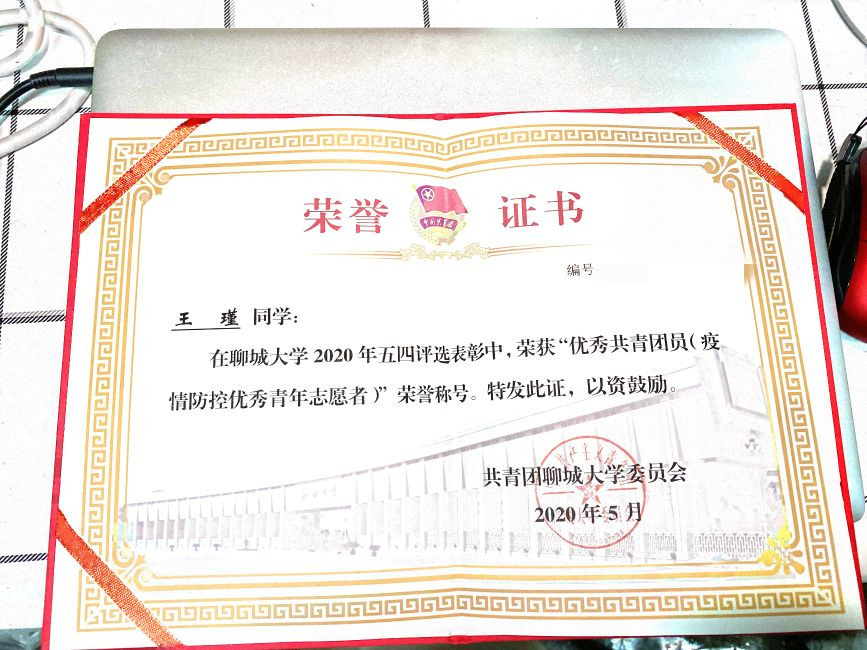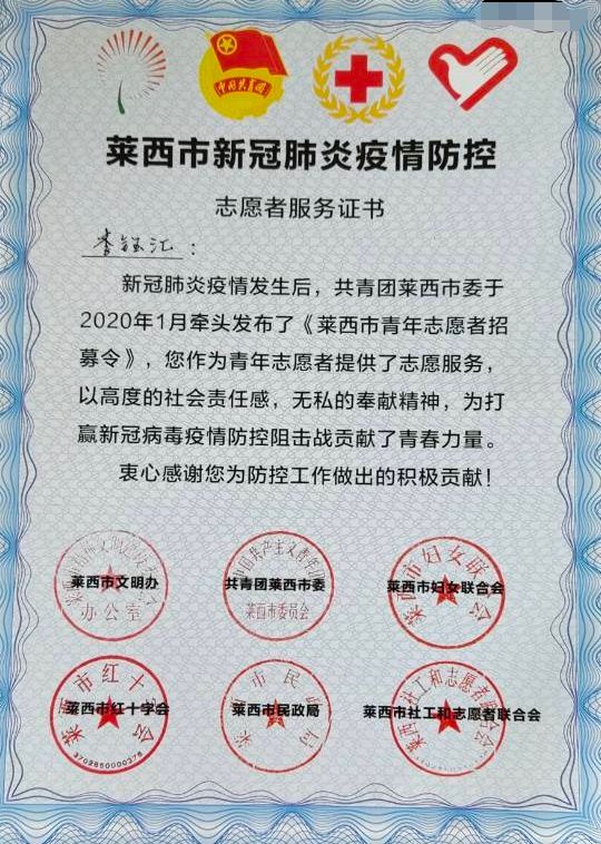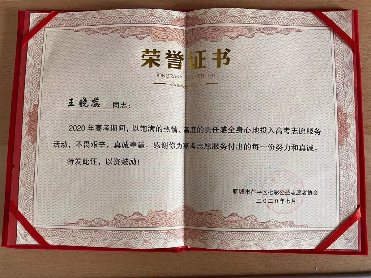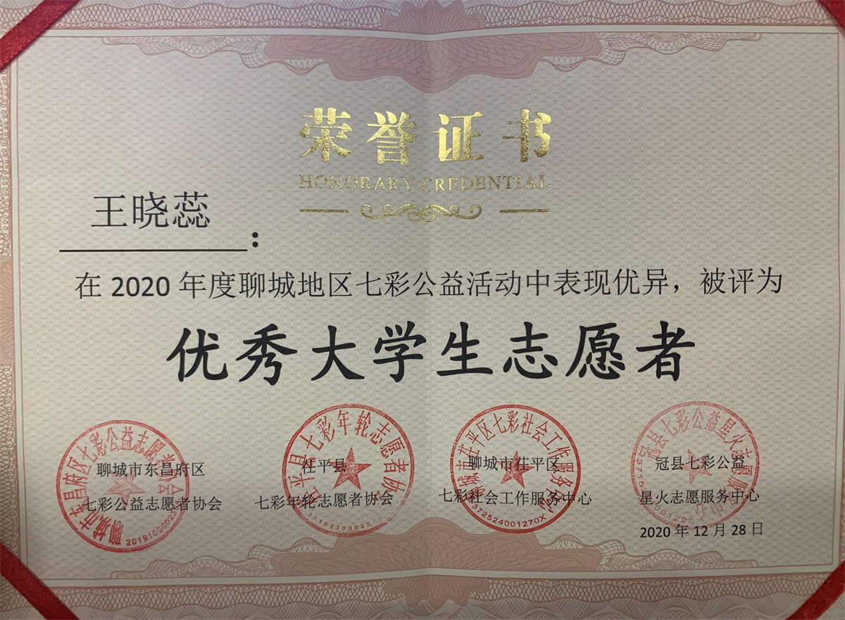 王晓蕊,2020年度聊城地区七彩公益活动“优秀大学生志愿者”