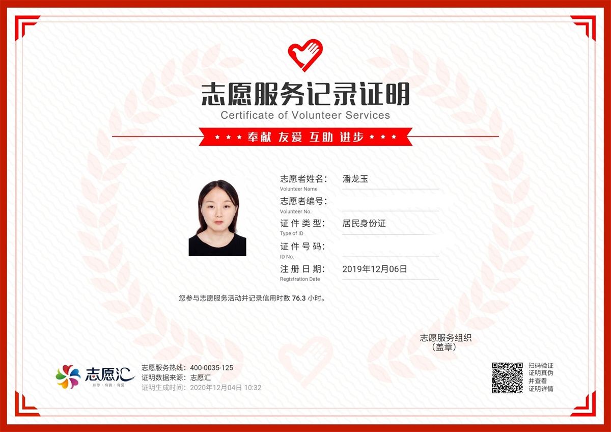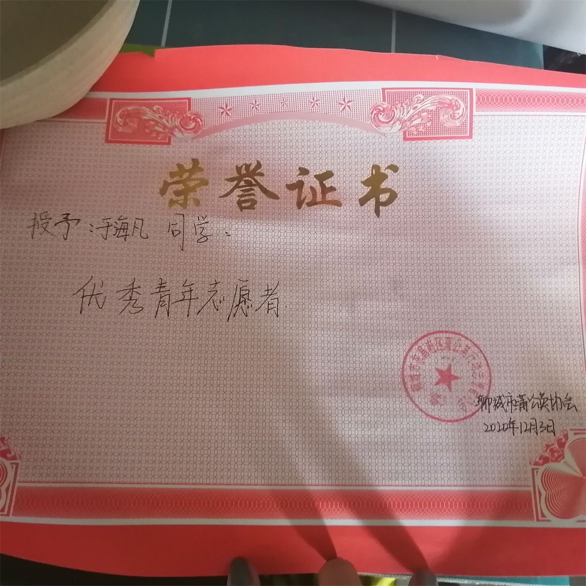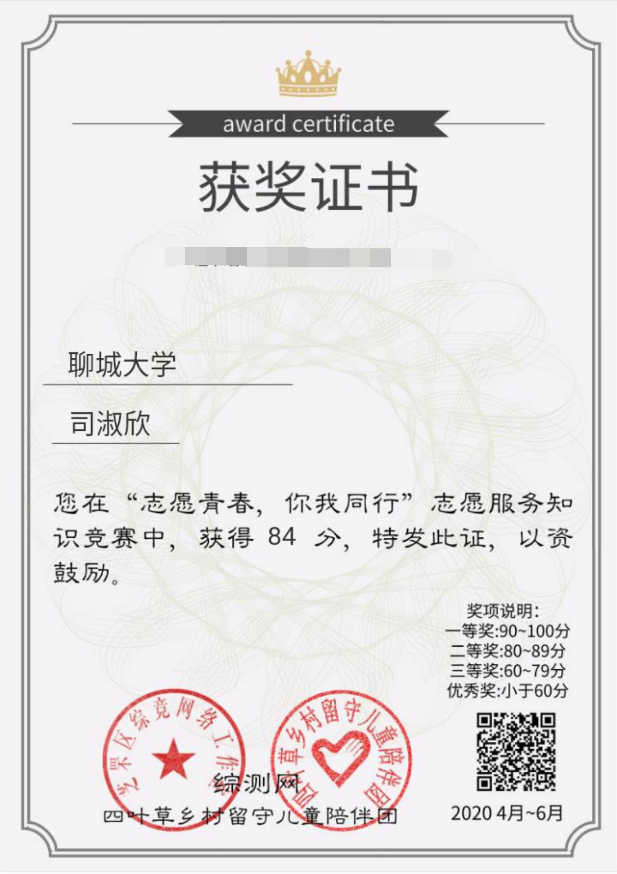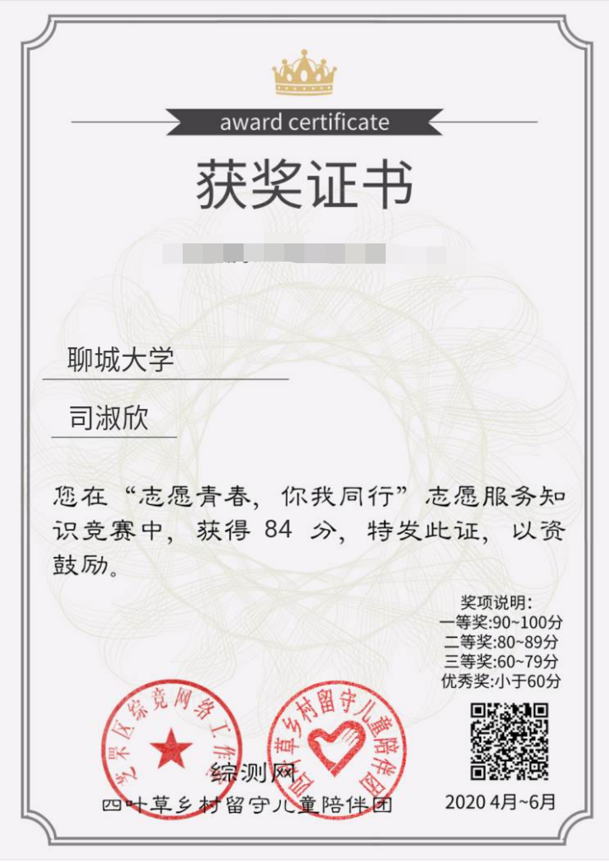 王晓蕊,2020年度聊城地区七彩公益活动“优秀大学生志愿者”