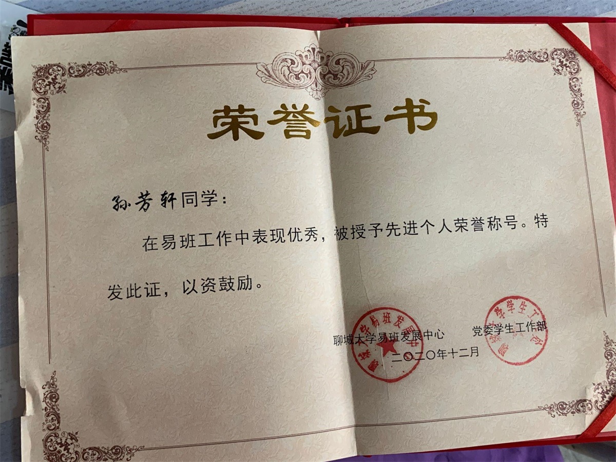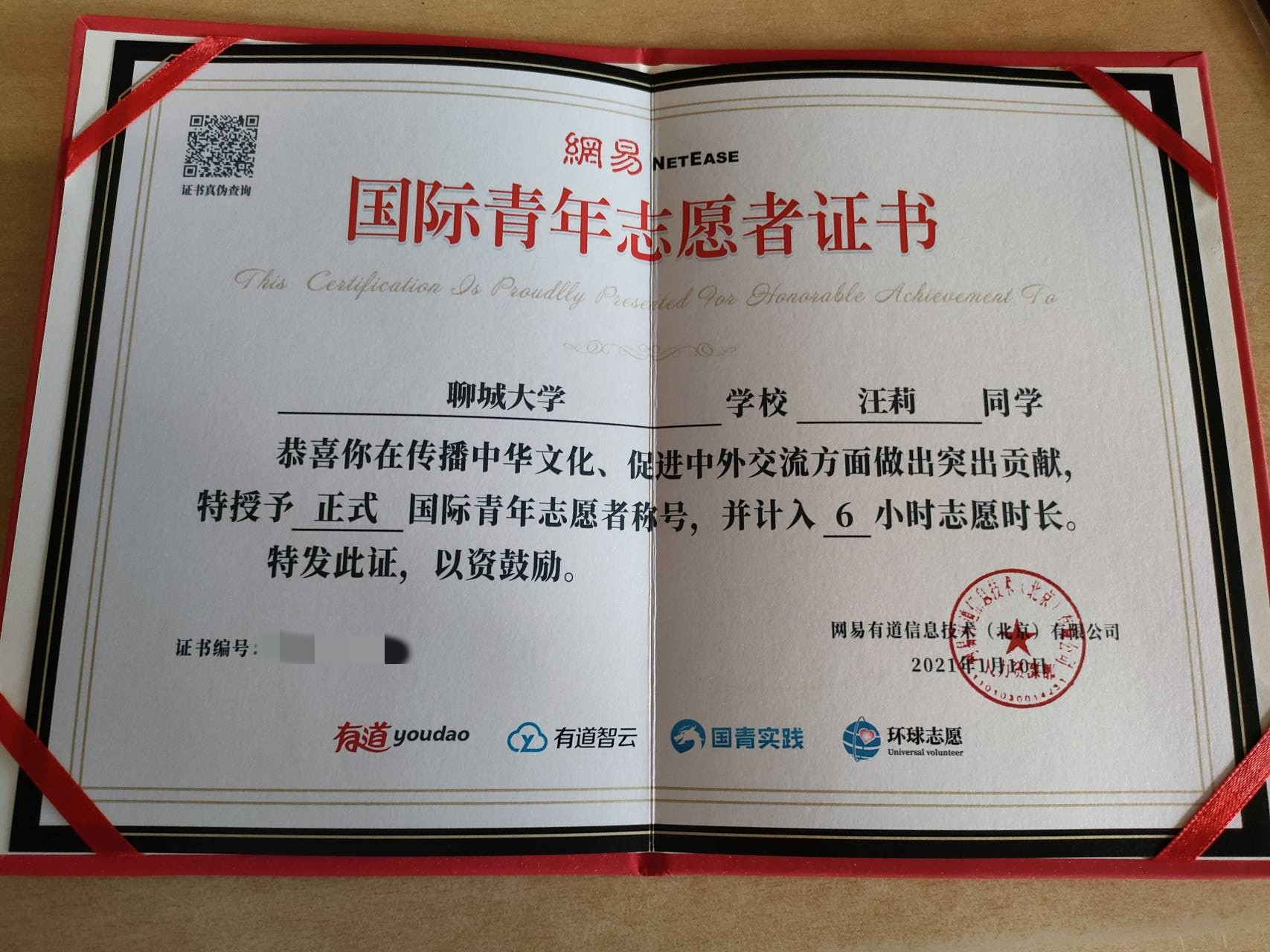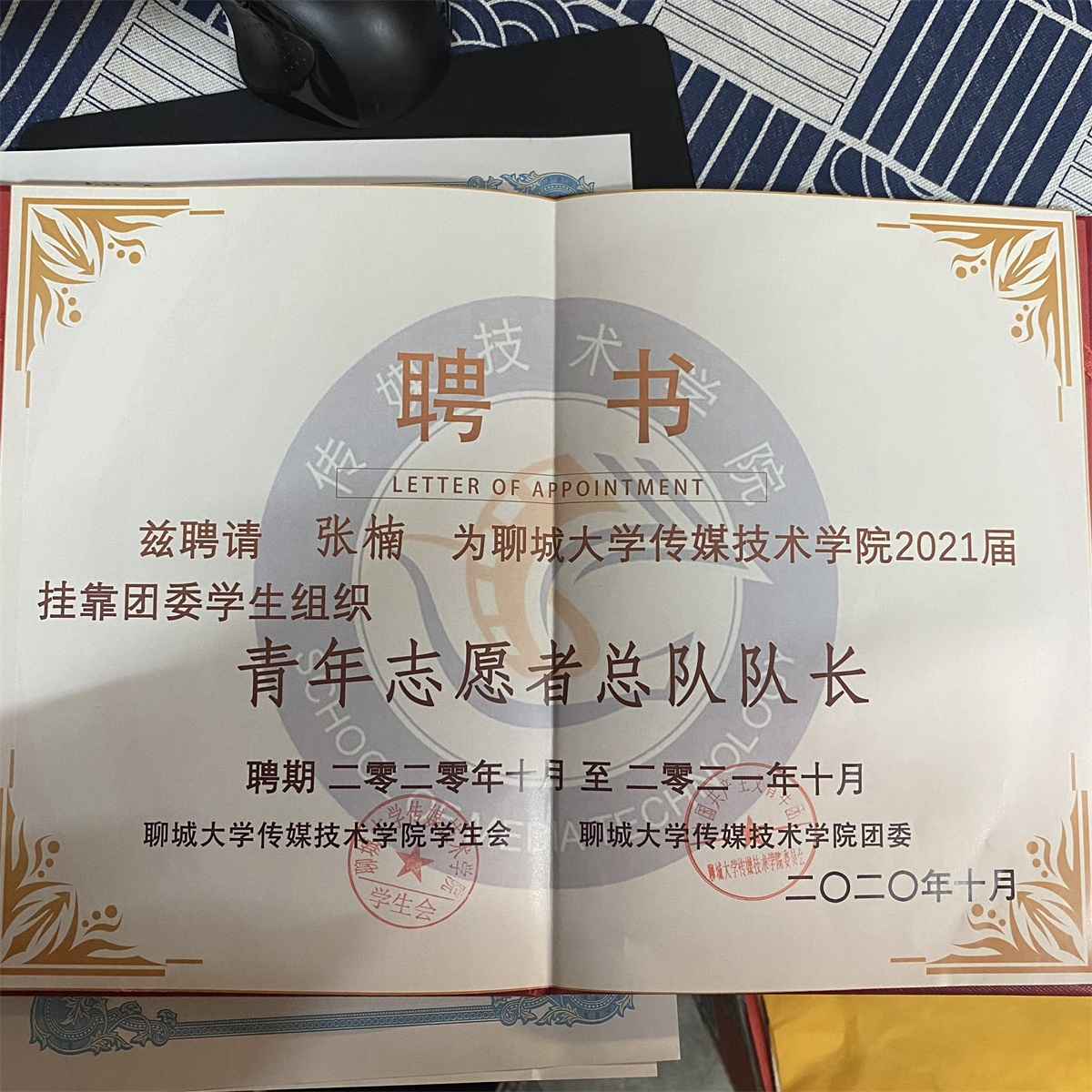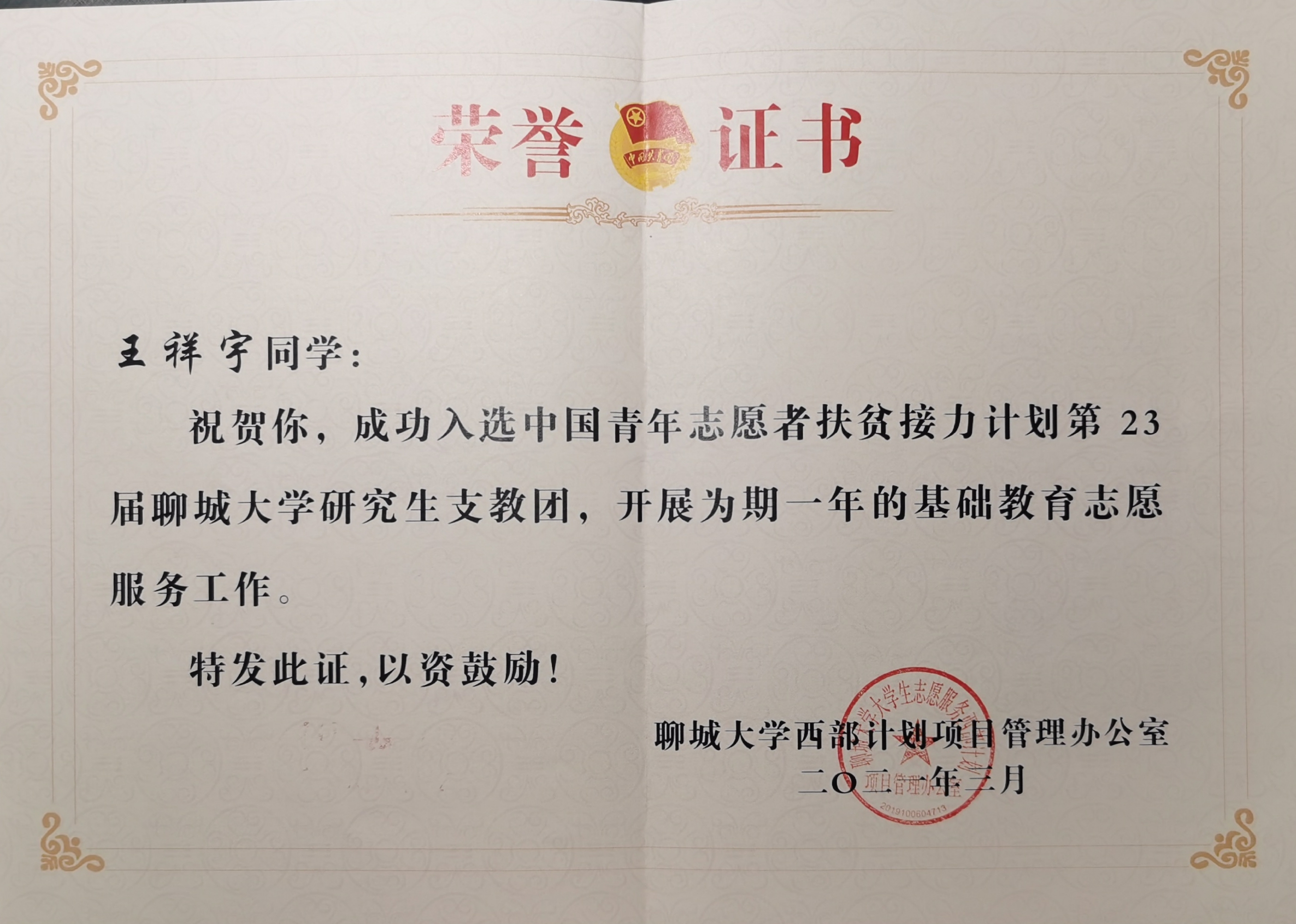 王晓蕊,2020年度聊城地区七彩公益活动“优秀大学生志愿者”