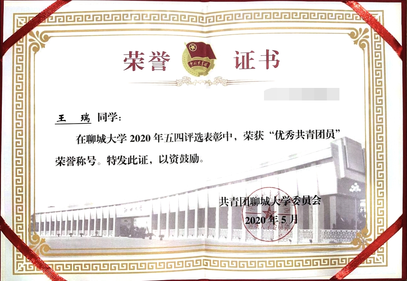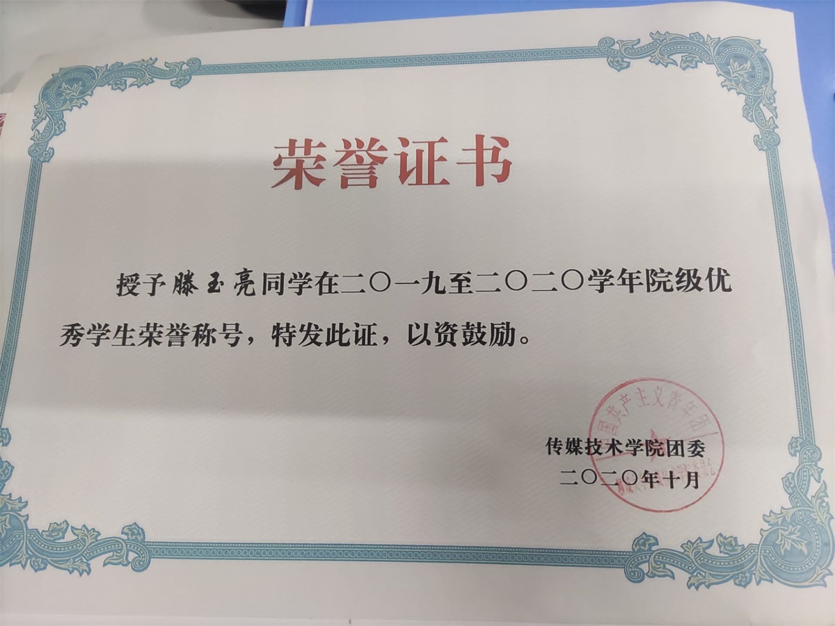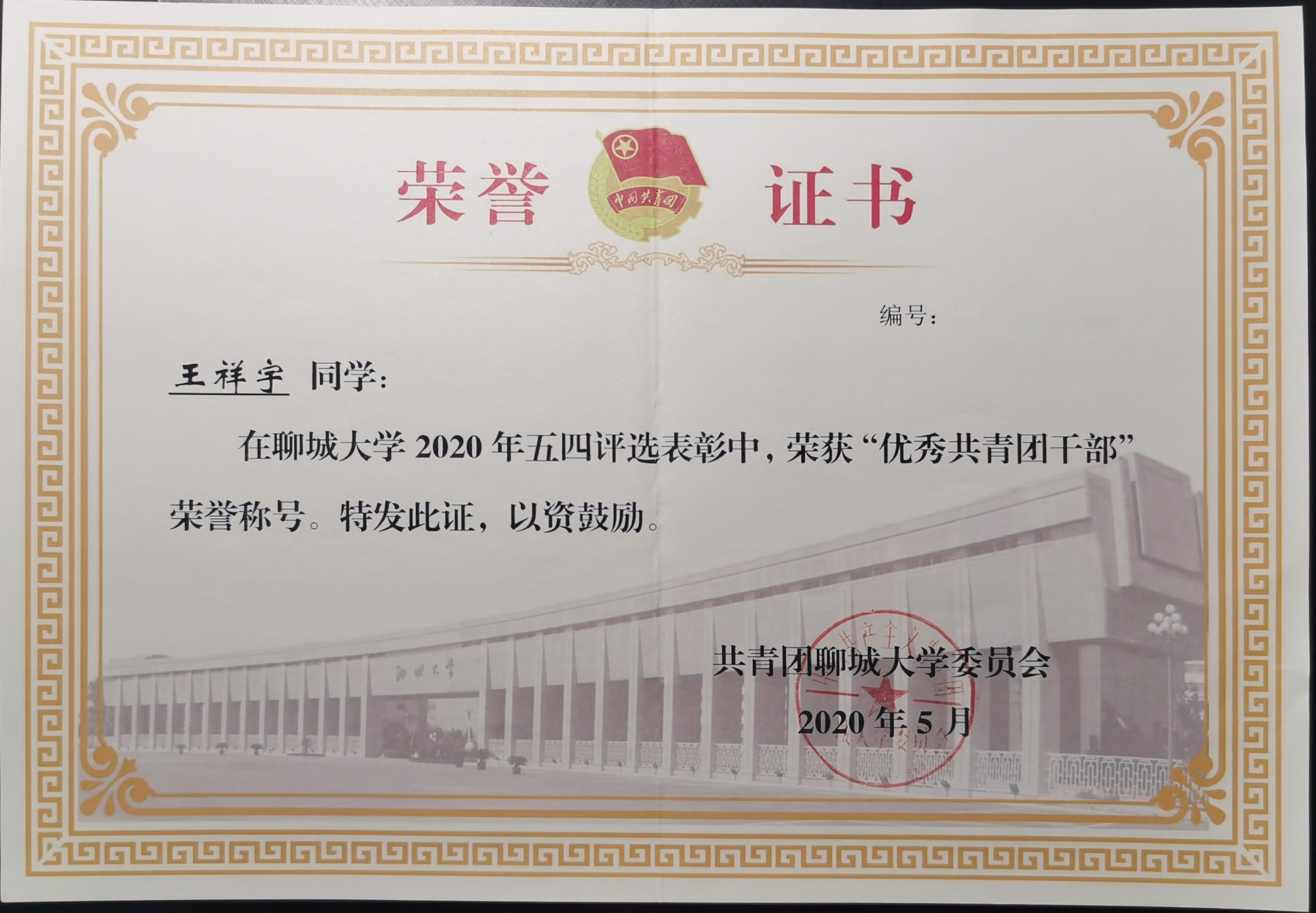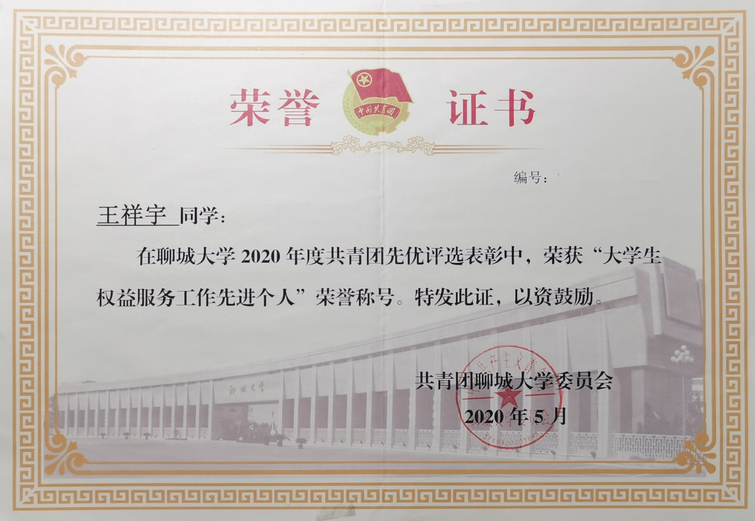 孟令强获得校级“共青团思想引领和宣传教育工作先进个人称号