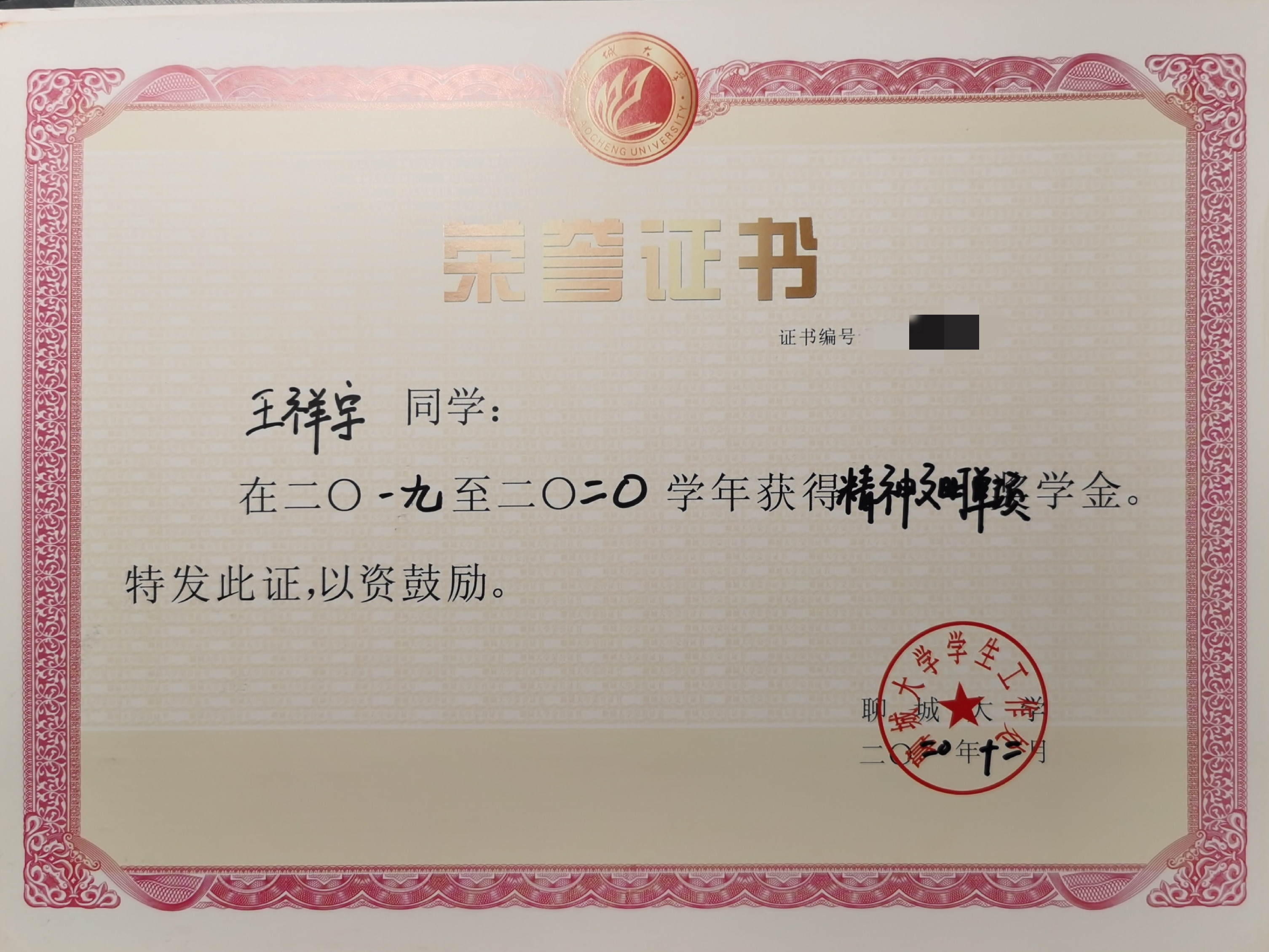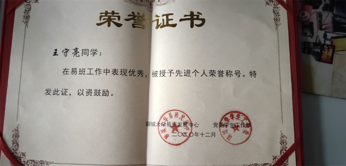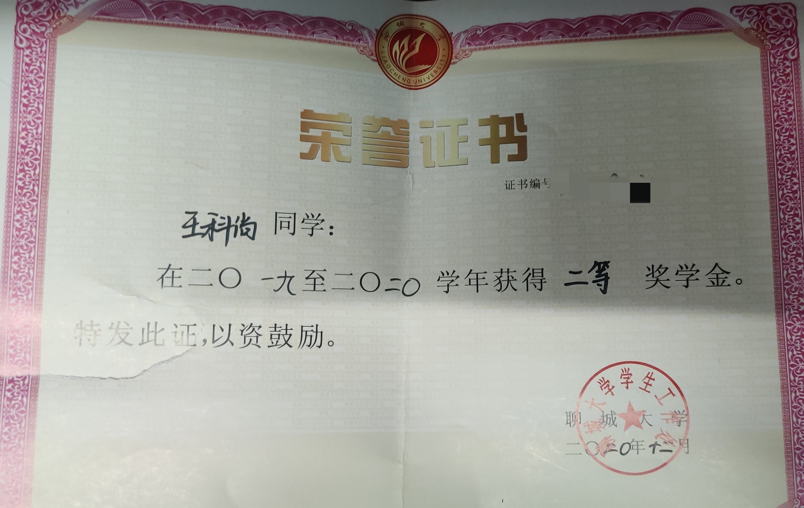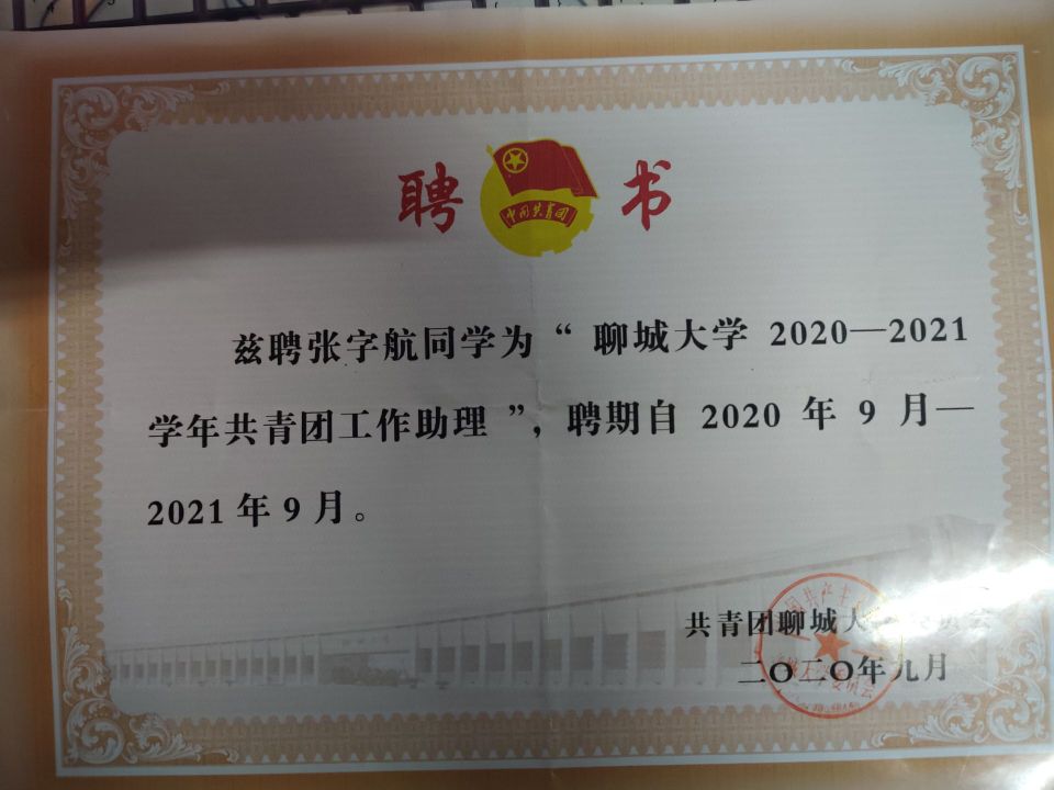 孟令强获得校级“共青团思想引领和宣传教育工作先进个人称号