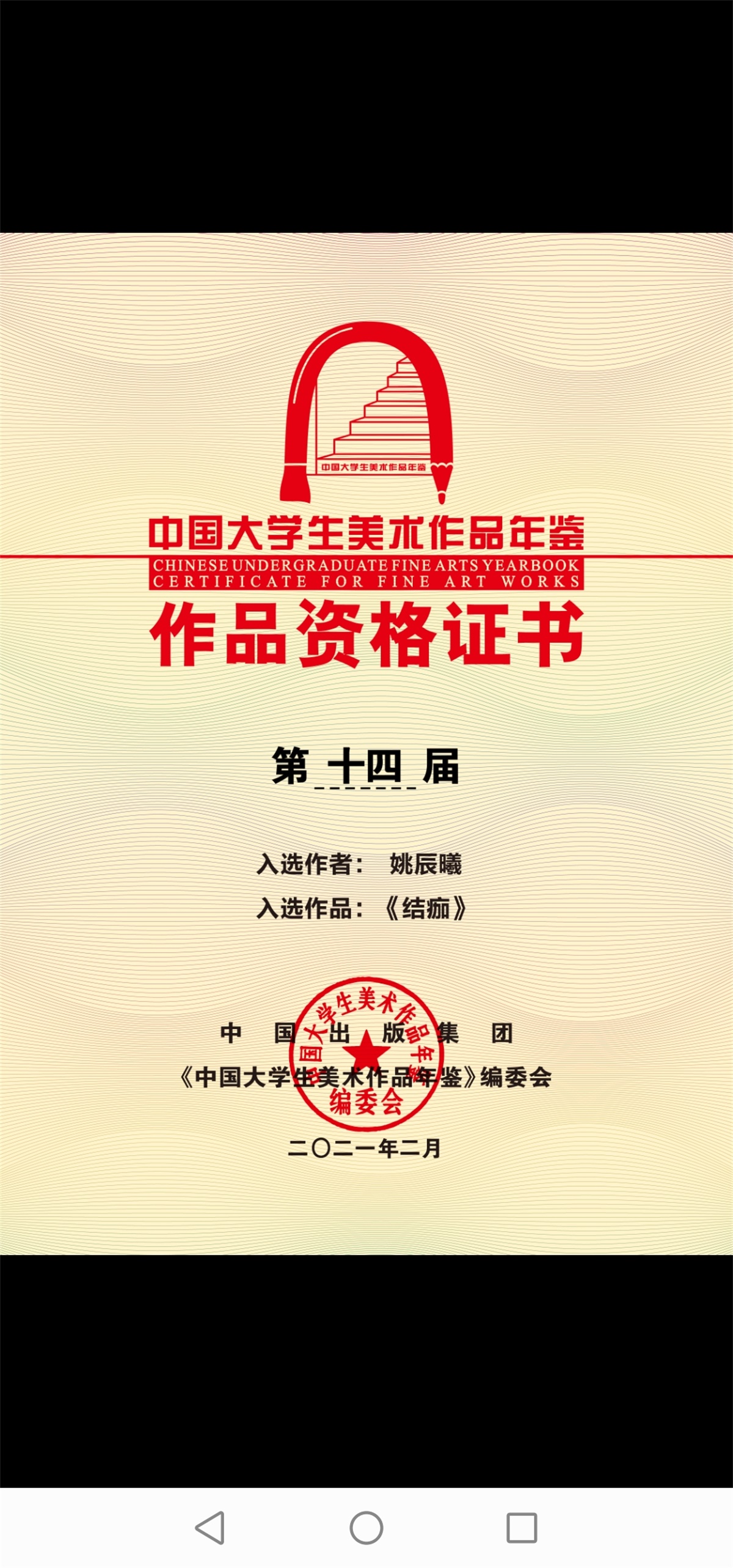 张志伟的《保卫武汉》获得中国大学生美术作品年鉴作品资格证书