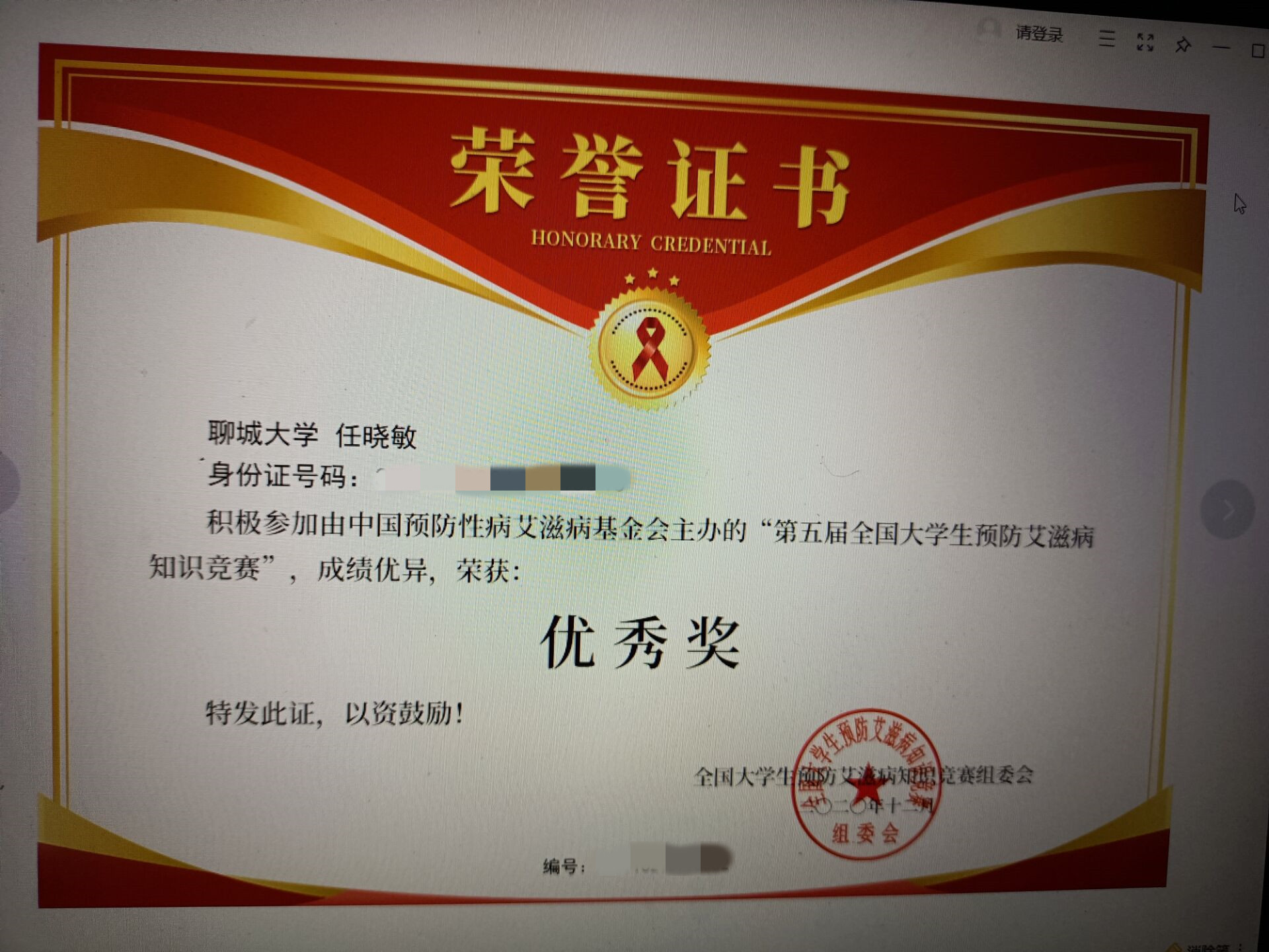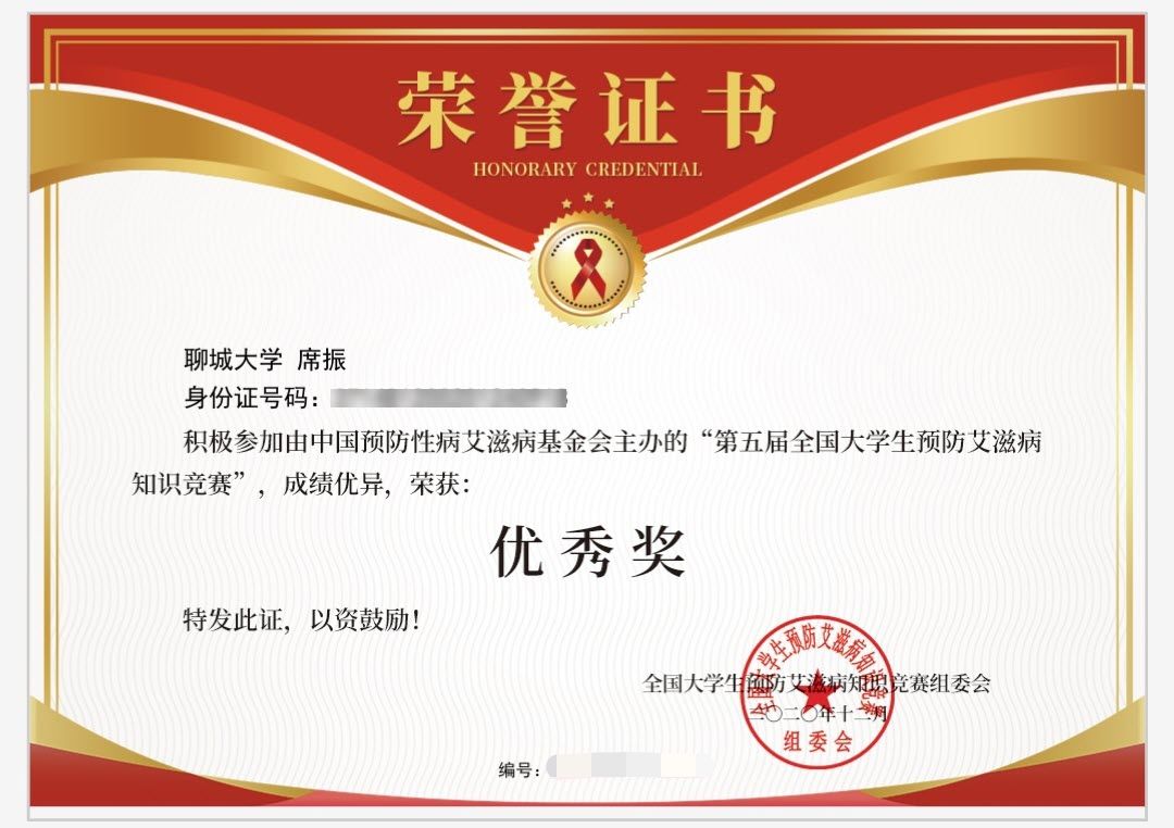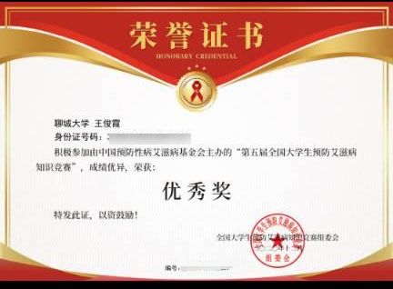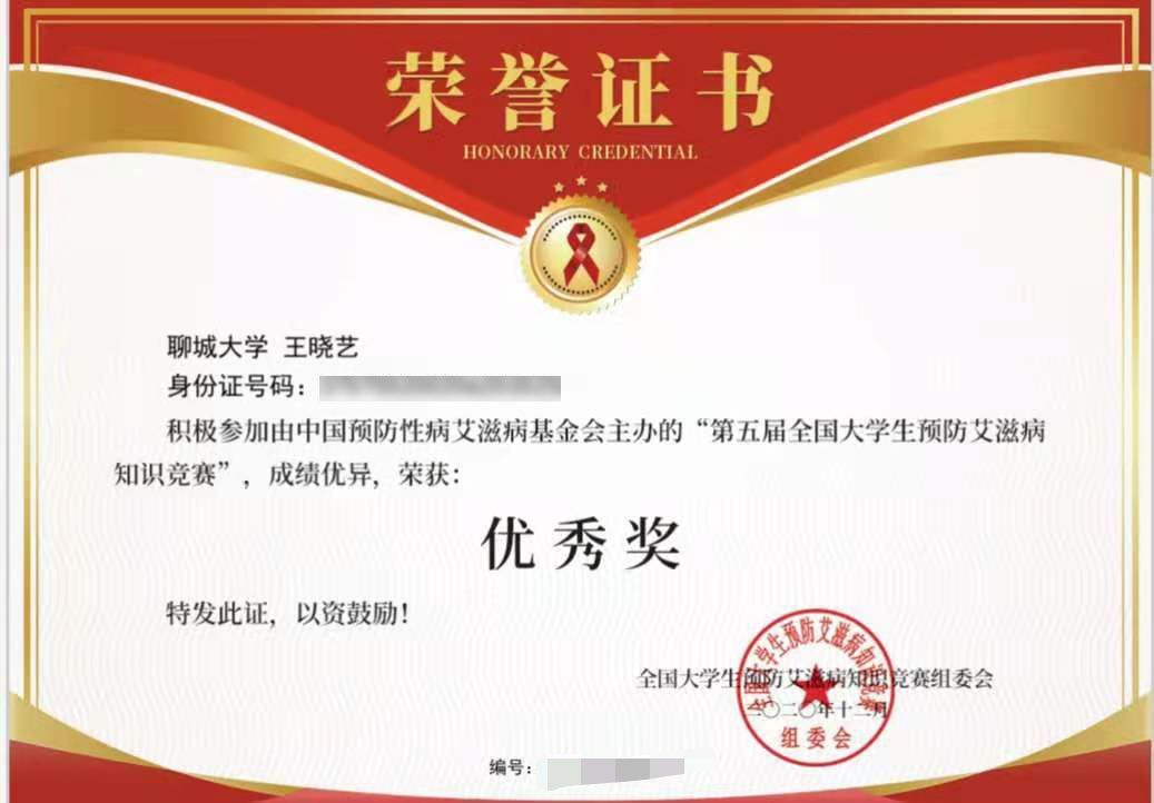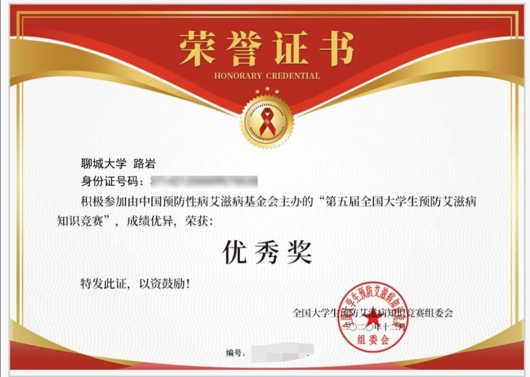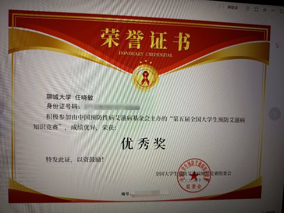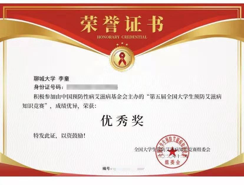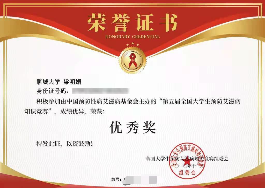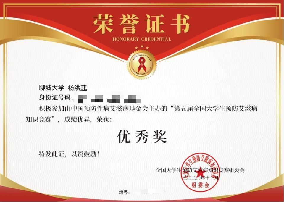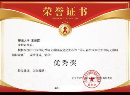 李家昊 “第五届全国大学生预防艾滋病知识竞赛” 优秀奖