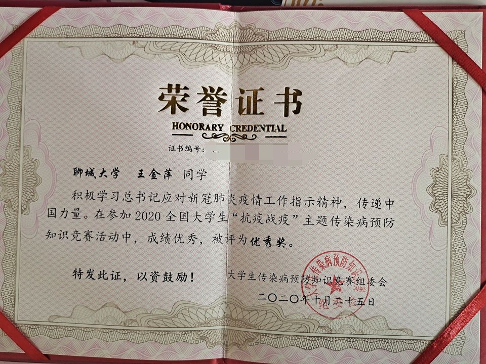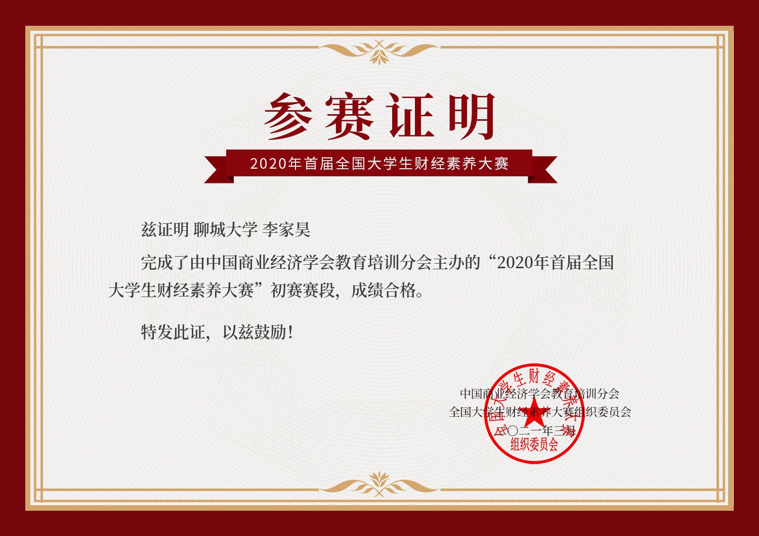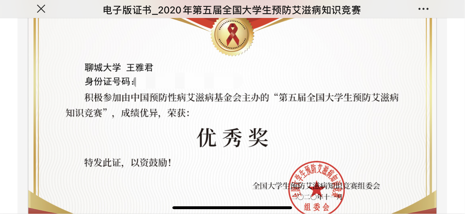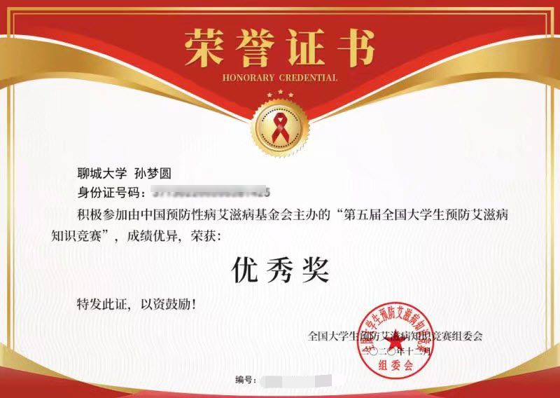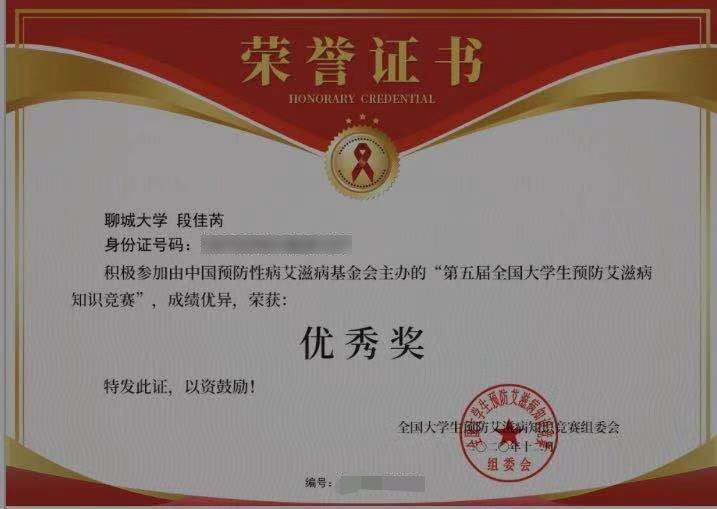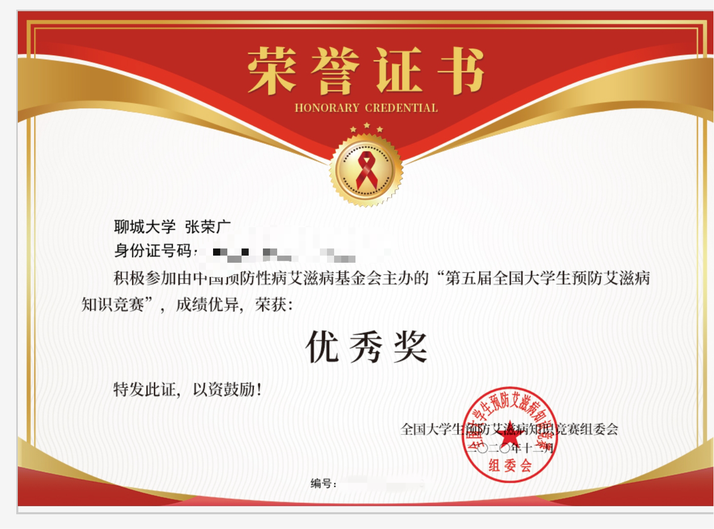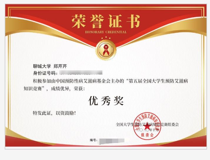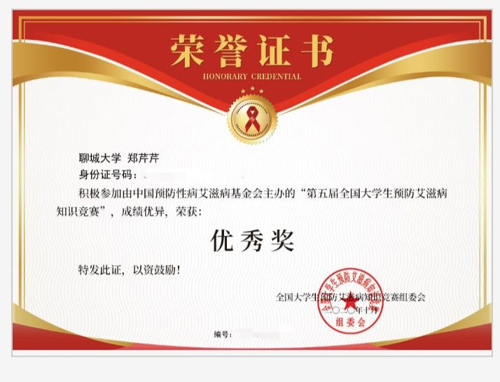李家昊 “第五届全国大学生预防艾滋病知识竞赛” 优秀奖