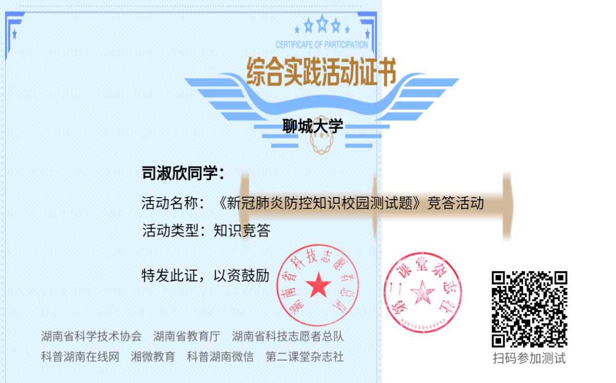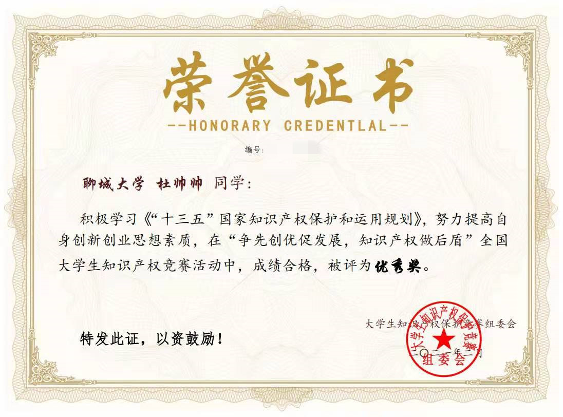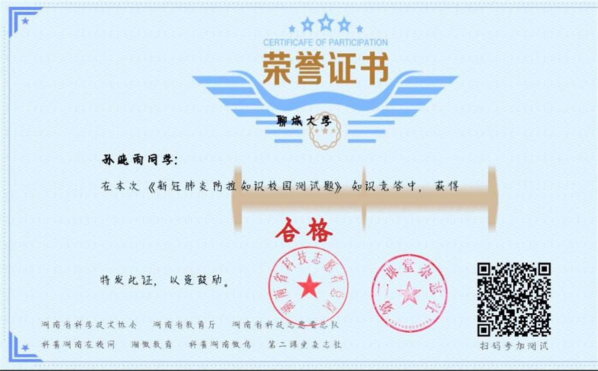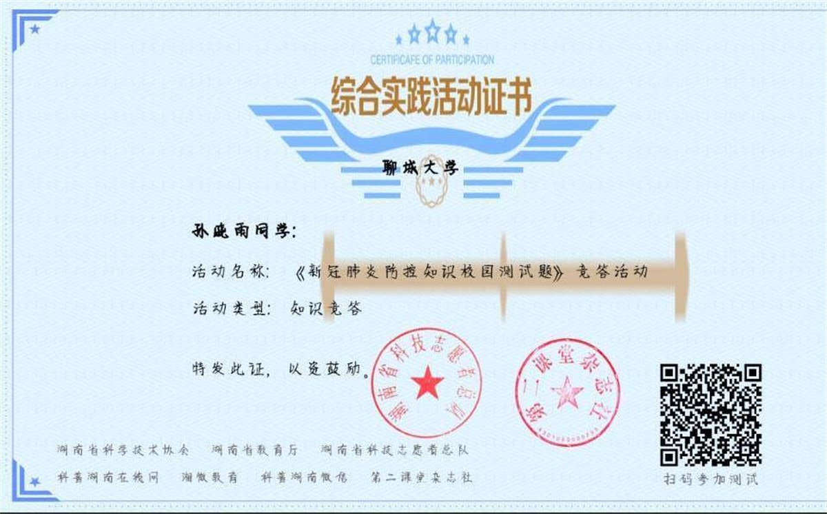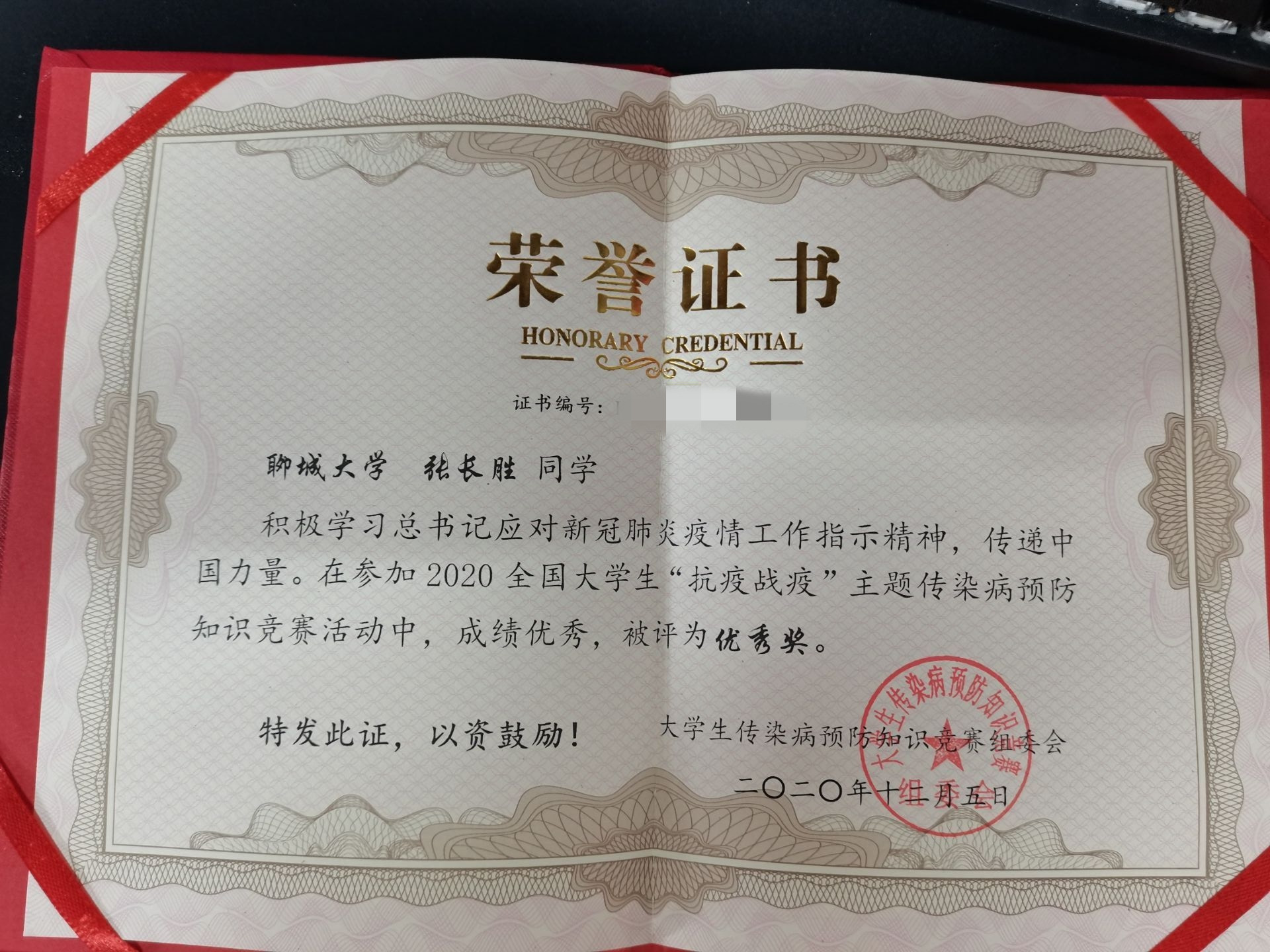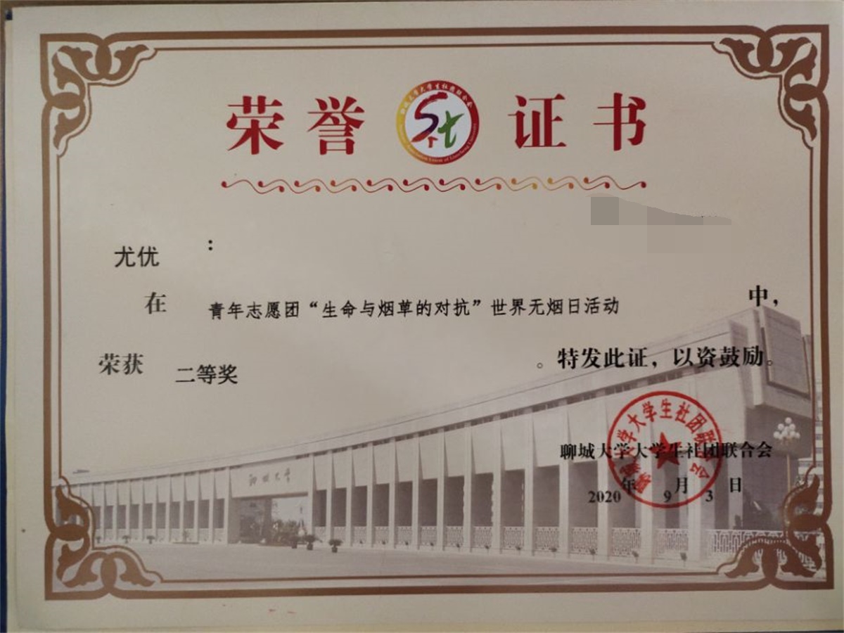 李家昊 “第五届全国大学生预防艾滋病知识竞赛” 优秀奖