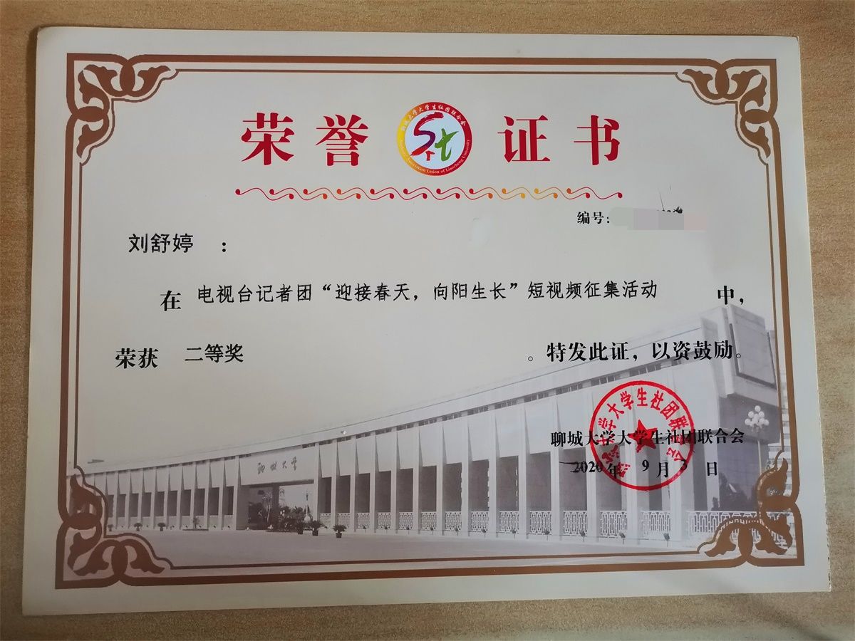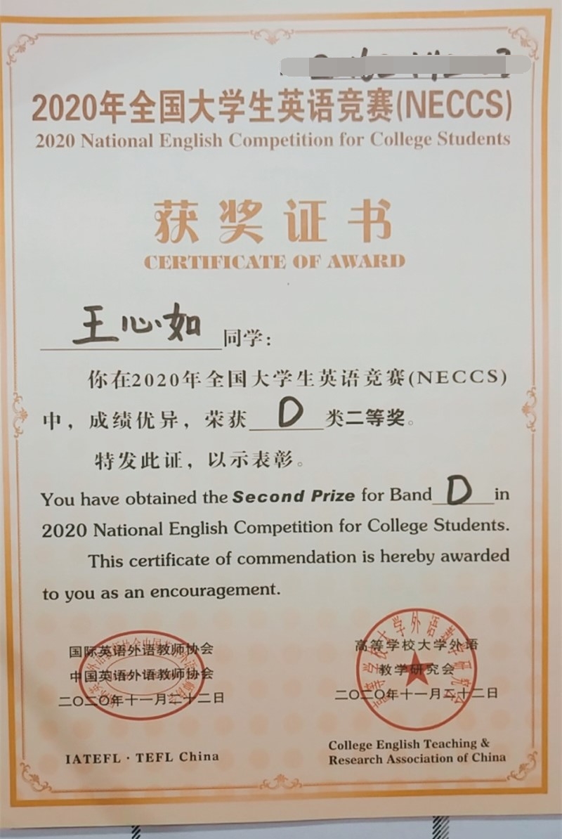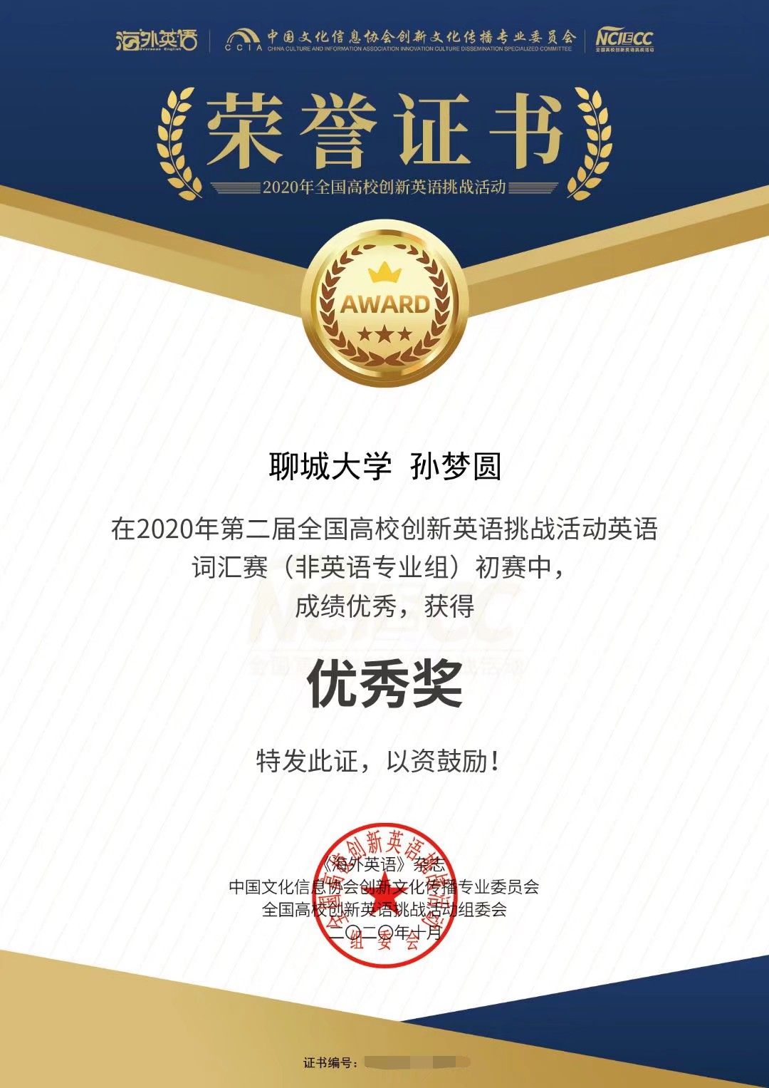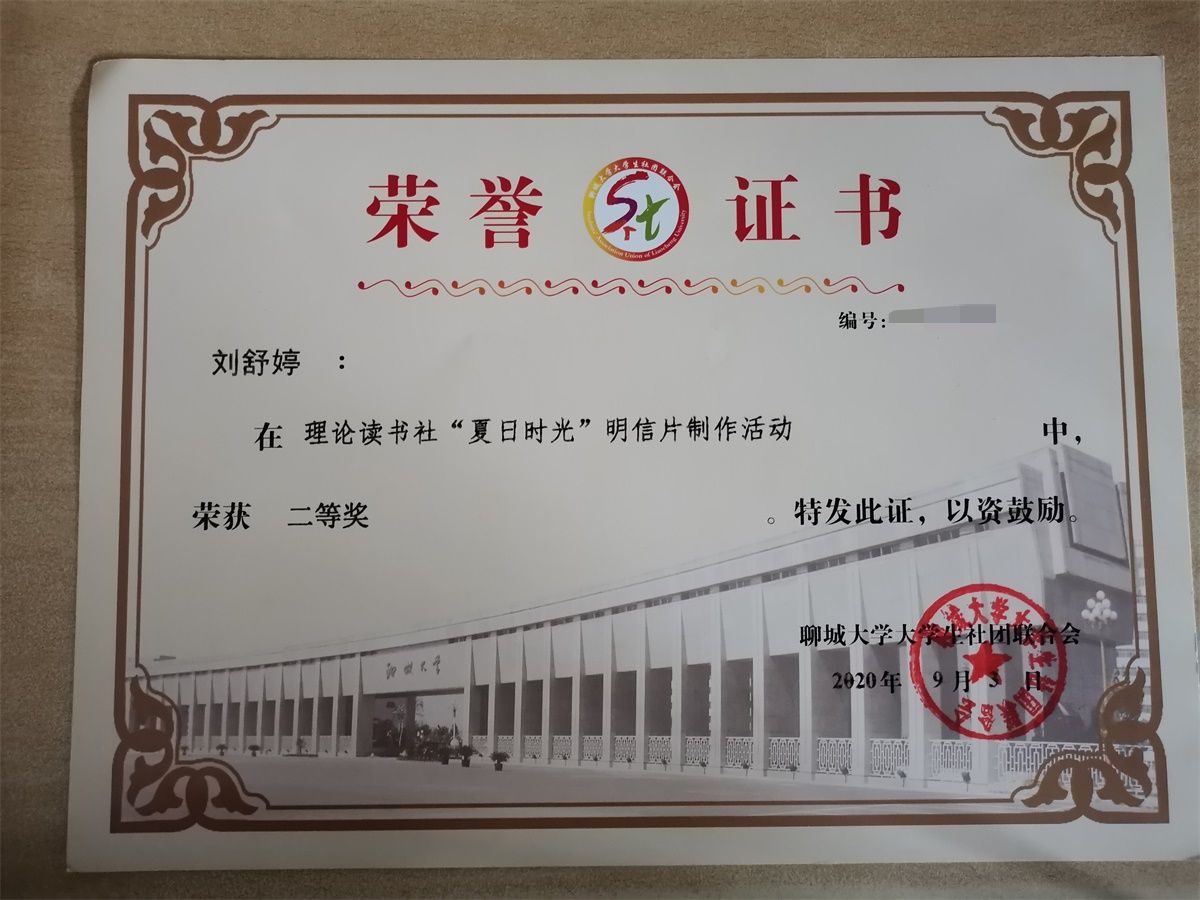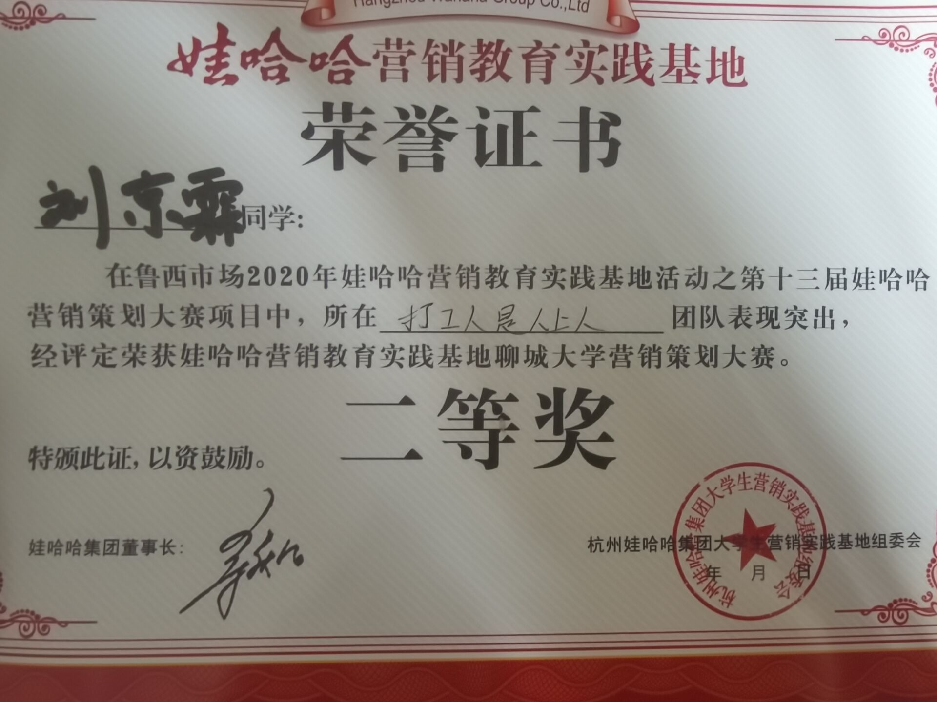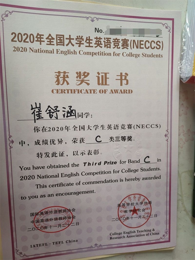 迟雪婷获得.j年山东省大学生“教育杯”英语写作大赛获得二等奖pg