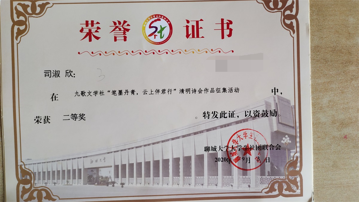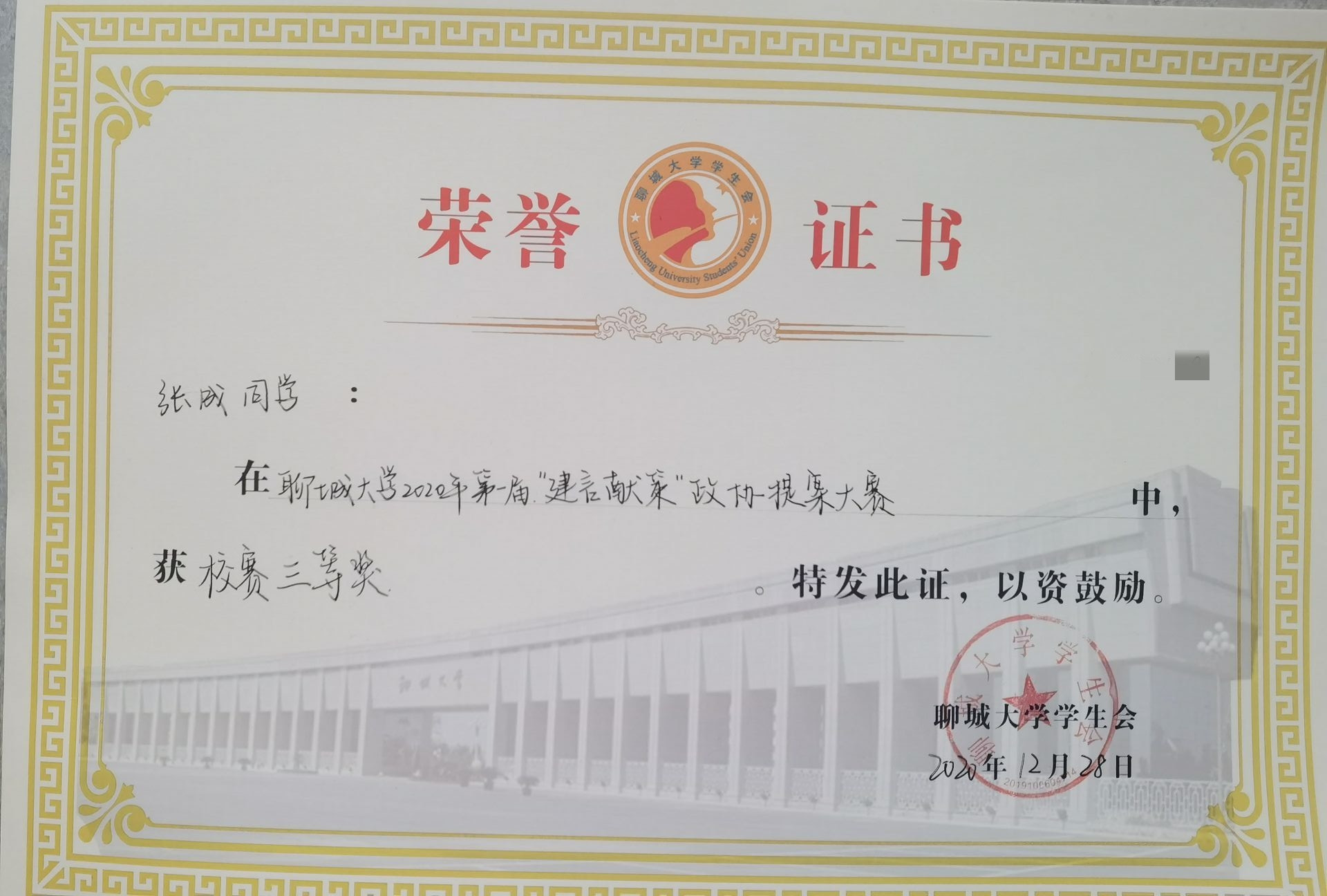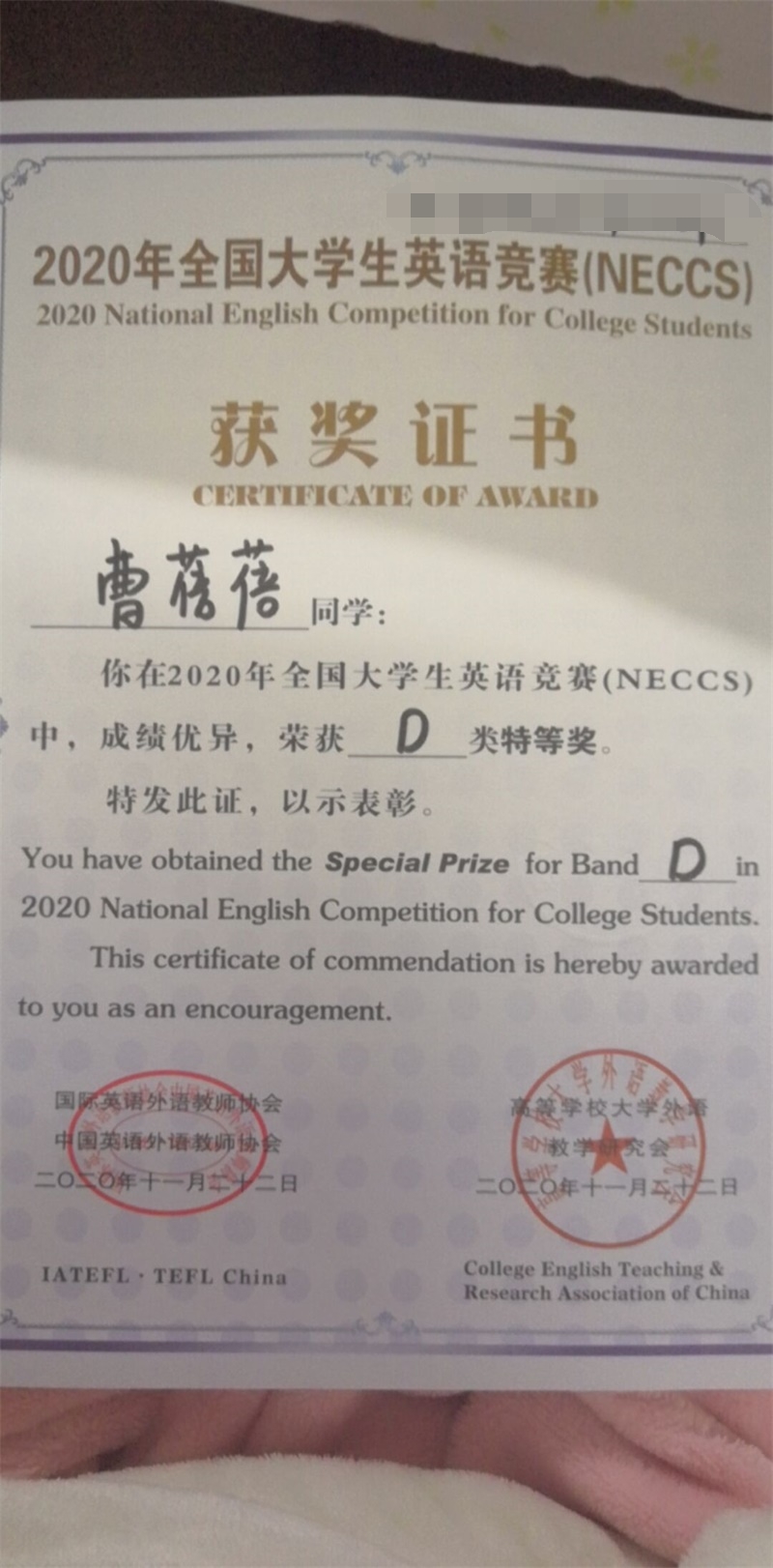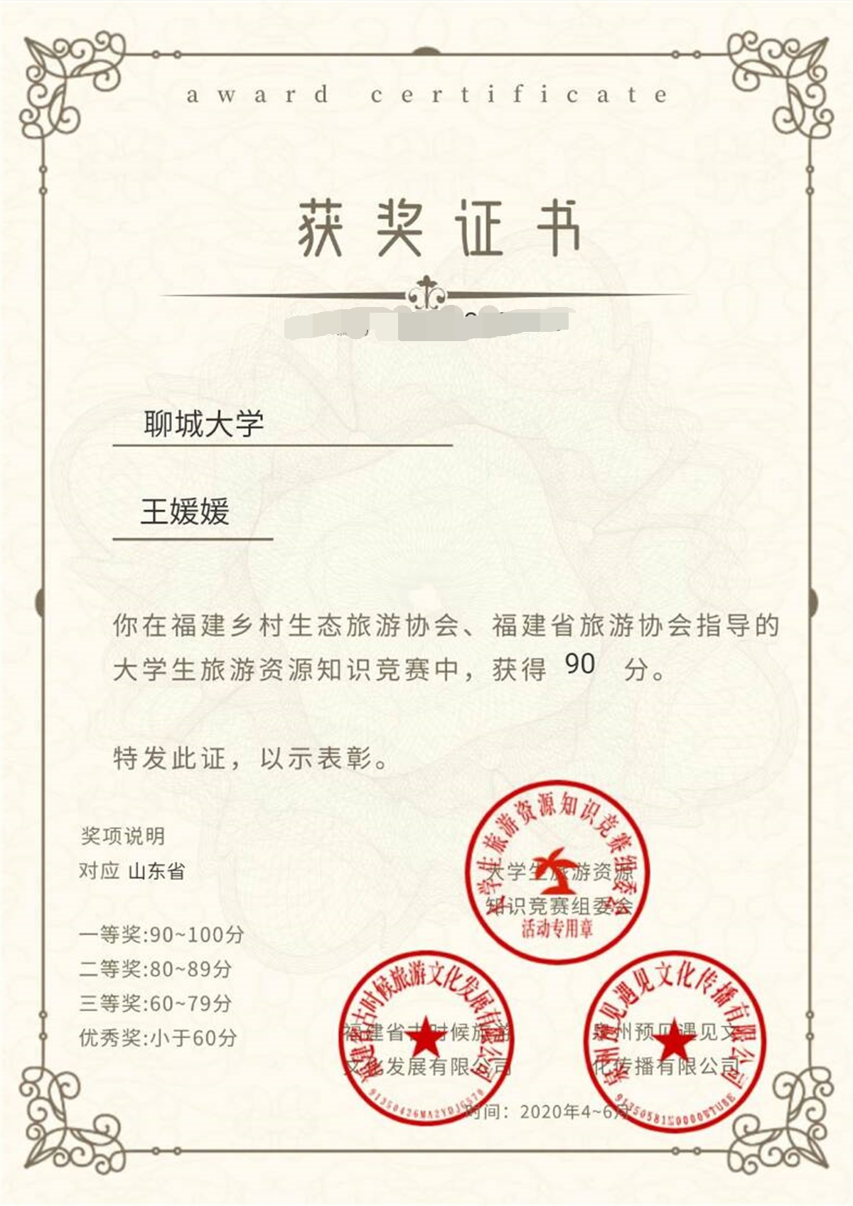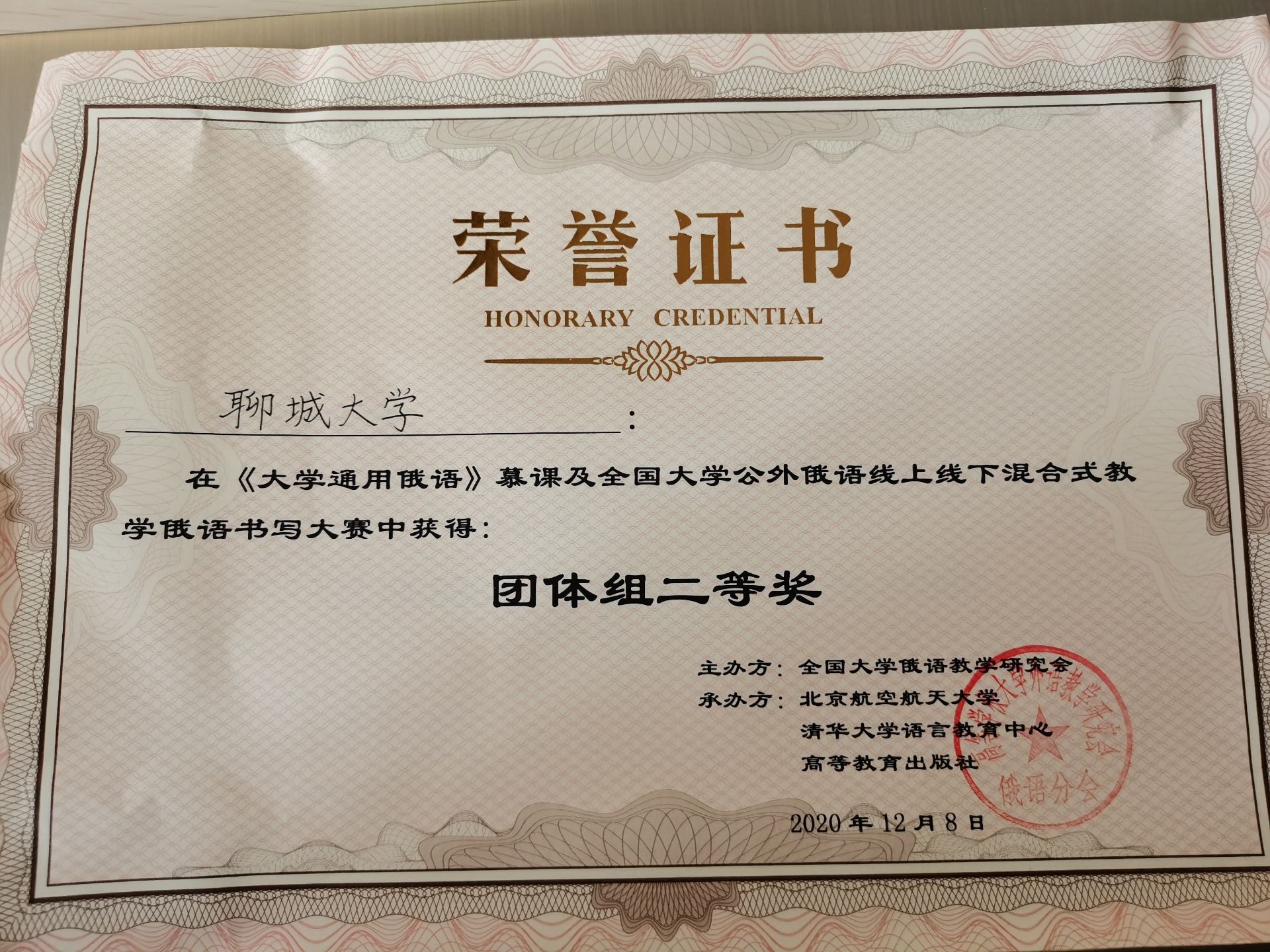 迟雪婷获得.j年山东省大学生“教育杯”英语写作大赛获得二等奖pg