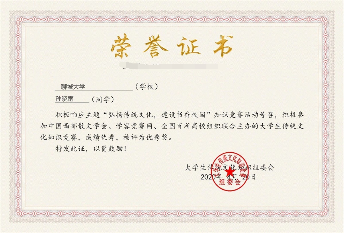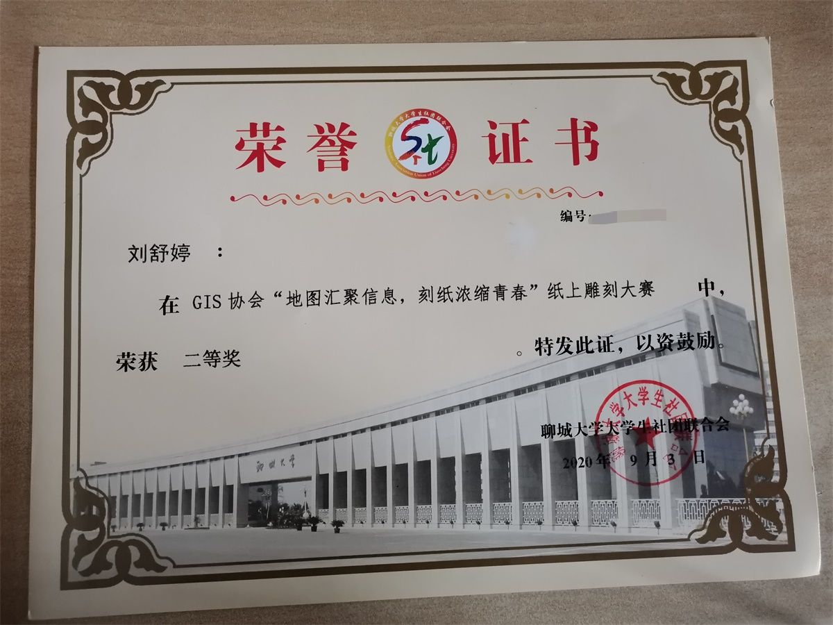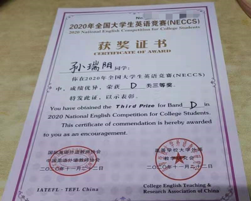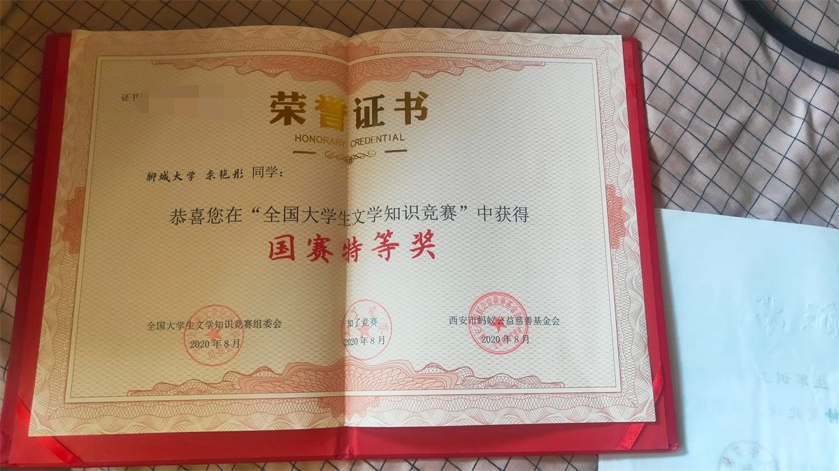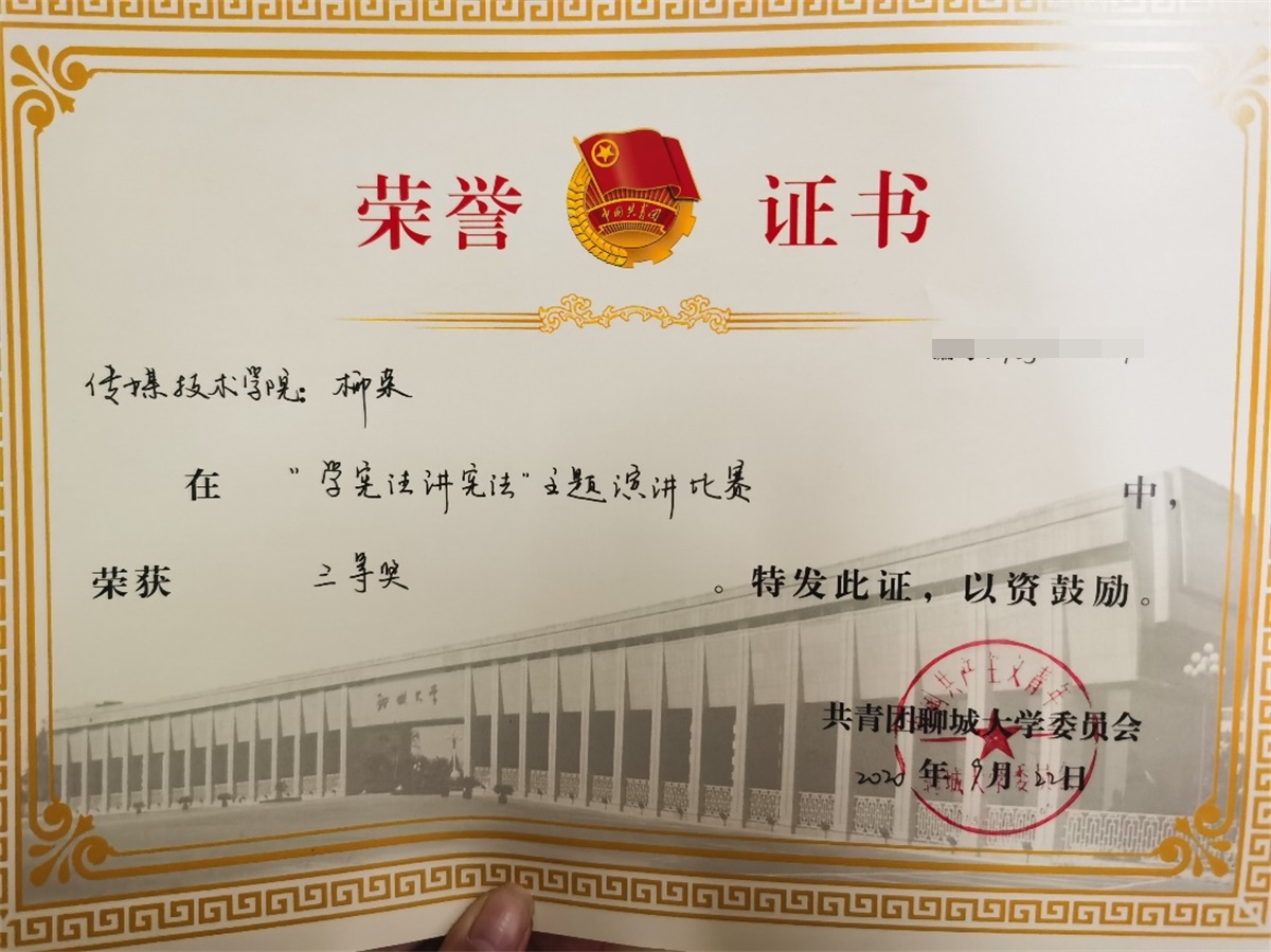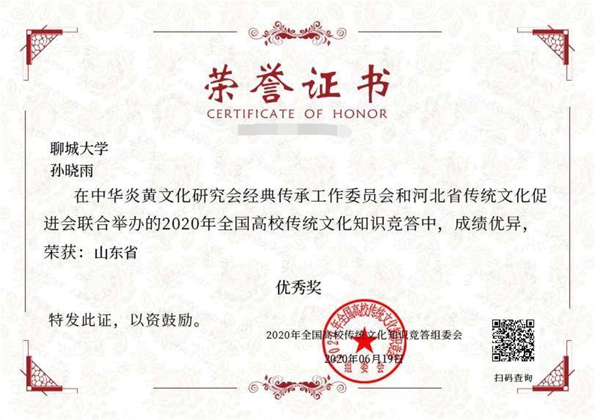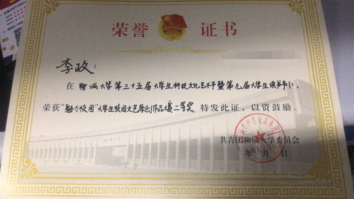 迟雪婷获得.j年山东省大学生“教育杯”英语写作大赛获得二等奖pg