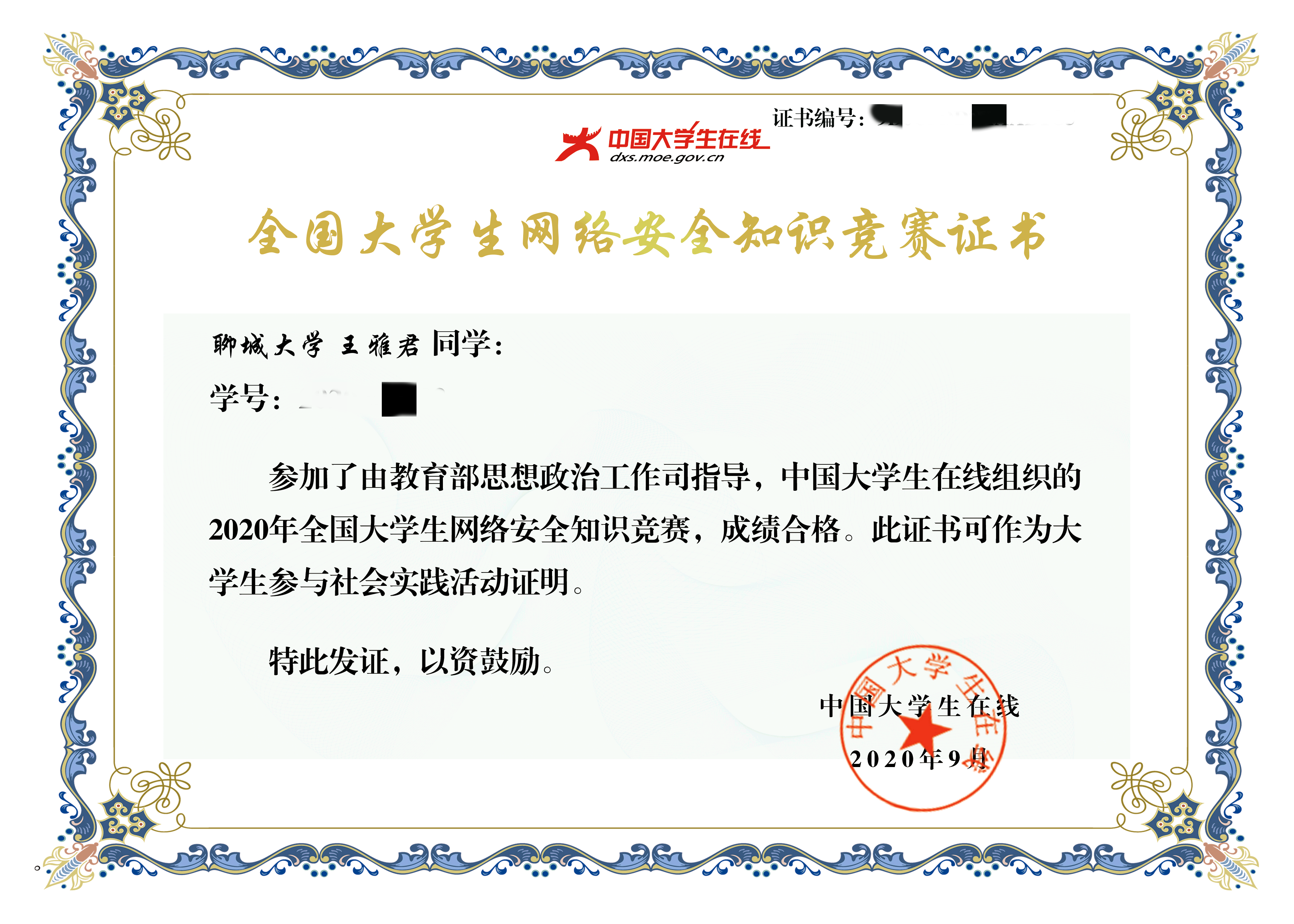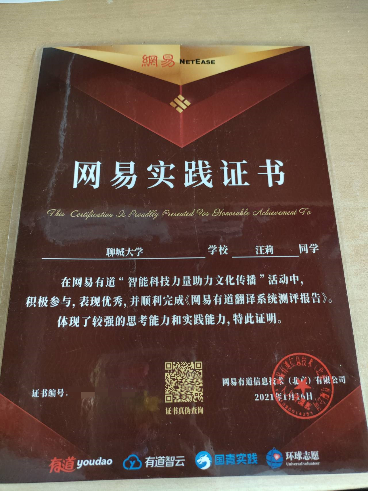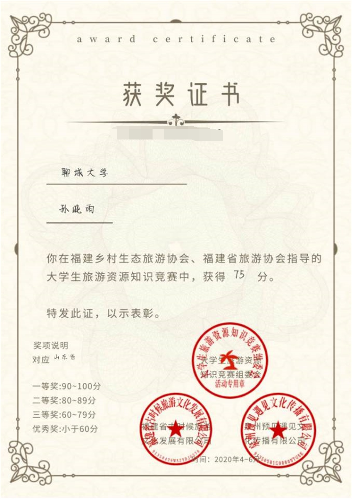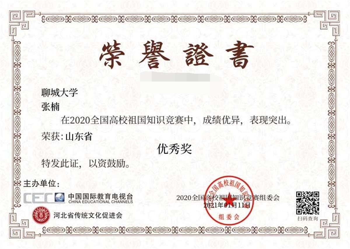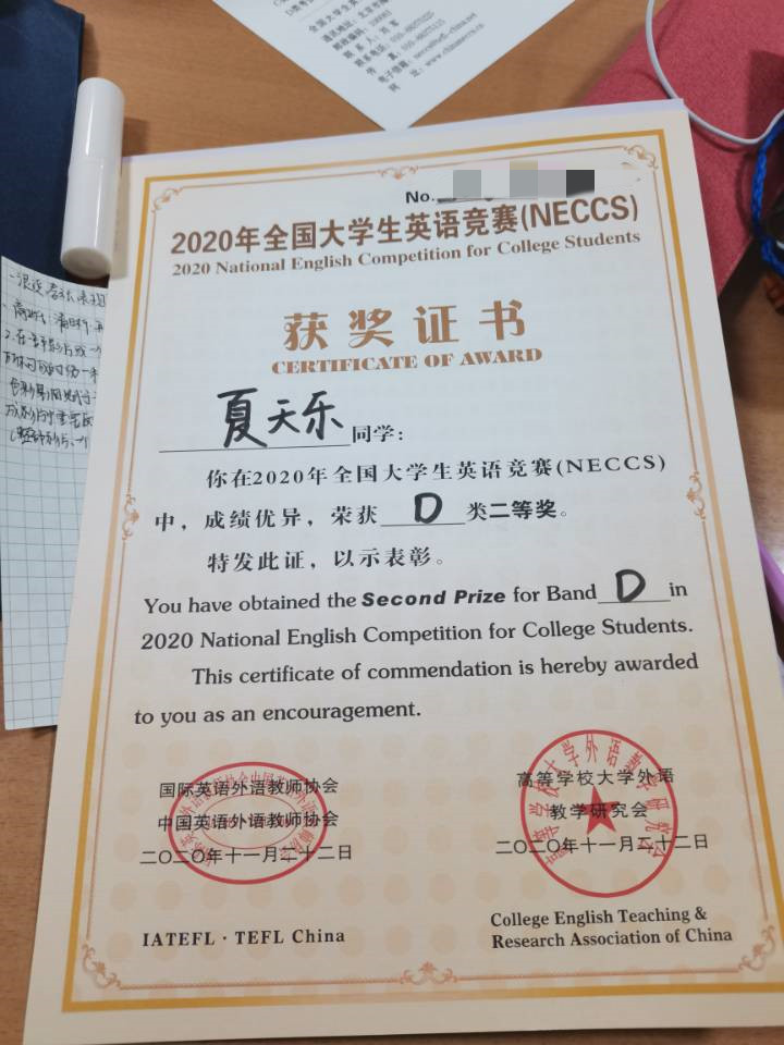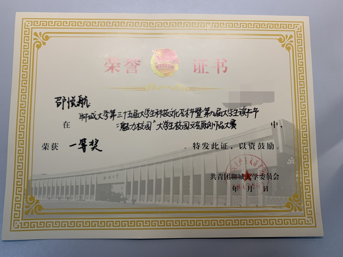 迟雪婷获得.j年山东省大学生“教育杯”英语写作大赛获得二等奖pg