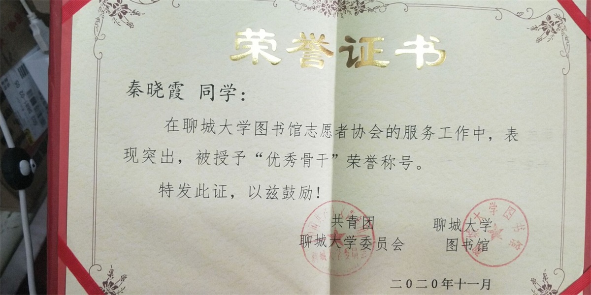 图书馆志愿者协会的服务工作汇总获得“优秀骨干”称号