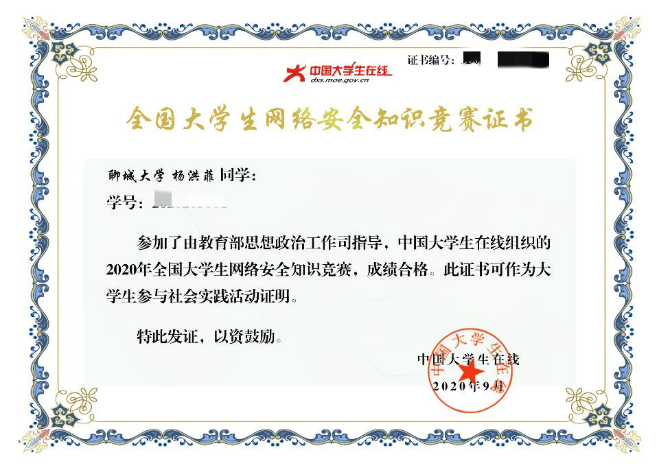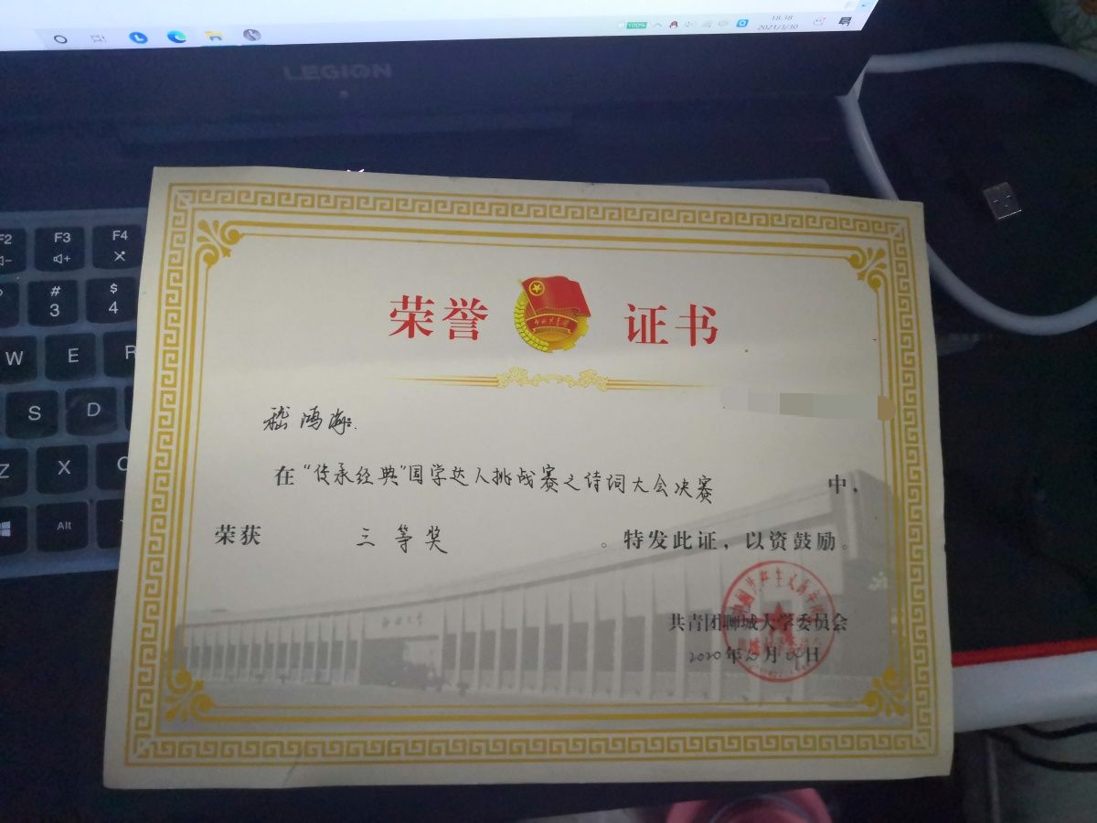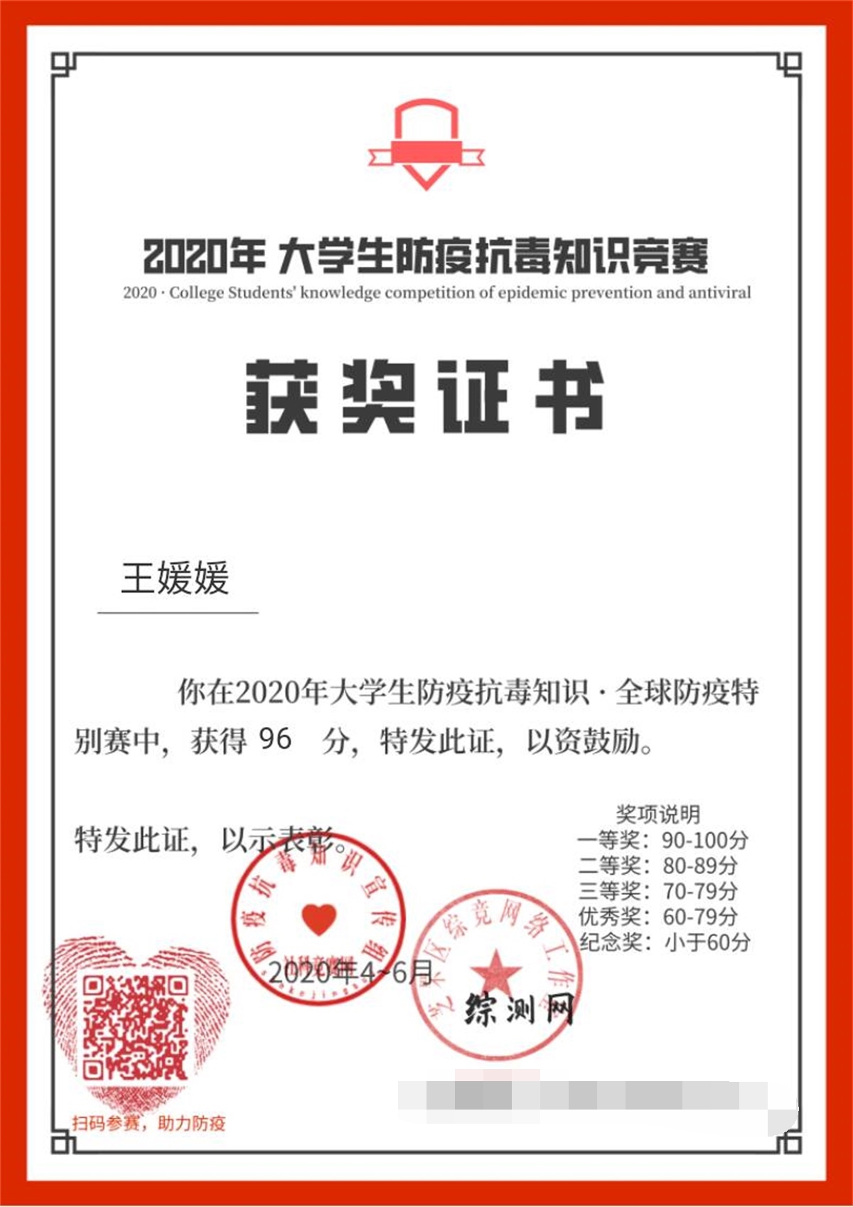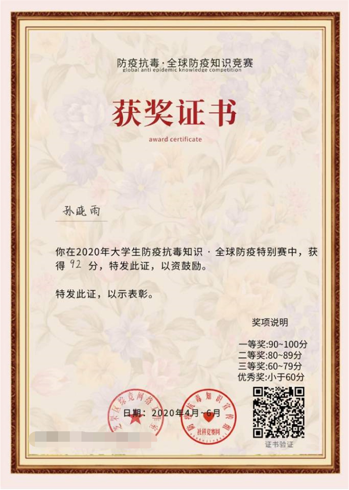 葛戈,2020年第四届全国大学生环保知识竞赛优秀奖