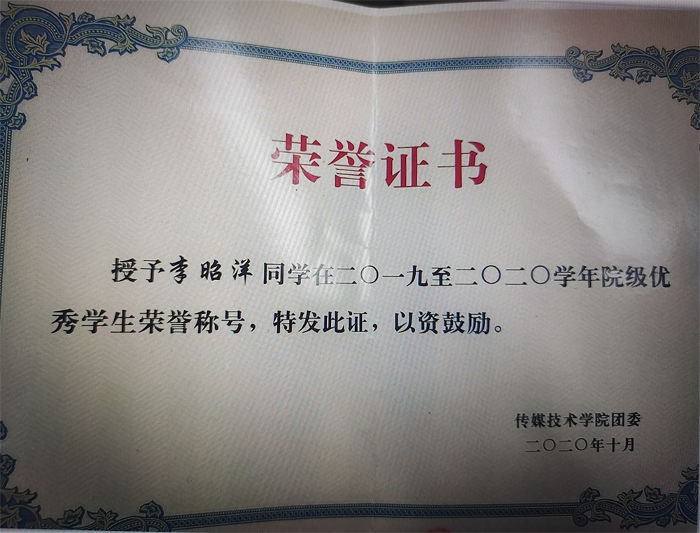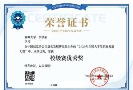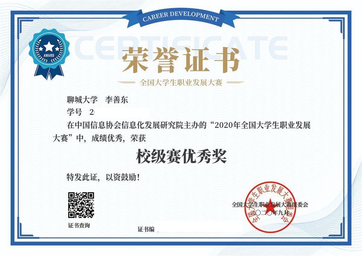 李善东,2020年全国大学生职业发展大赛校级赛优秀奖