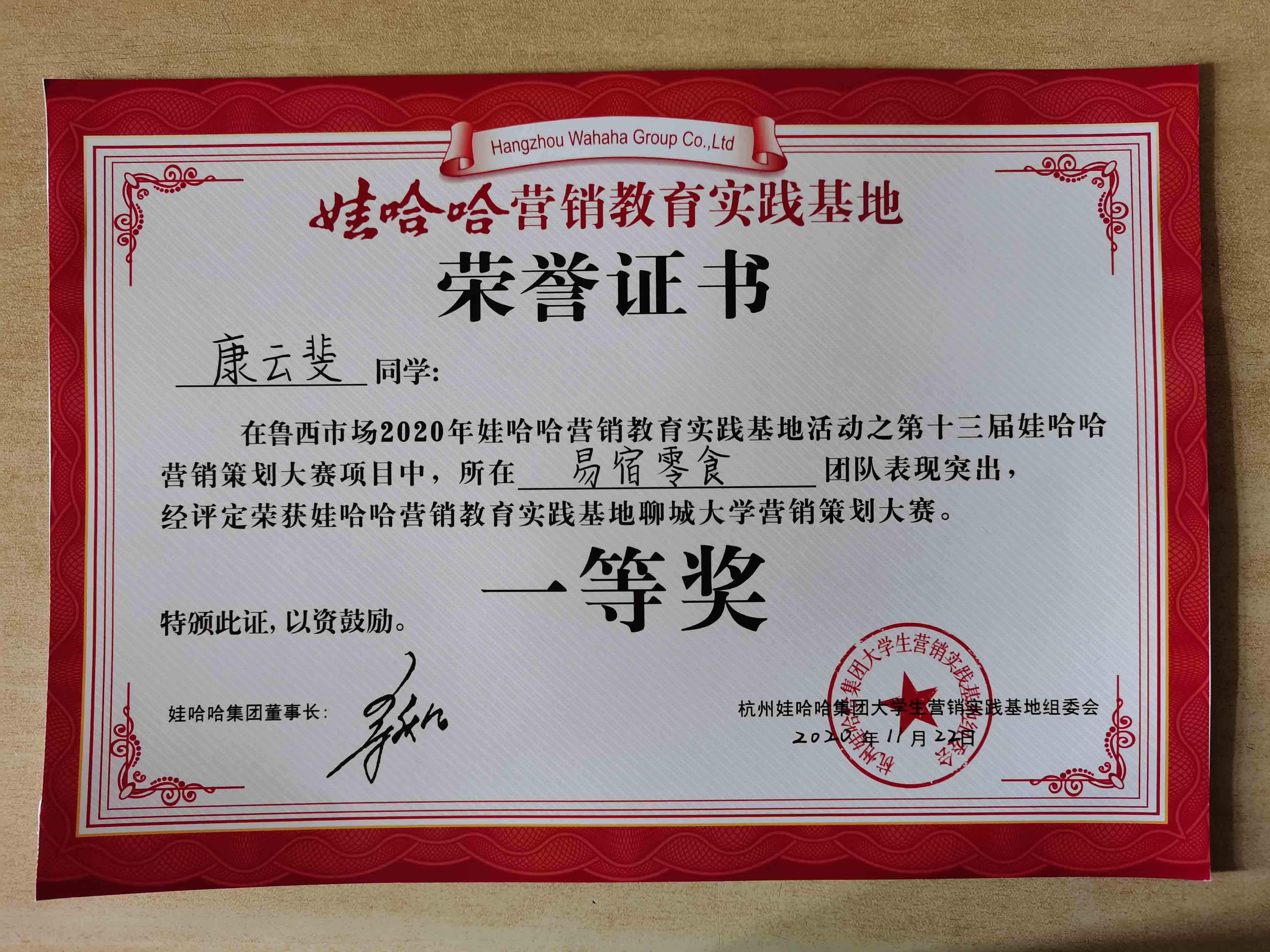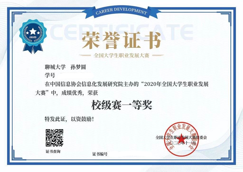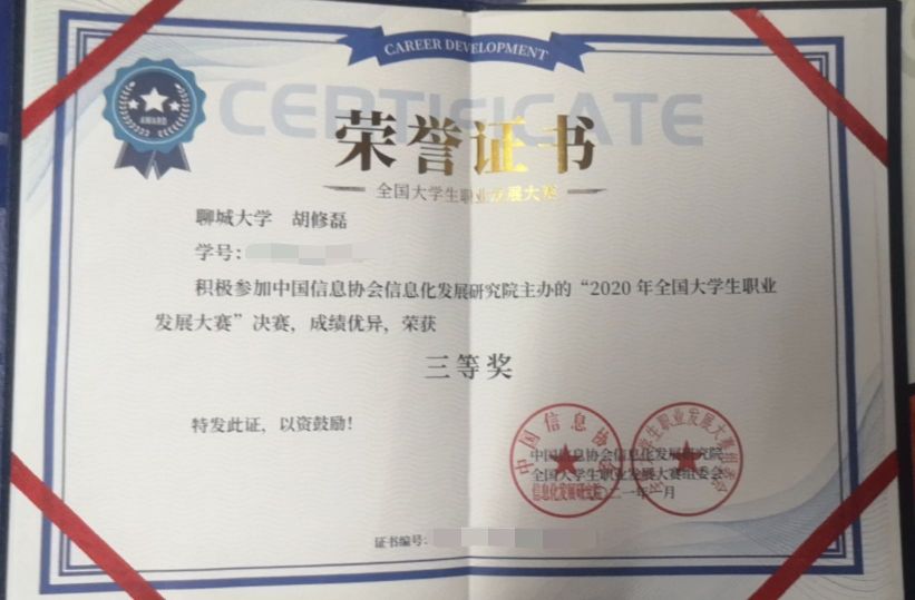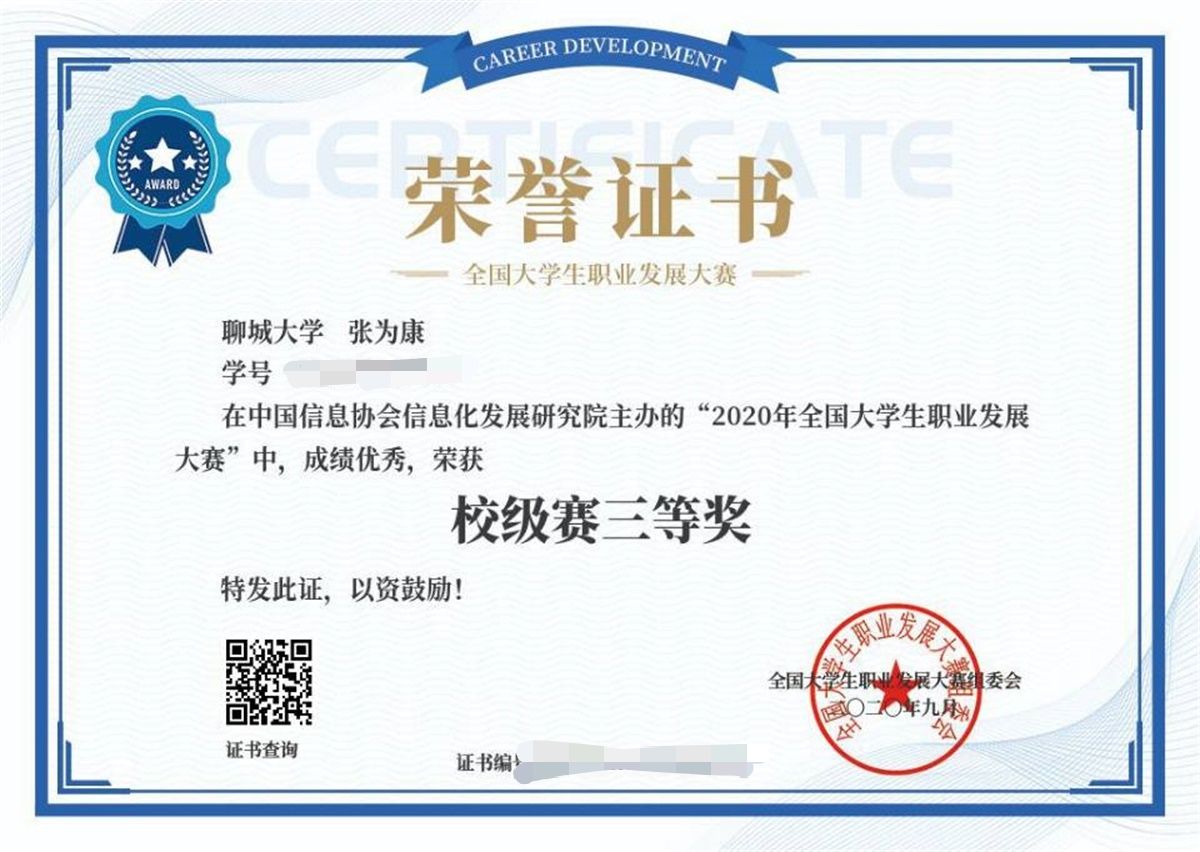 张为康,2020年全国大学生职业发展大赛校级赛三等奖