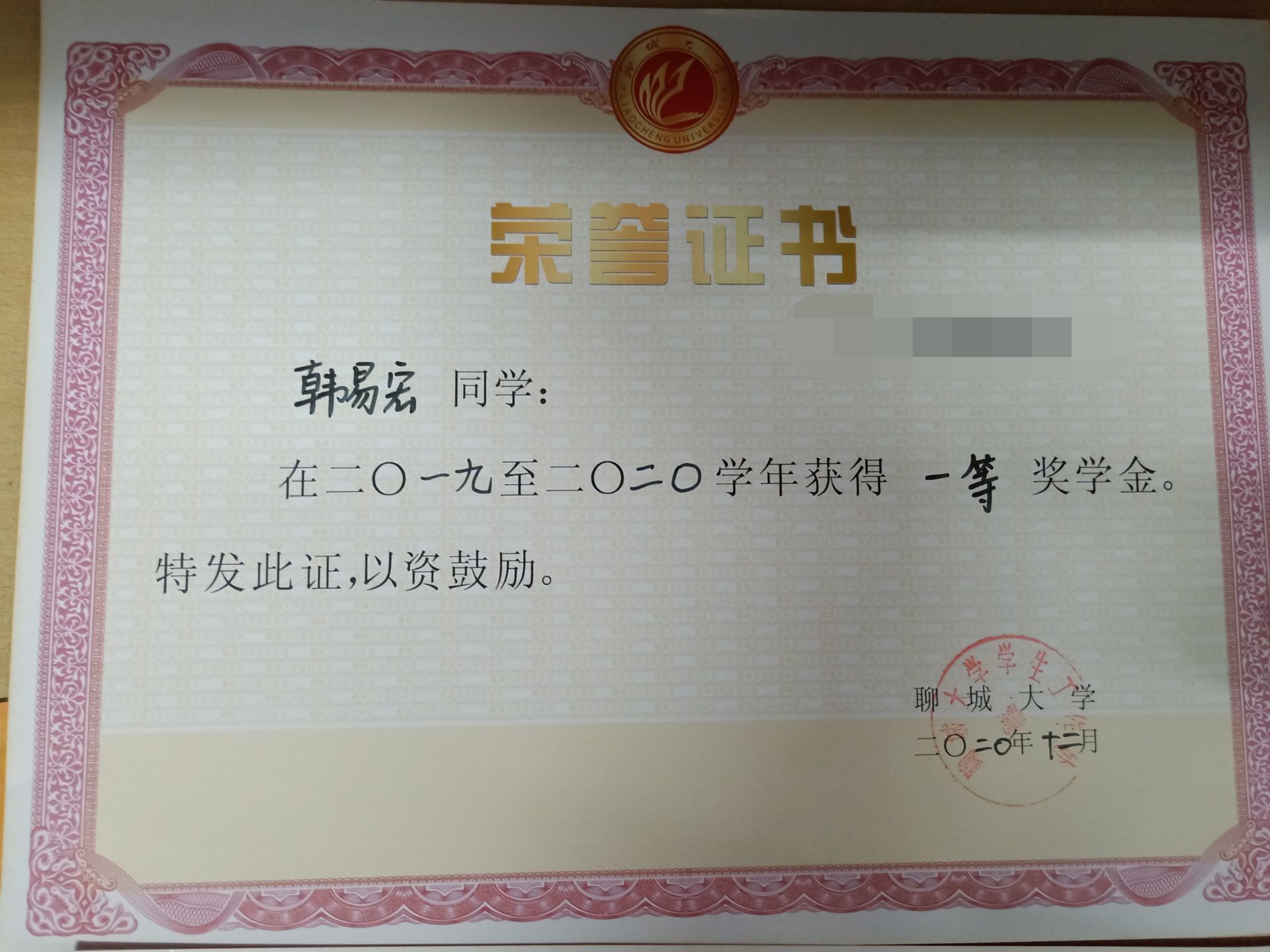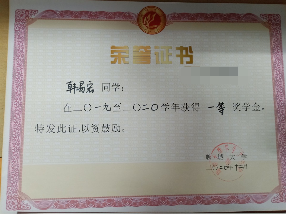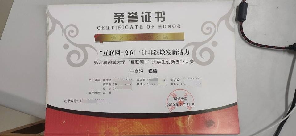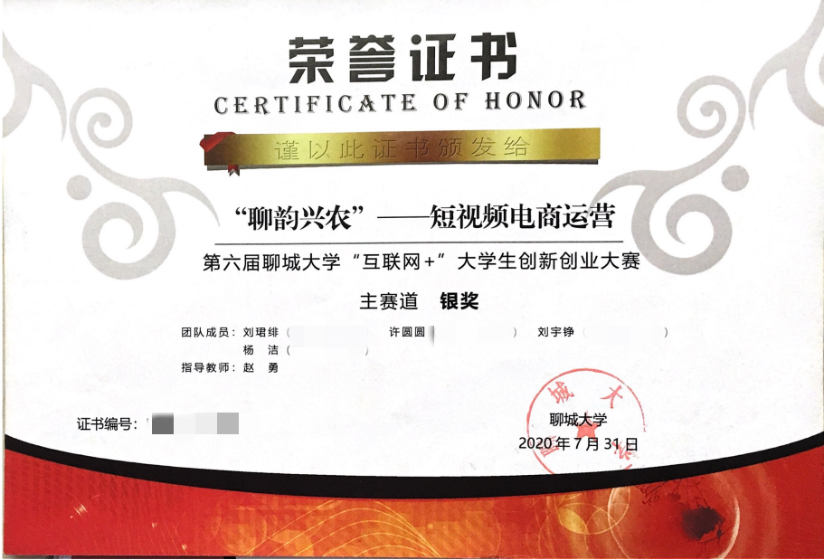 刘雨豪,2020年全国创新教育成果征集活动高校一等奖