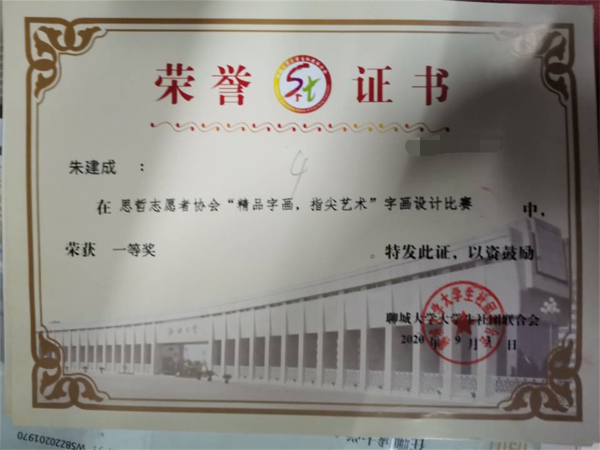 朱建成”精品字画,指尖艺术“字画设计比赛获得一等奖