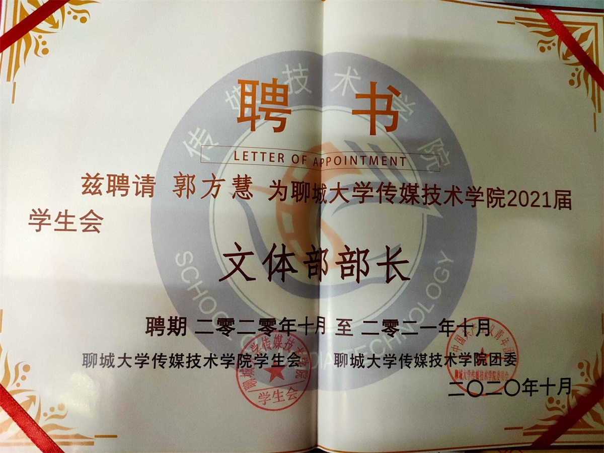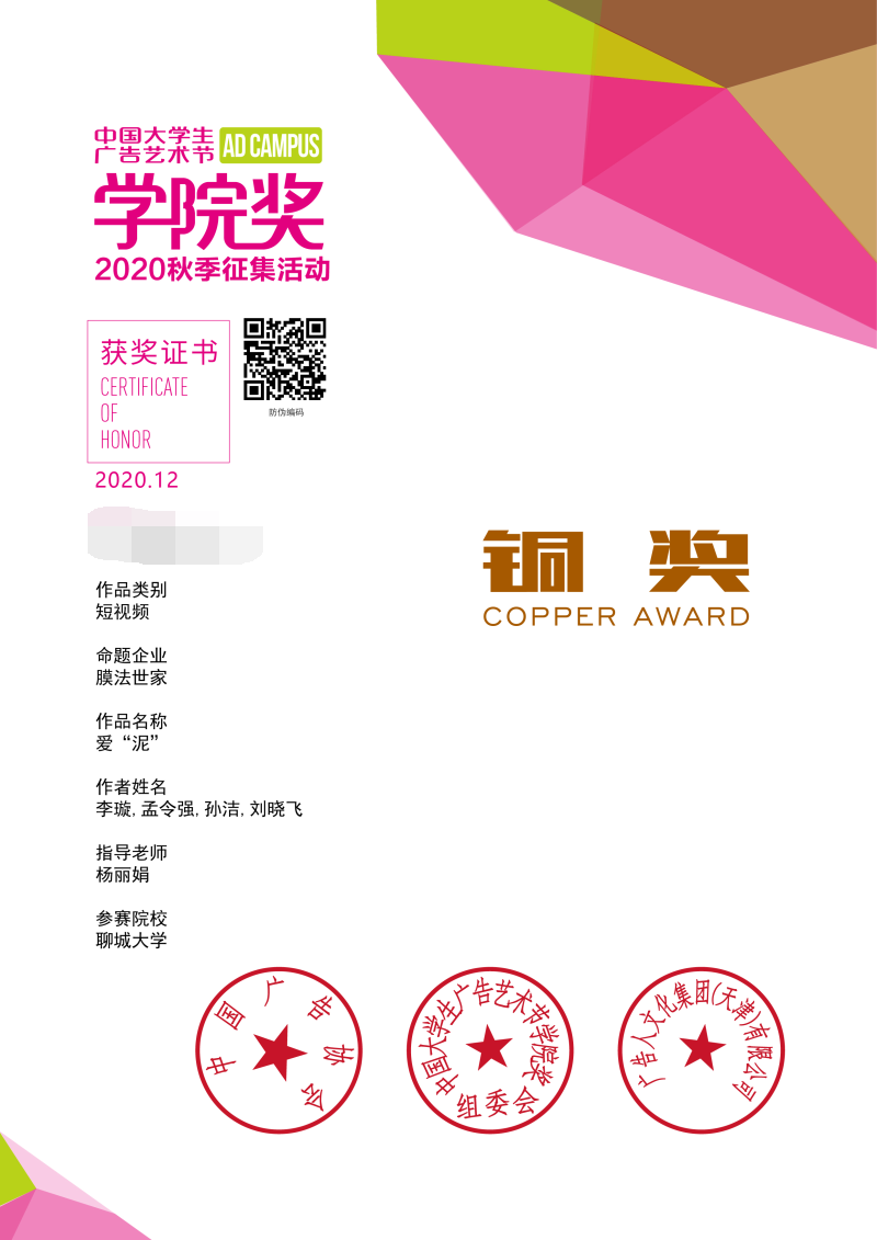 《金色聊大》获得2020年“高校影视作品交流展映”活动短视频类二类