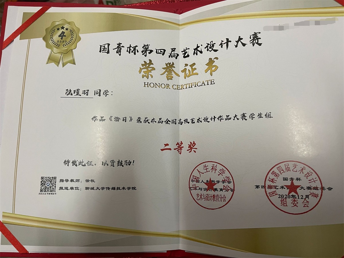 陆瑾羽的《海日》获得国青杯第四届艺术设计大赛二等奖