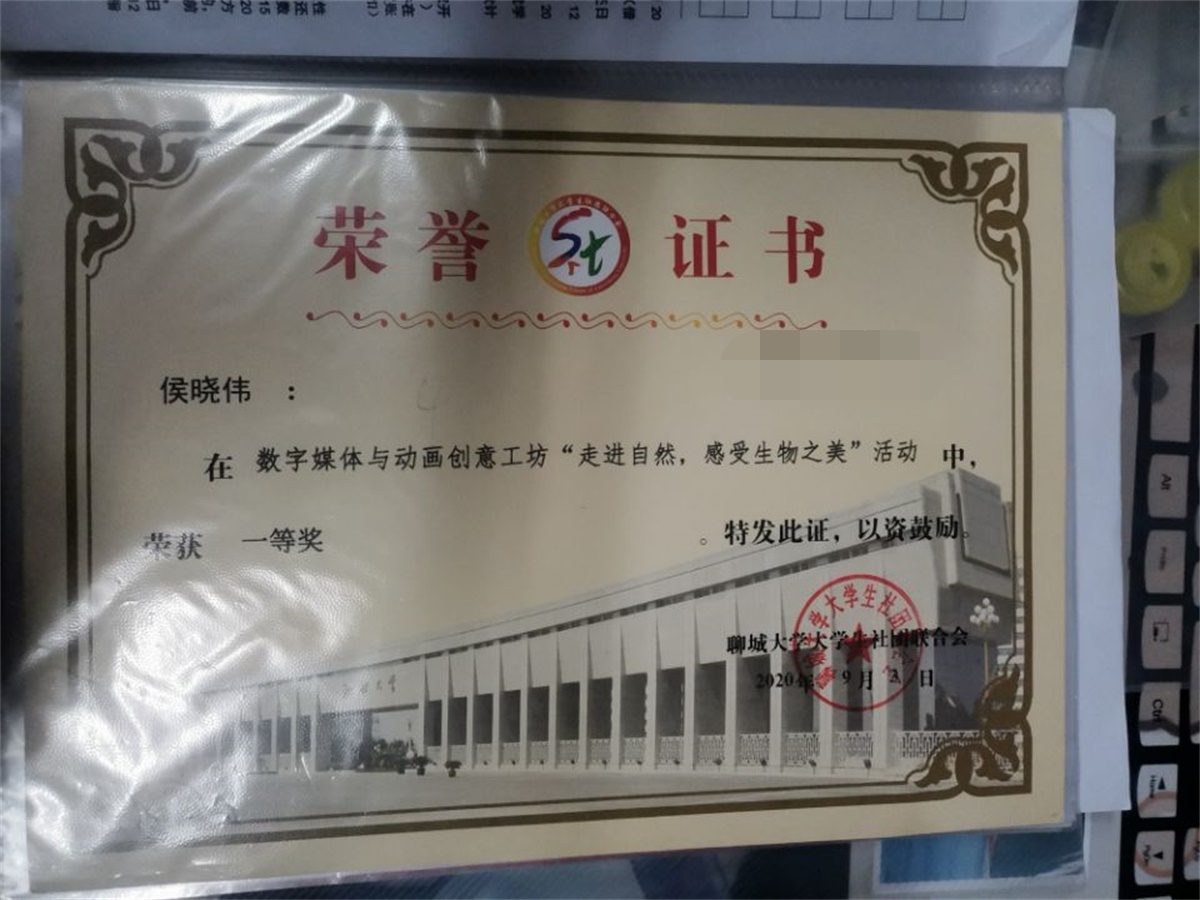李琳琪在数字媒体与动画创意工坊“走进自然 感受生物之美”活动中获得一等奖