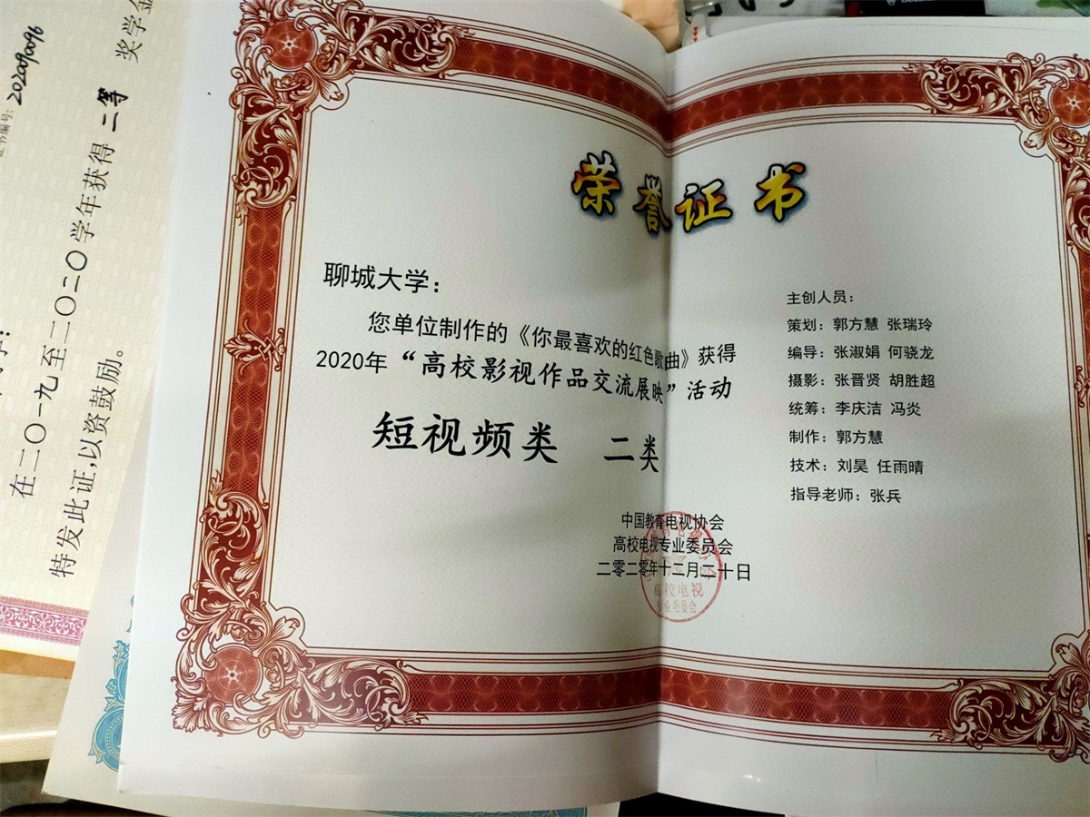 《你最喜欢的红色歌曲》获得2020年高校影视作品交流展映”活动短视频类二类