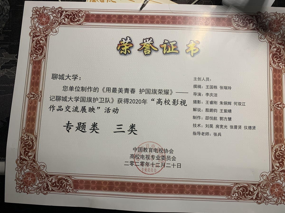 国旗护卫队》获得2020年“高校影视作品交流展映”活动专题类三类