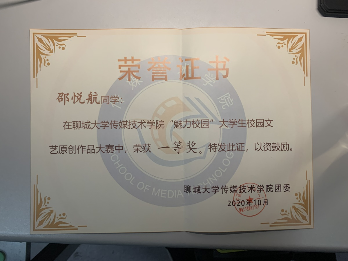 弭希缘,第七届“南边文艺杯”全国文学作品大赛优秀奖