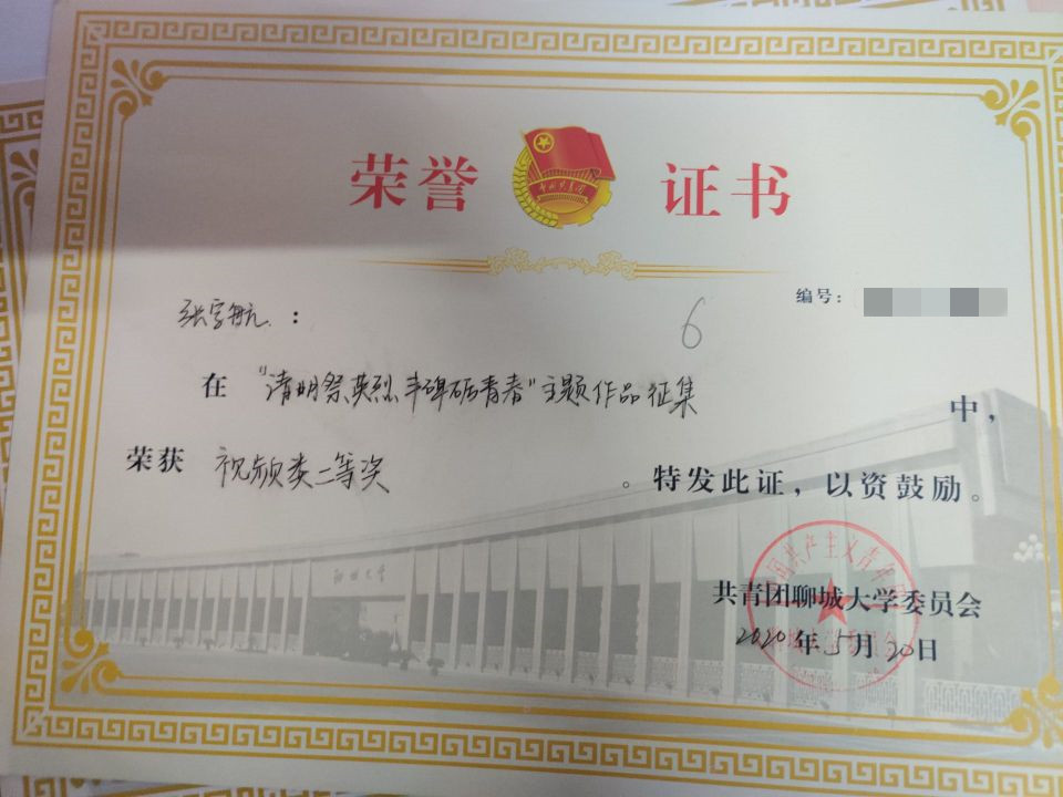 张字航,“清明祭英烈 丰碑砺青春”主题作品征集视频类二等奖