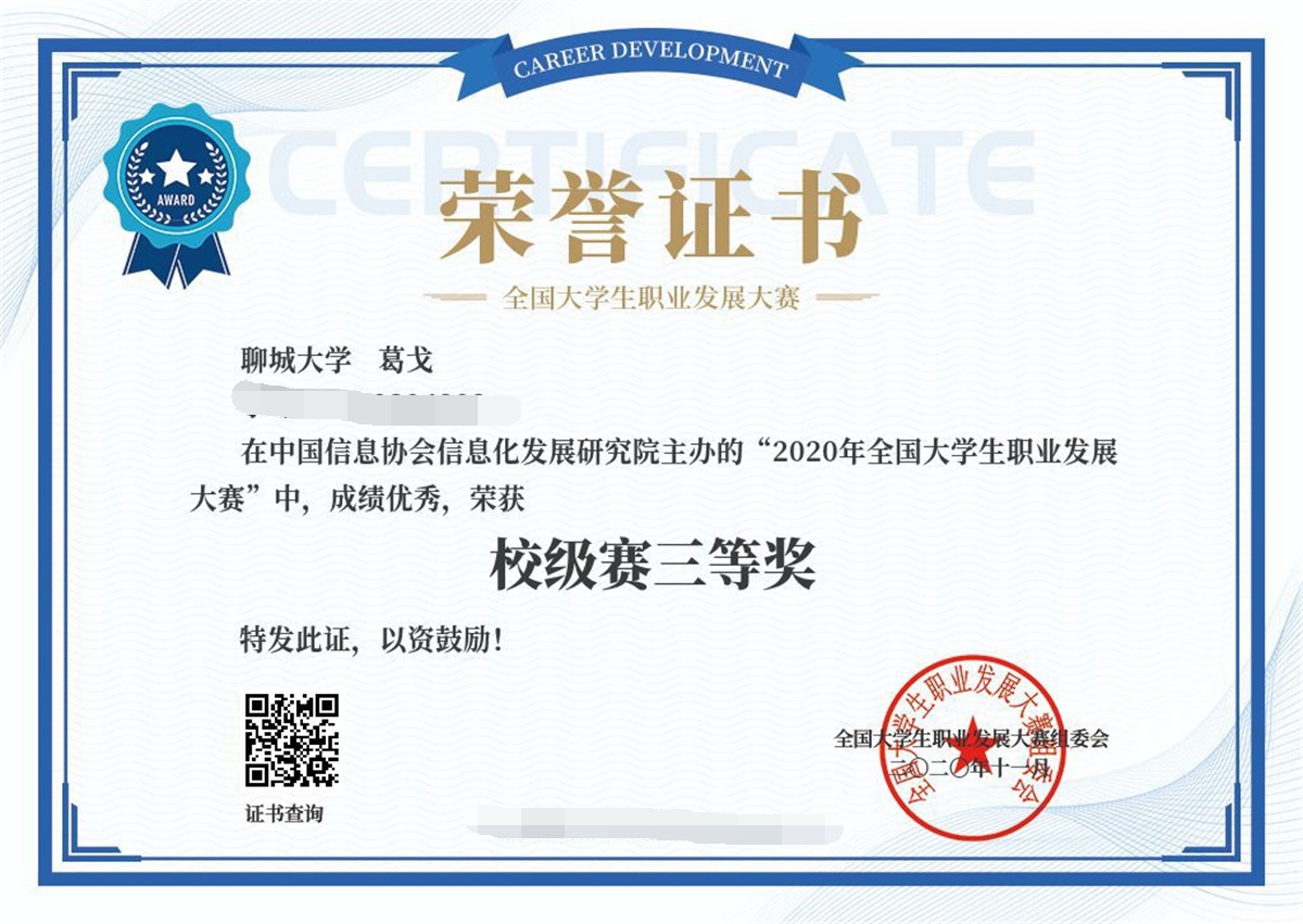 葛戈,”2020年全国大学生职业发展大赛“校级赛三等奖