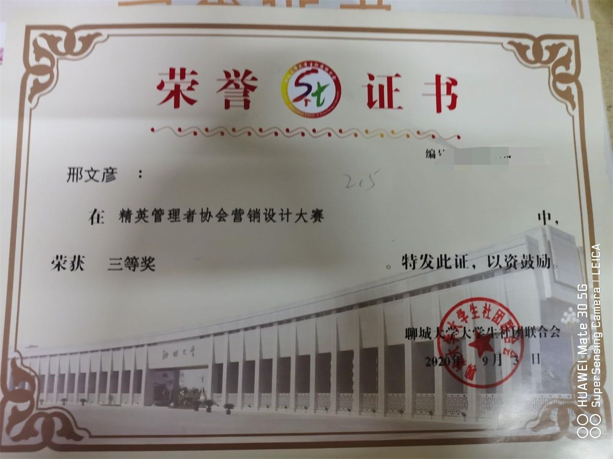 侯晓炜获得精英管理者企业协会logo设计大赛三等奖