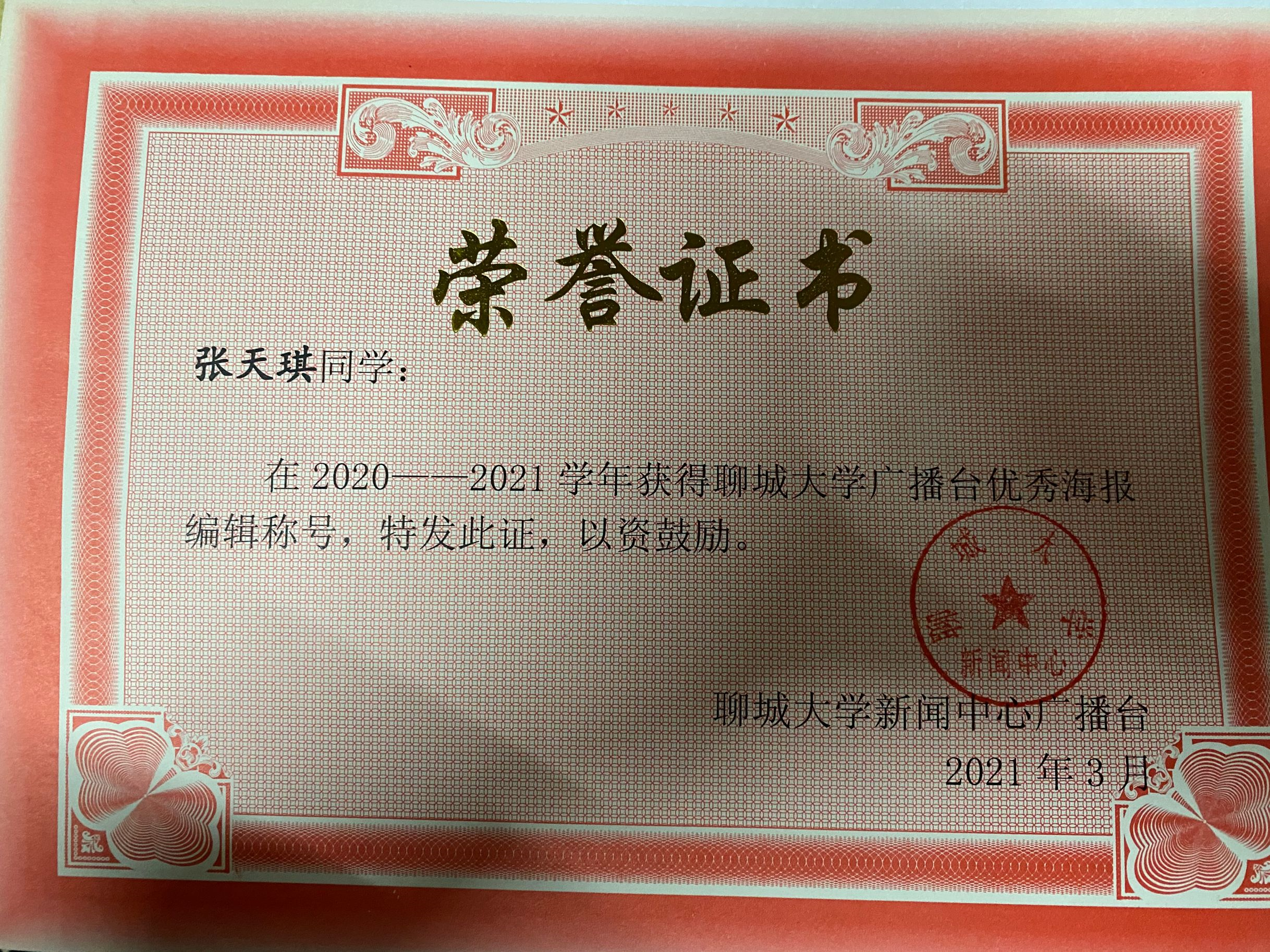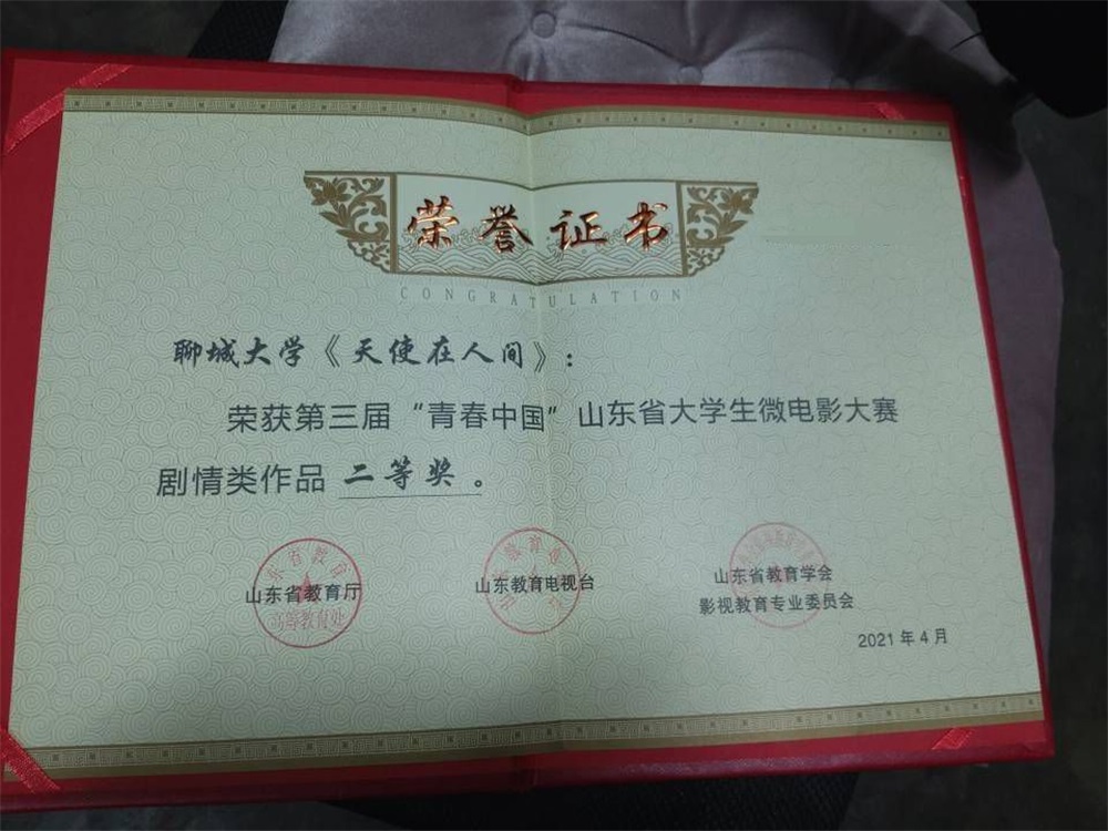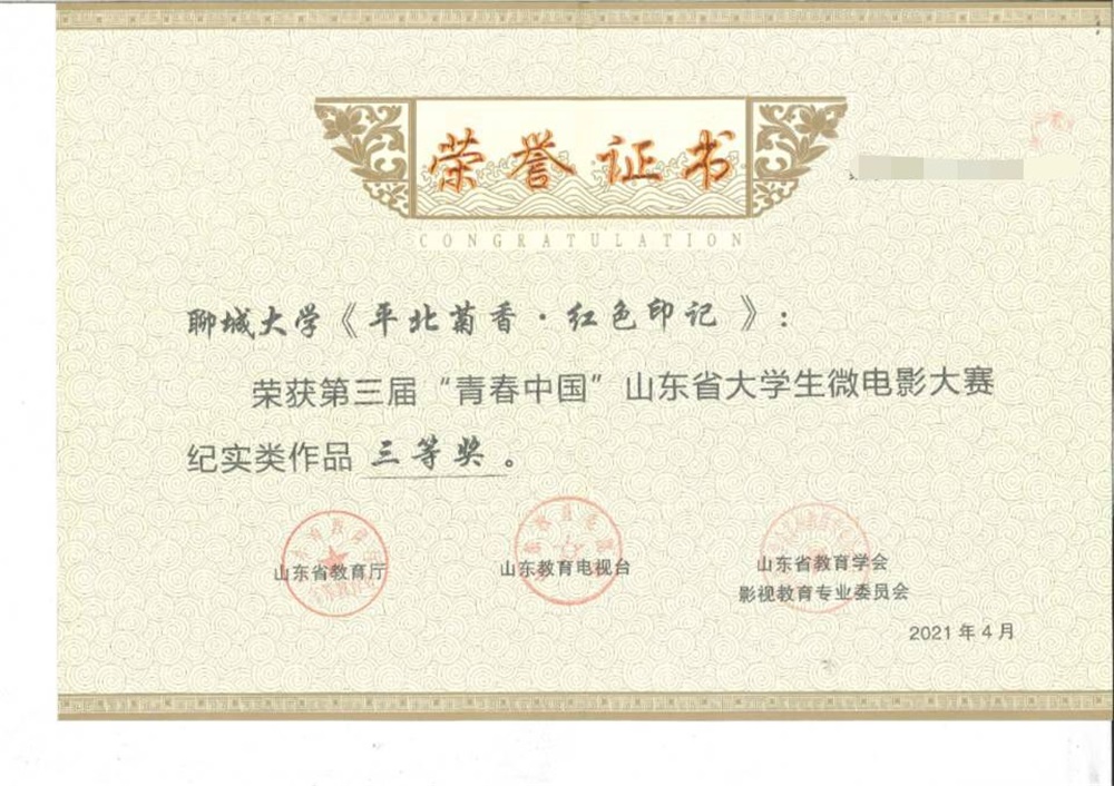 王新蕊,第三届“青春中国”山东省大学生微电影大赛二等奖