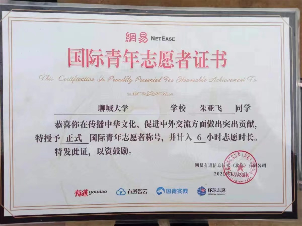 王新蕊,第三届“青春中国”山东省大学生微电影大赛优秀短视频奖