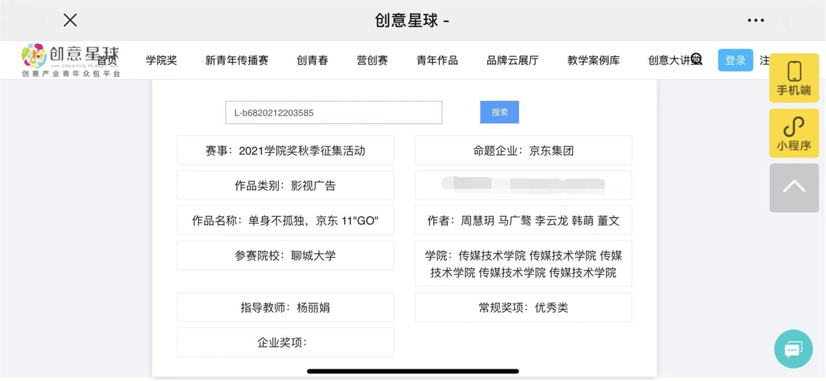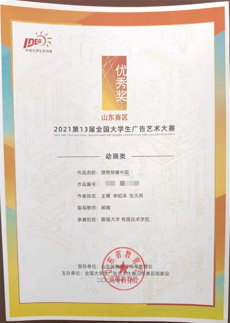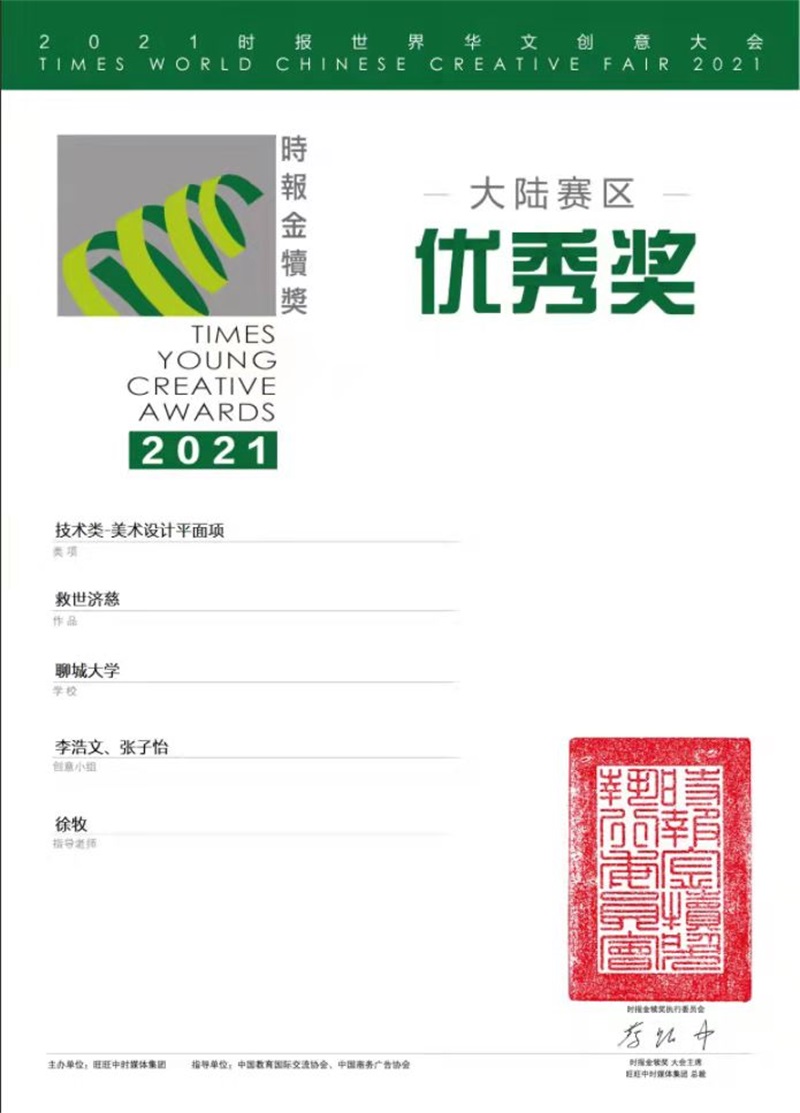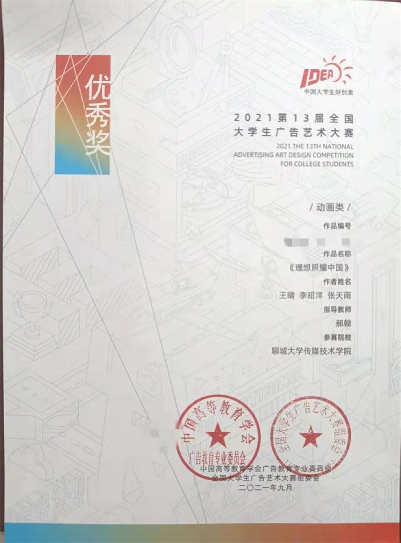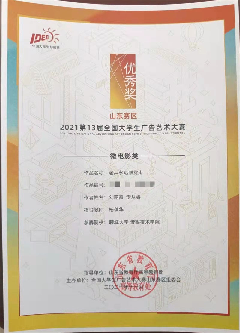 刘丽霞、李从睿,2021第13届大学生广告艺术大赛优秀奖(山东赛区)