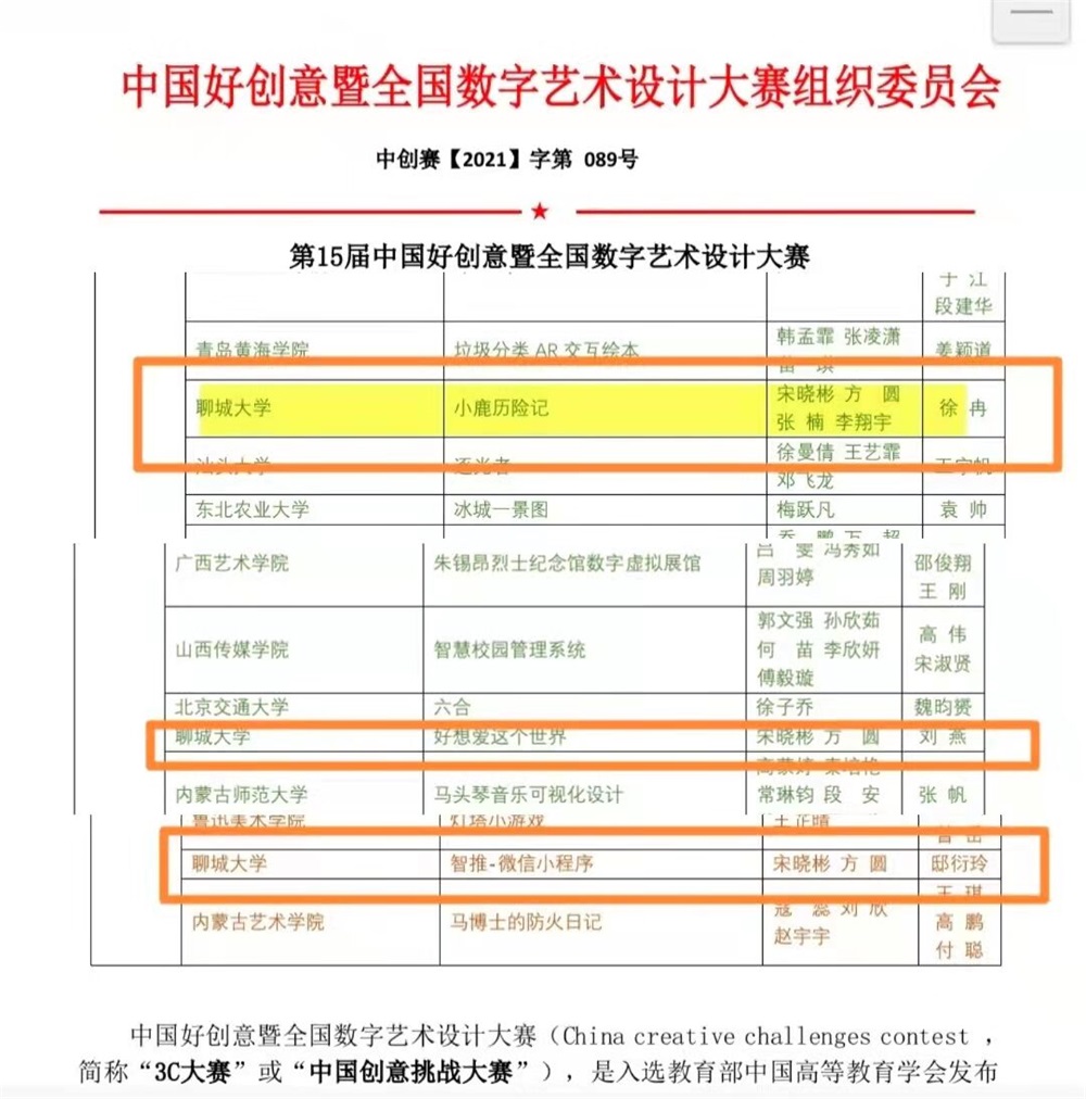 温佳烁、王新灵、吕唱、杨依志、张志伟,第十五届中国好创意暨全国数字艺术设计大赛二等奖