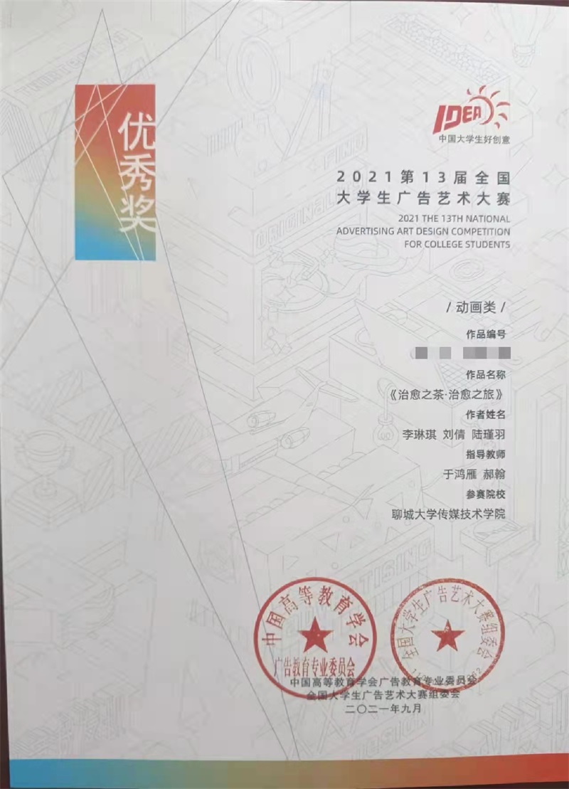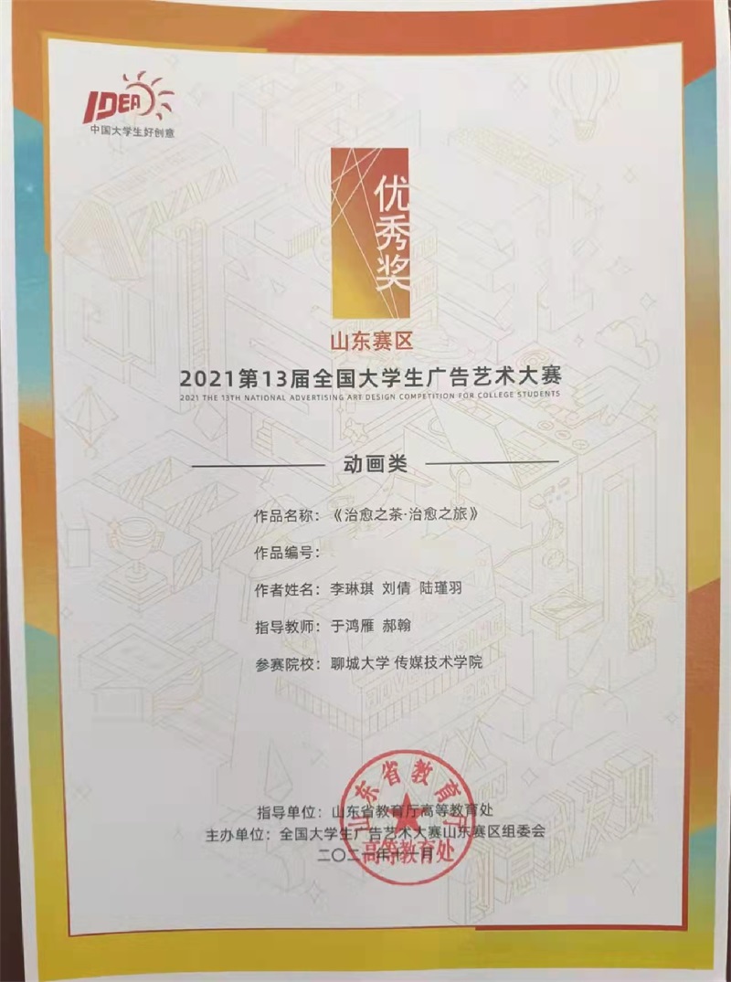 李琳琪、刘倩、陆瑾羽,2021第13届大学生广告艺术大赛优秀奖(山东赛区)