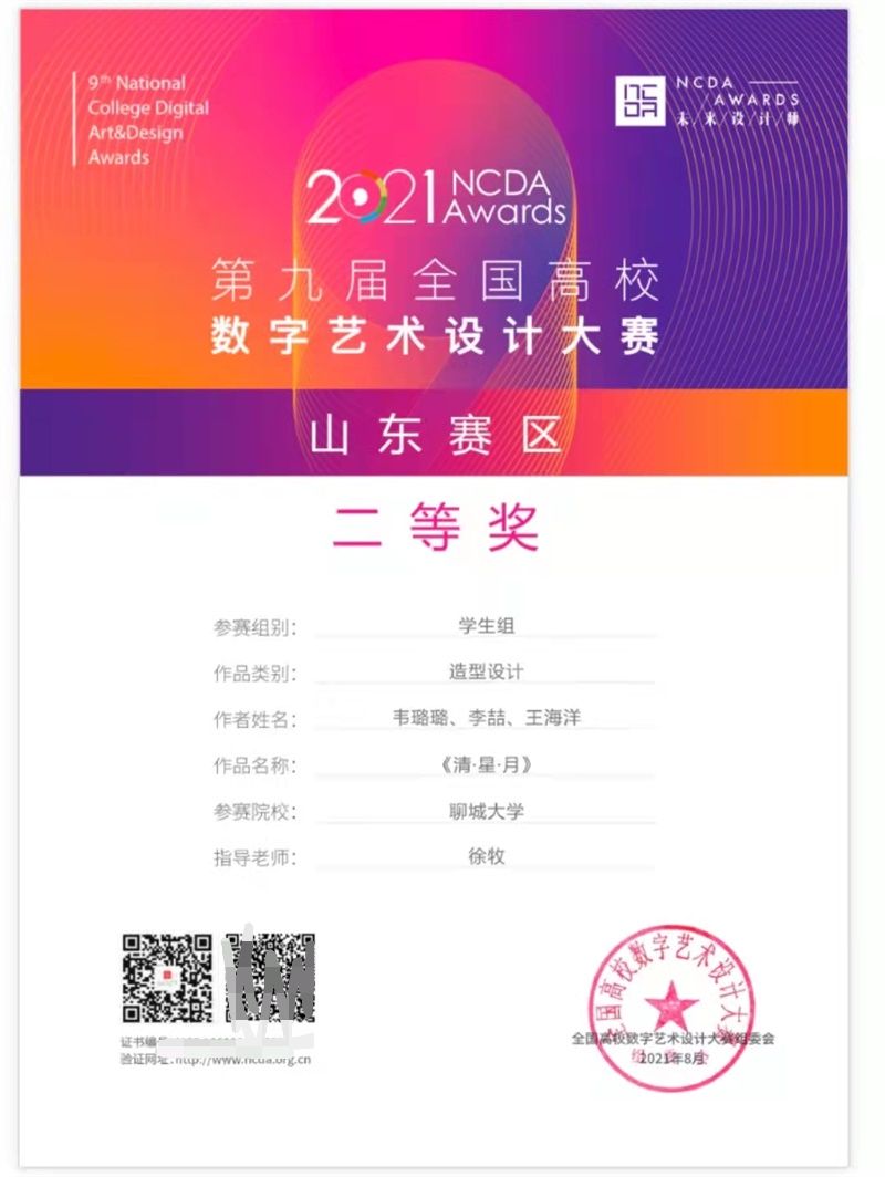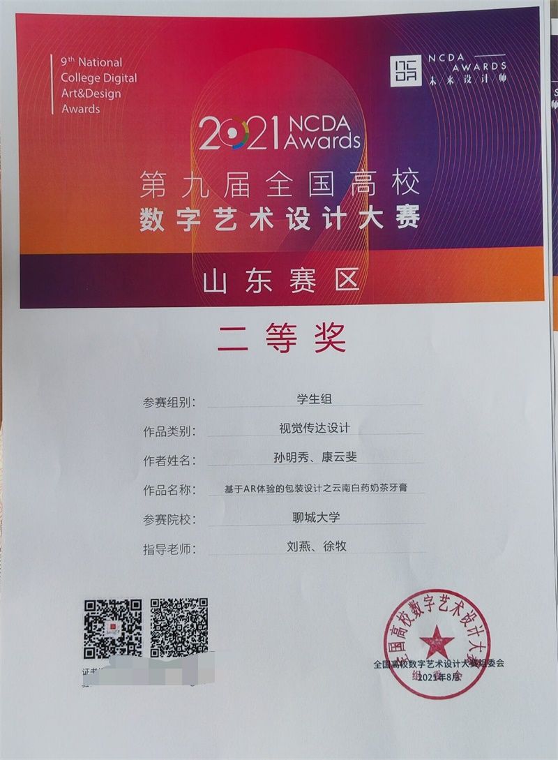 孙明秀。康云斐,第九届全国高校数字艺术设计大赛二等奖