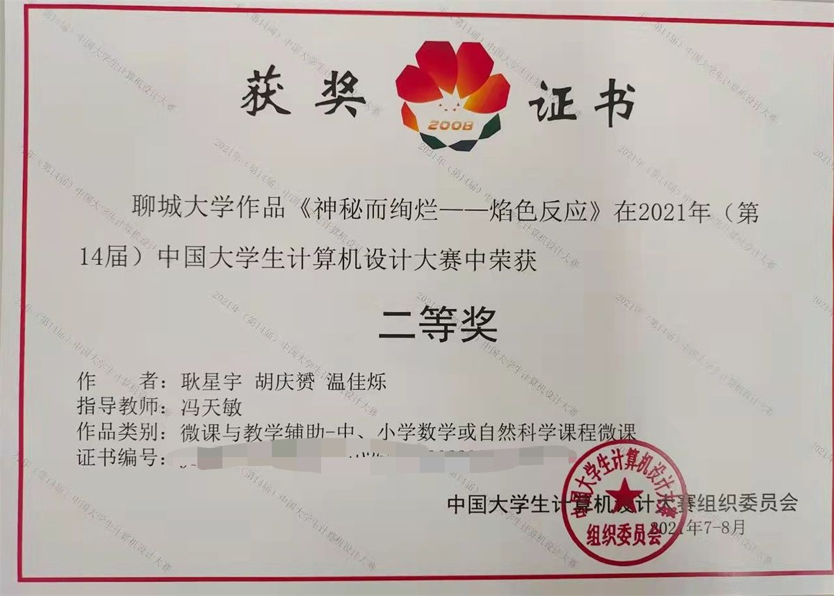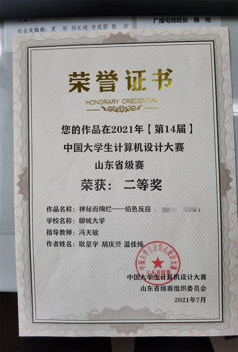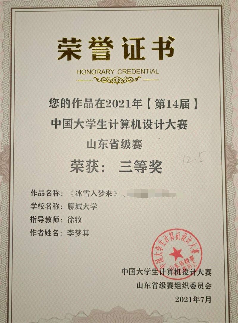 耿星宇、胡庆赟、温佳烁,第14届中国大学生计算机设计大赛二等奖