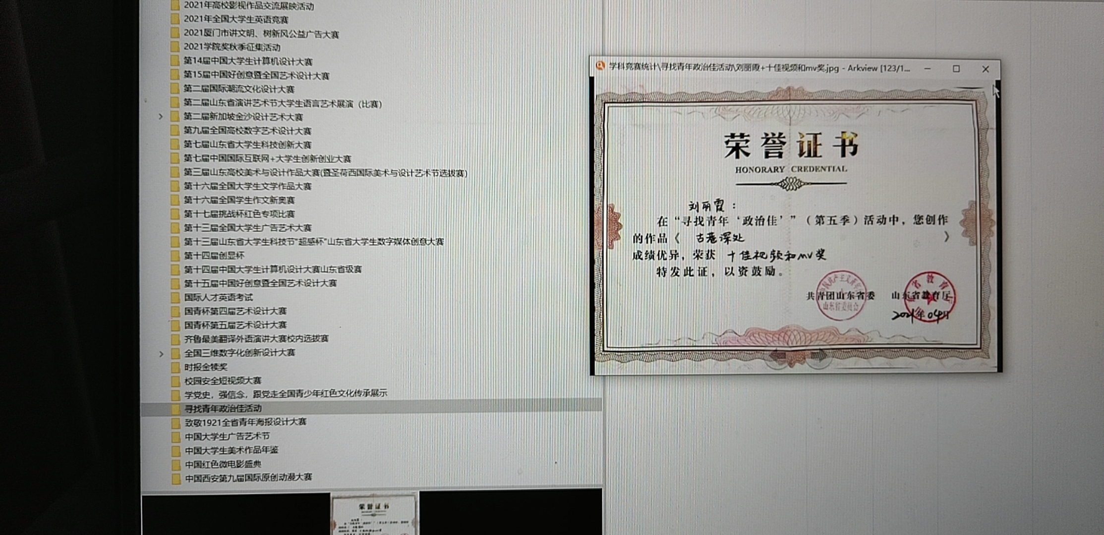 刘丽霞,山东省寻找青年“政治佳”活动十佳视频和MV奖
