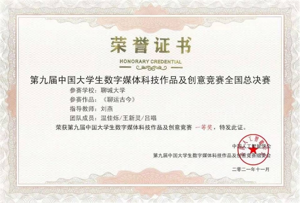 温佳烁、王新灵、吕唱,第九届中国大学生数字媒体科技作品及创意竞赛一等奖