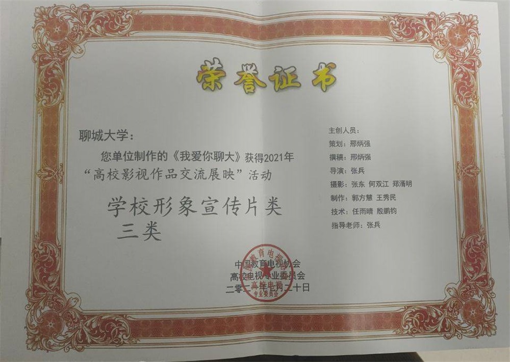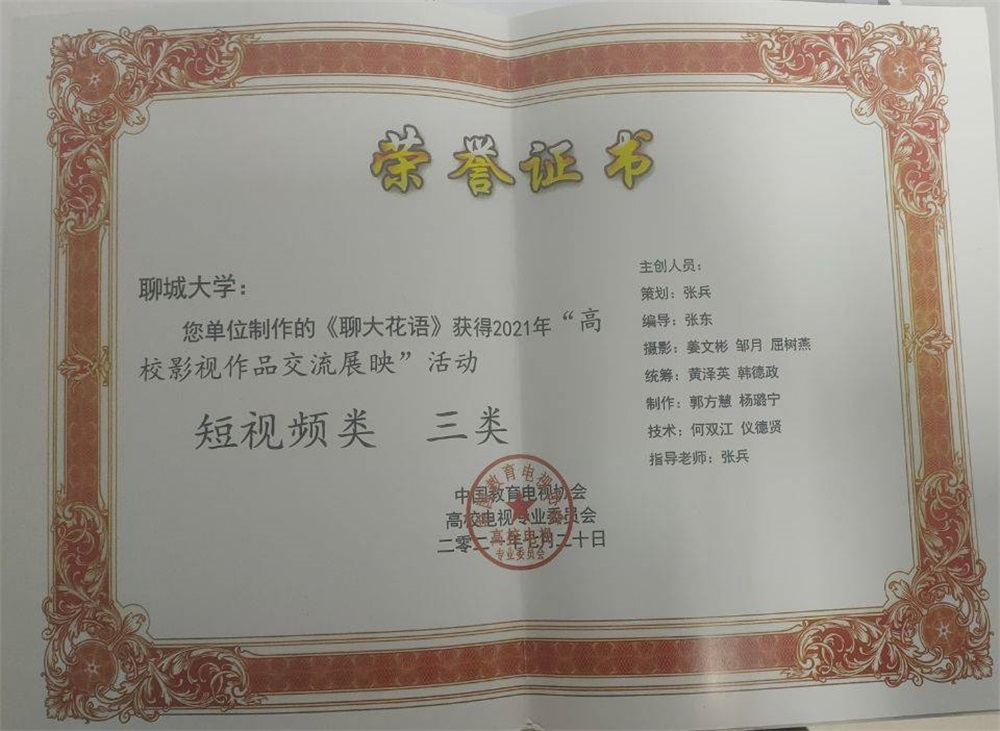 王秀民、焦红杰,2021年“高校影视作品交流展映”活动三等奖