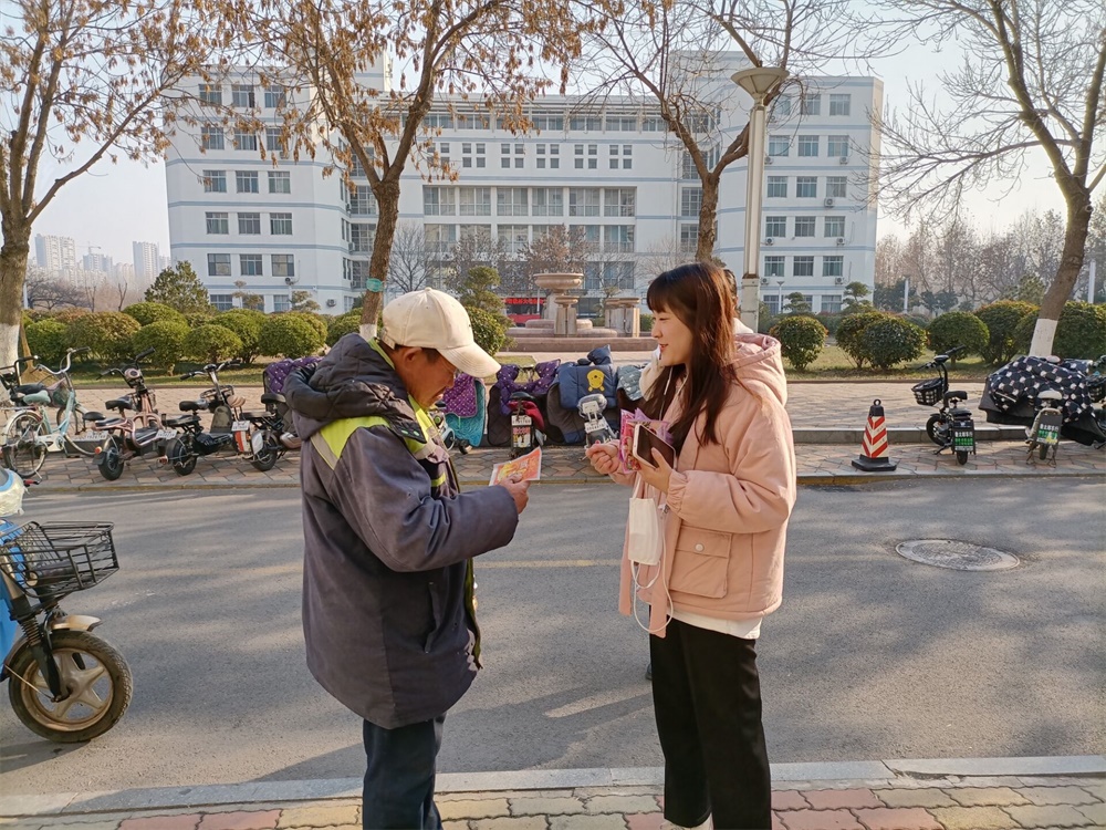 同学们了解到任务后,以小组为单位分散到校园各处,有序进行爱心慰问。在分发暖贴过程中,同学们不仅为年纪较长的环卫工人们详细说明了暖贴的使用方法和注意事项,更向环卫叔叔和阿姨们表达了真切的感谢,深入了解了环卫工人维护校园面貌工作的不易。