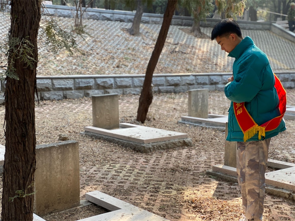 本次活动分为清扫烈士陵园、悼念革命烈士及参观英雄山战役纪念馆三个部分。服务队成员提前联系好相关工作人员,并在工作人员的引导下依次开展各项活动。在革命烈士陵园,服务队成员按照既定分组进行志愿清扫。同学们有序进行清扫工作,部分同学对花篮花圈进行整理,另一部分同学则对路面进行清扫,不留任何卫生死角。志愿清扫结束后,在工作人员的引导下,同学们有序参观了祭词碑、签名志、英雄亭等红色遗址,并向来显吉、高通古、汪洋等革命烈士鞠躬默哀,表示自己对革命英烈的崇高敬意。