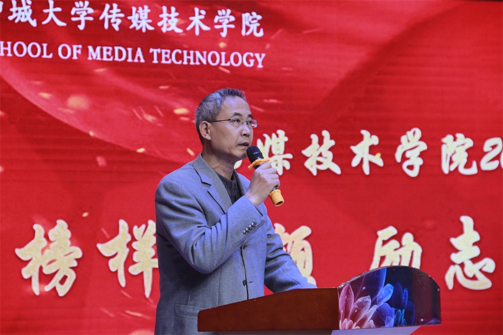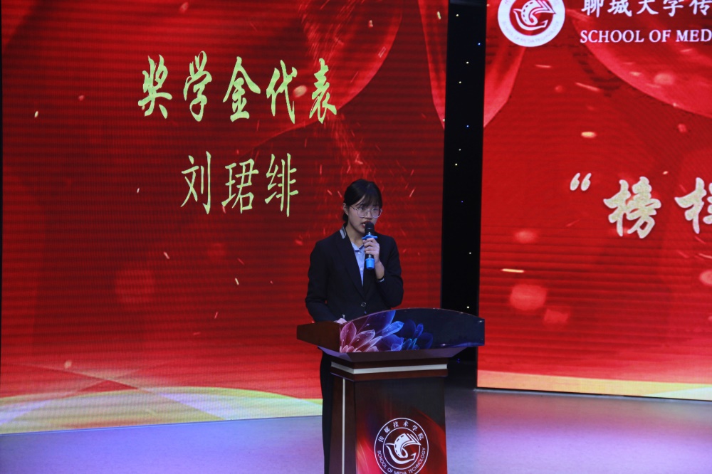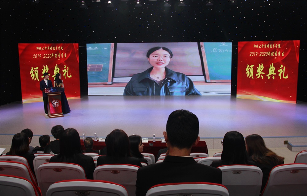 颁奖典礼在主持人热情洋溢的开场词中拉开帷幕,李焕芹院长上台为典礼致辞,祝贺获奖学生和先进集体,鼓励学院广大学子向他们学习,并对同学们提出四点建议:包括合理规划学习生涯、寻找正确学习方法、磨练自我学习意志、树立终生学习精神。他希望同学们以优秀同学为榜样,将“敬业、博学、求实、创新”的校训精神牢记心中,刻苦学习,做一个不愧于时代、不愧于人民、不愧于家国的传媒人。李焕芹院长的致辞得到同学们的热烈反响,在一片掌声之中,主持人宣读获奖人员名单。