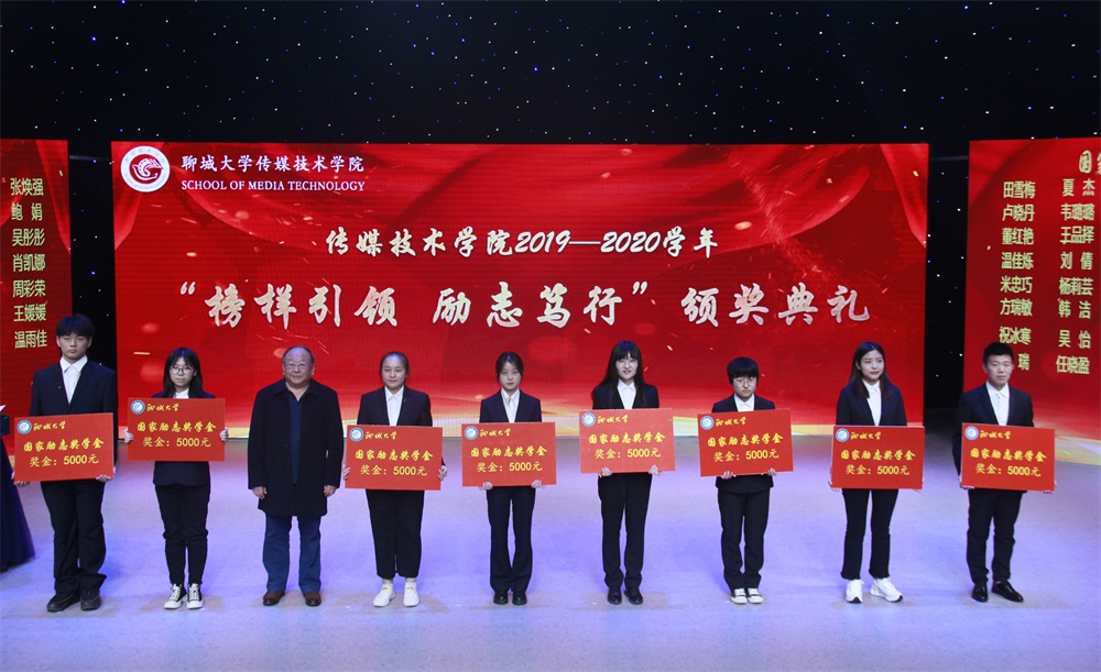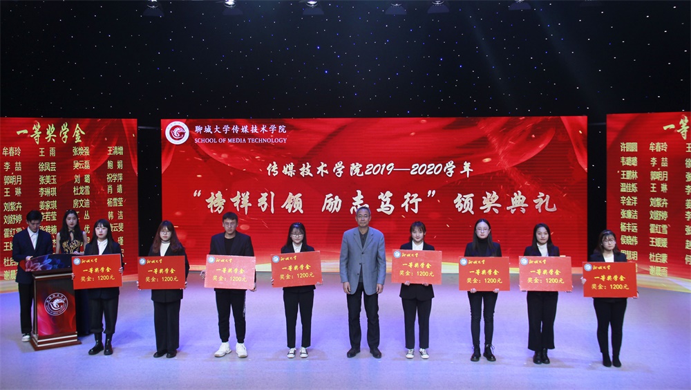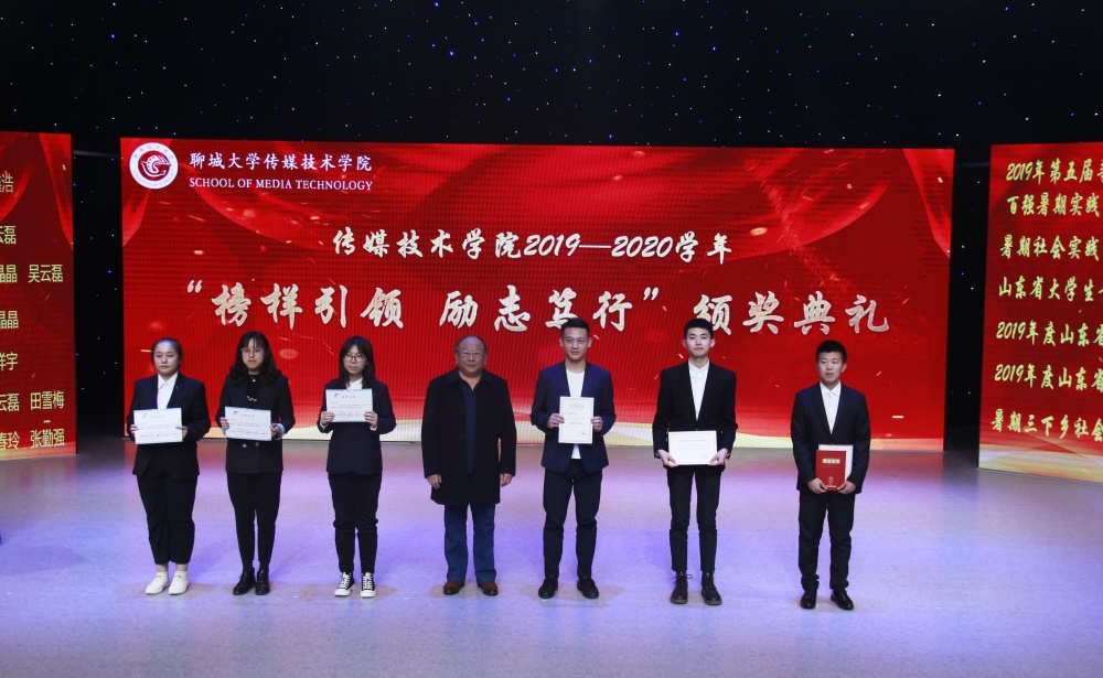 于综合实验楼11楼演播厅举办了2019-2020学年“榜样引领,励志笃行”优秀学生颁奖典礼。